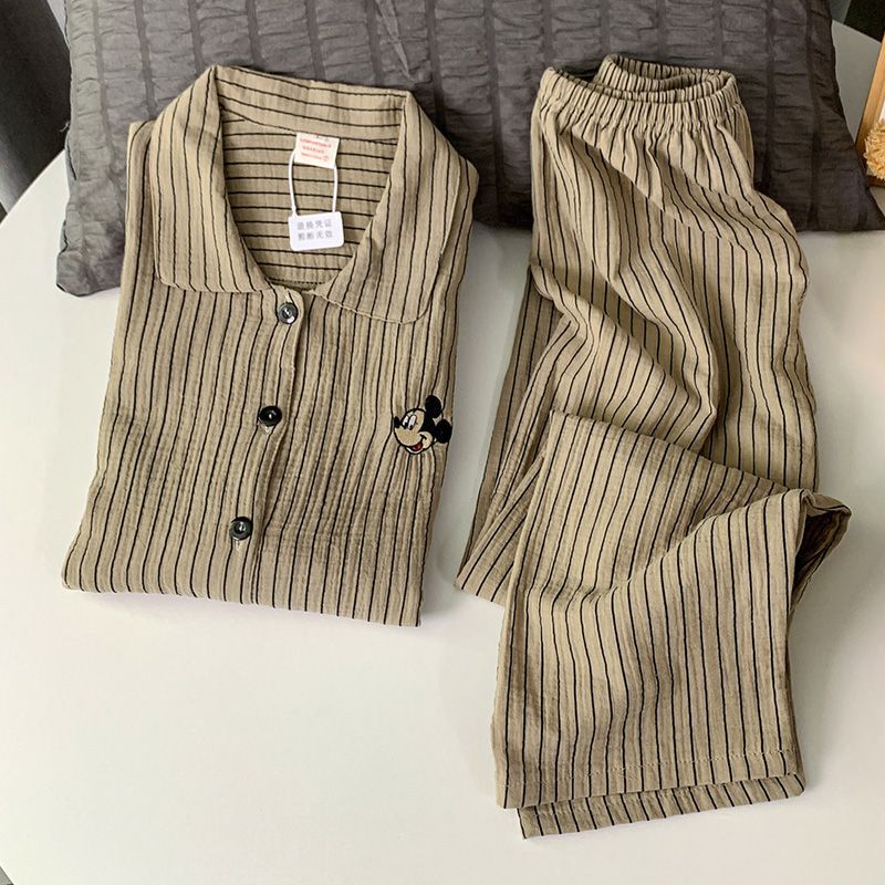 봄과 가을 새 잠옷 커플 코튼 여성용 줄무늬 긴 소매 두 조각 세트 남성 인터넷 기념 핫 스타일 홈 의류 세트스토어 가기