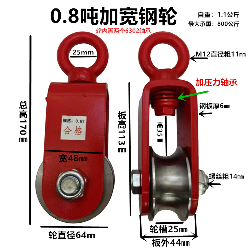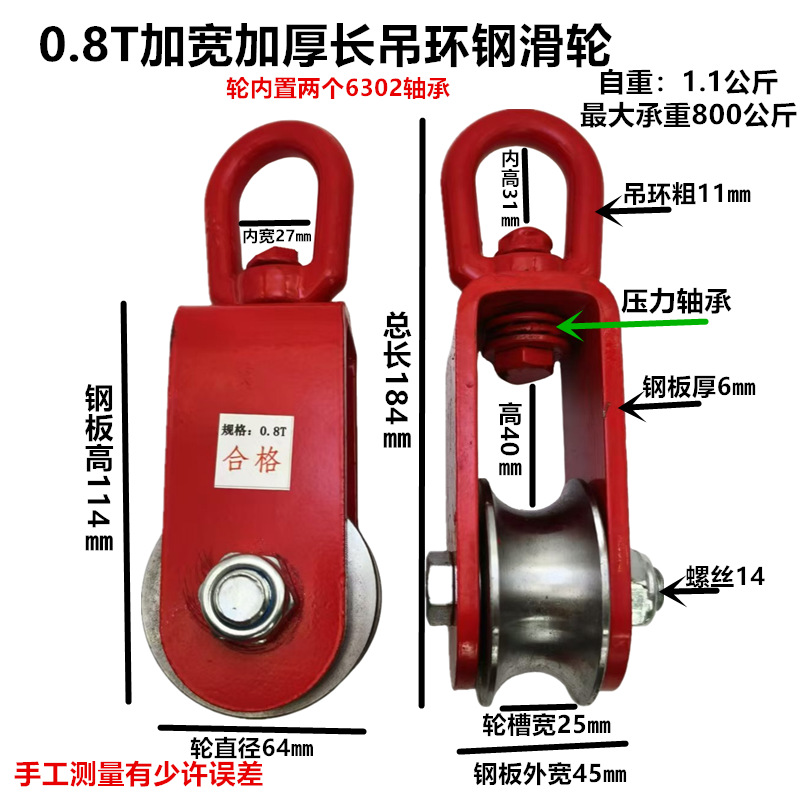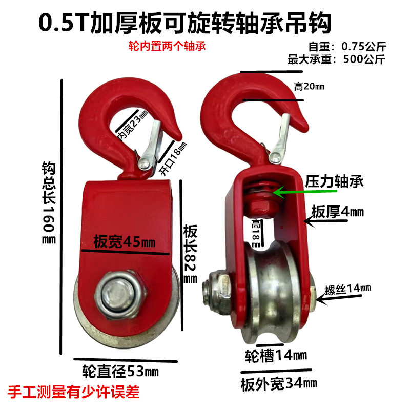 • 빨간색 넓어진 강철 바퀴 0.5톤 후크(회전 가능) 두꺼운 강철판 1개