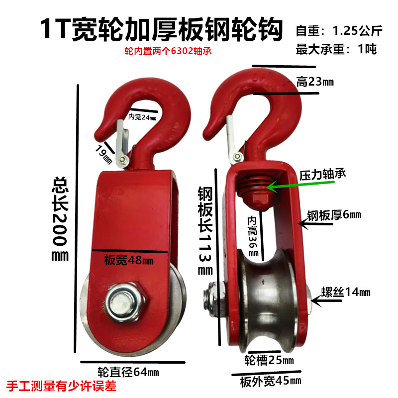 • 빨간색 넓어진 강철 바퀴 1톤 후크(회전 가능) 두꺼운 강철판 1개