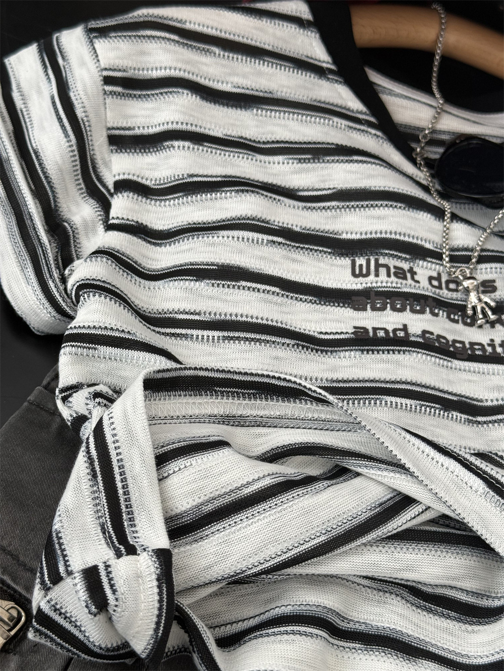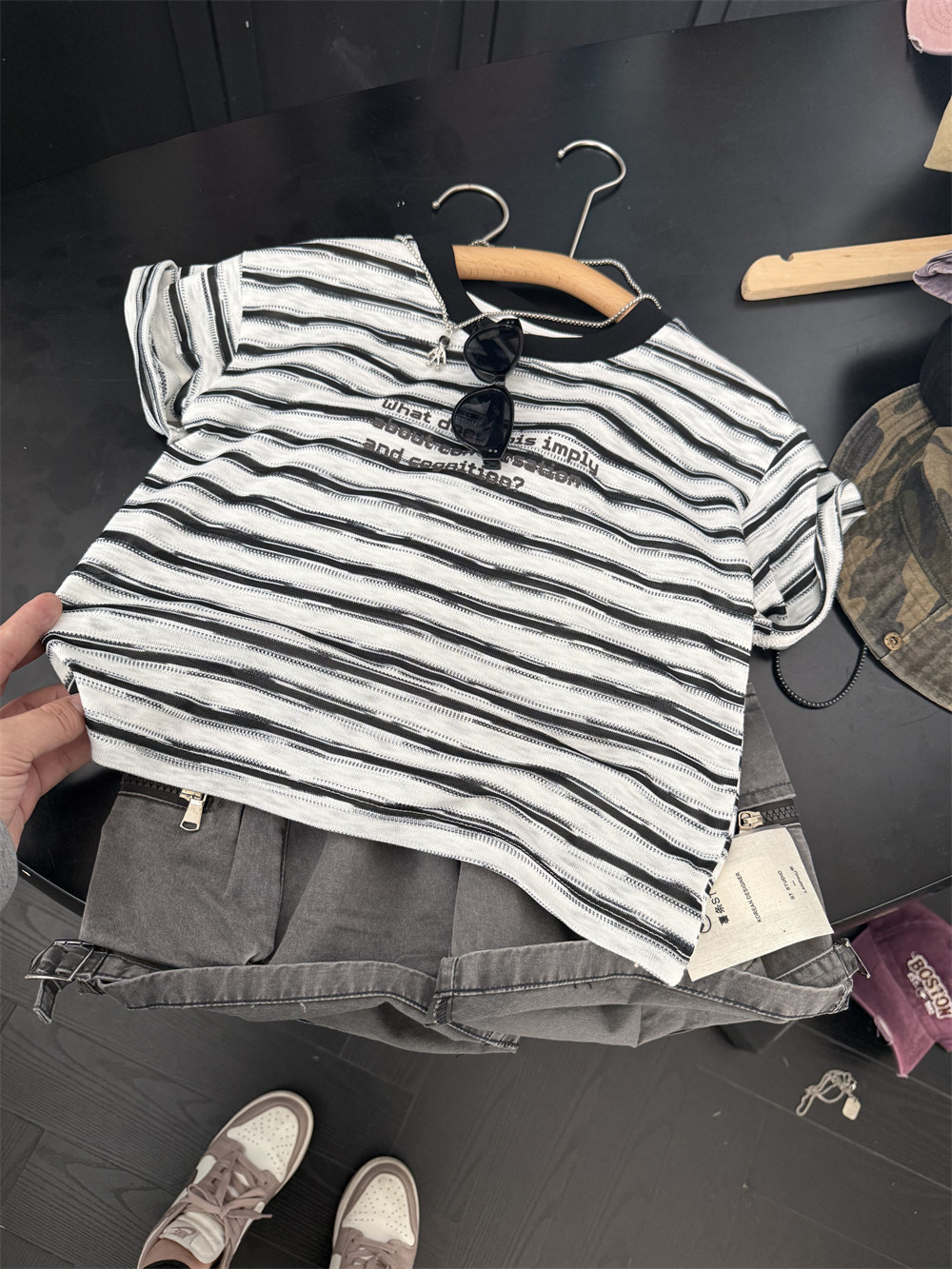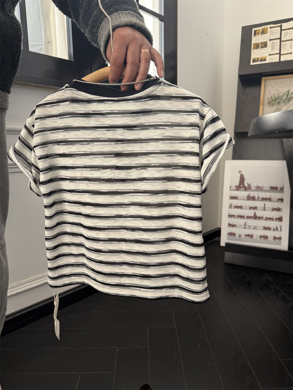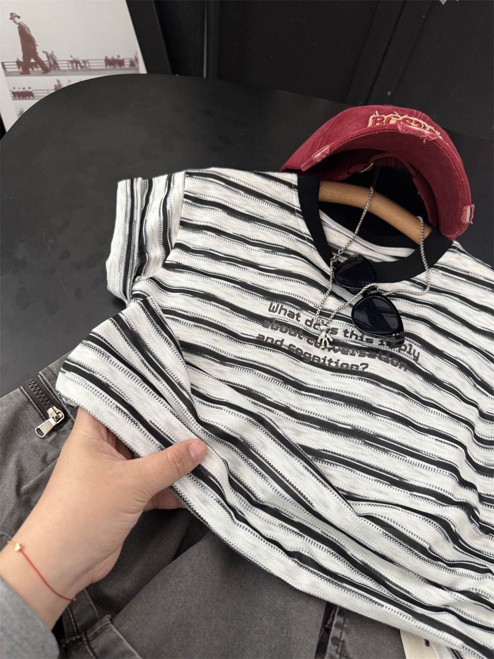 아동복 2025 미국식 어린이 흑백 줄무늬 반팔 티셔츠 부드러운 대나무 느슨한 반팔 편지스토어 가기