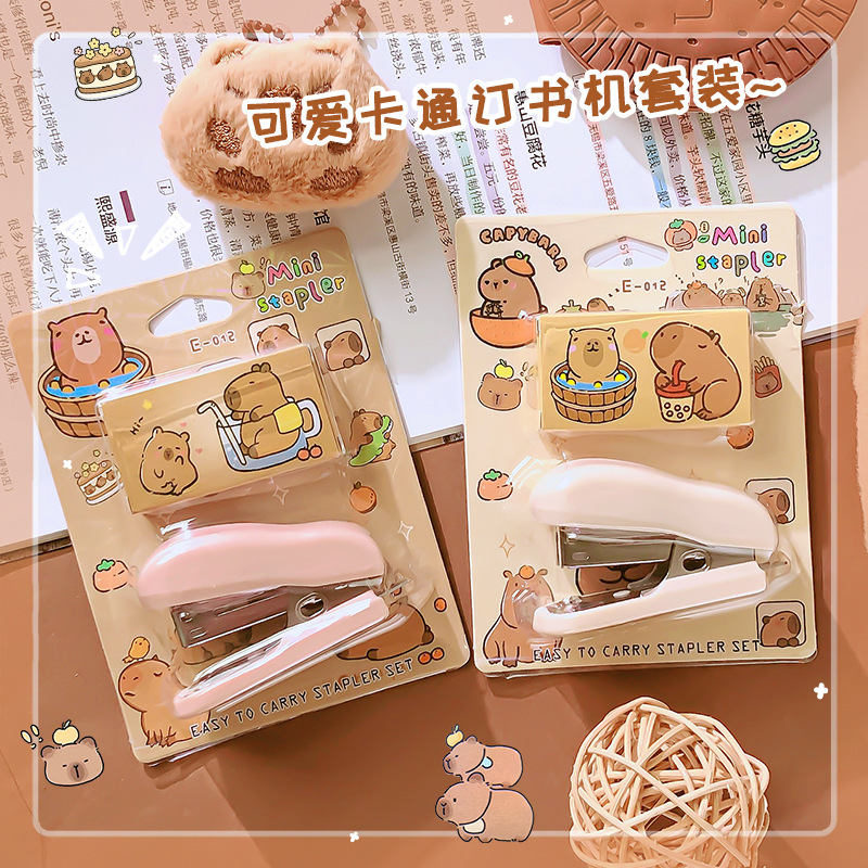 카피 발라 귀여운 만화 스테이플러 세트 학생 미니 스테이플러 사무실 바인딩 기계 작고 휴대용스토어 가기