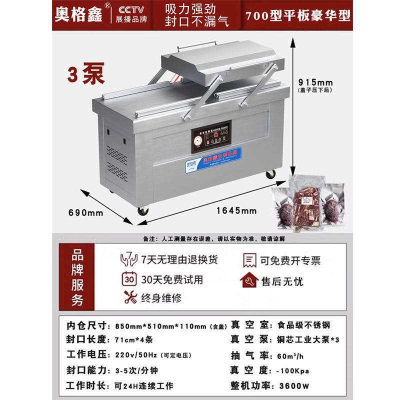 완전 자동 이중 챔버 평면 진공 포장 기계 대형 상업용 식품 해산물 진공 밀봉 기계 습식 및 건조
