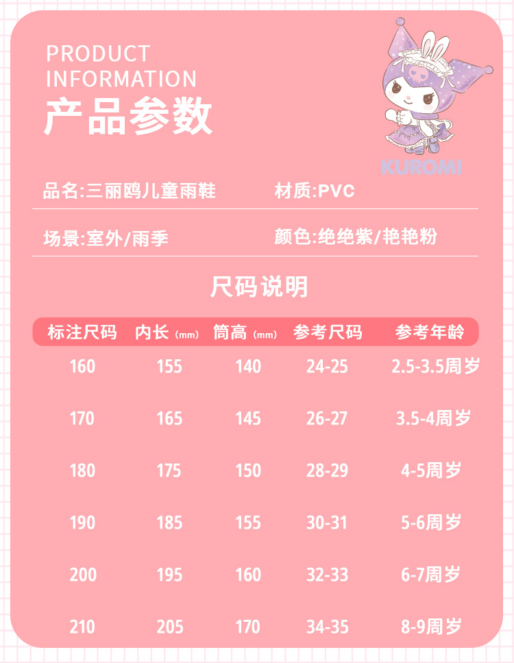 산리오 어린이 비 신발 미끄럼 방지 방수 Sequin Girls 워터 부츠 멜로디 야외 만화 아기 젤리 신발스토어 가기