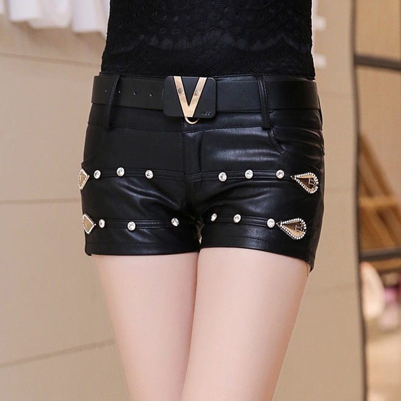 2025 가을과 겨울 새로운 여성 패션 다재다능한 하이 허리 가죽 바지 골든 체인 반바지 캐주얼 스트레이트 바지스토어 가기