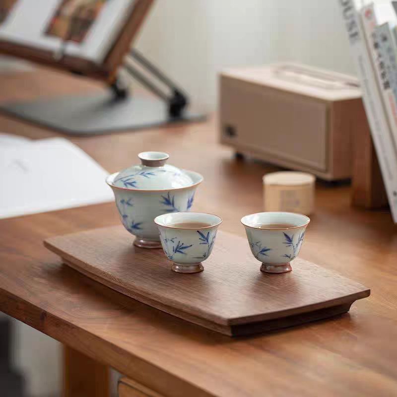 새로운 스타일 간단한 창조적 인 검은 호두 아크 가장자리 차 트레이 엔드 트레이 가정용 커피 플레이트 워터 컵 플레이스 드라이 적신 작은 차 트레이