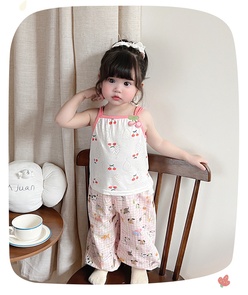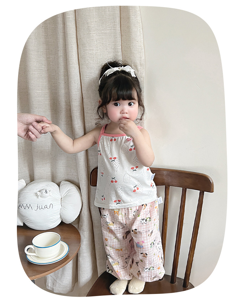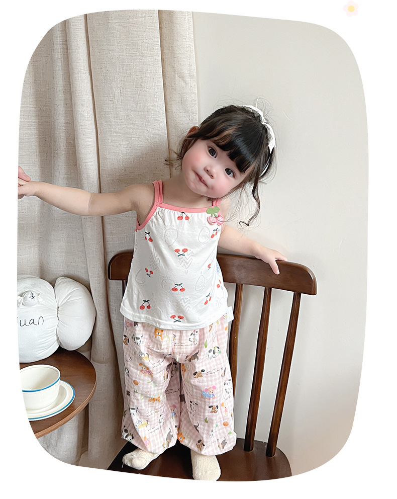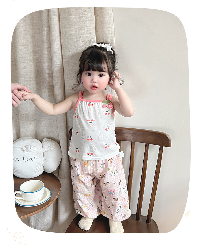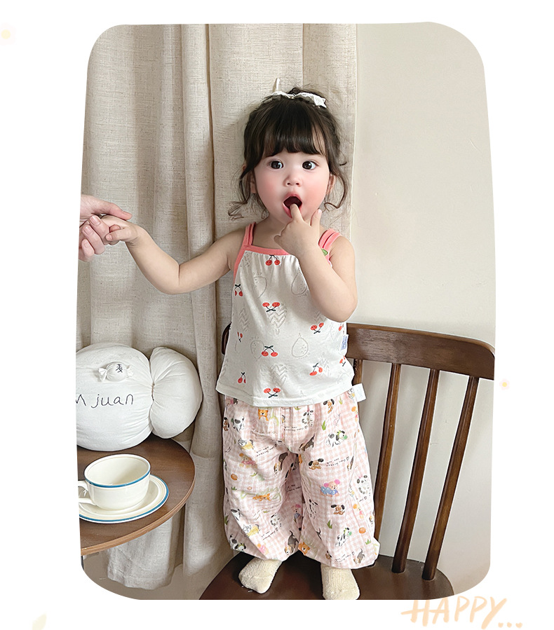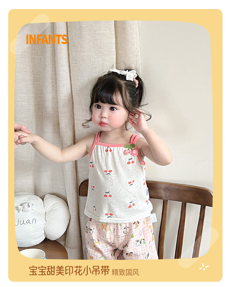 2025 아기 한국 스타일 작은 슬링 여성 아기 여름 새로운 도착 슬링 셔츠 3666 얇은 귀여운 인쇄 탑스토어 가기
