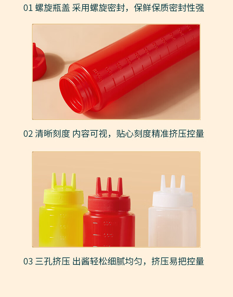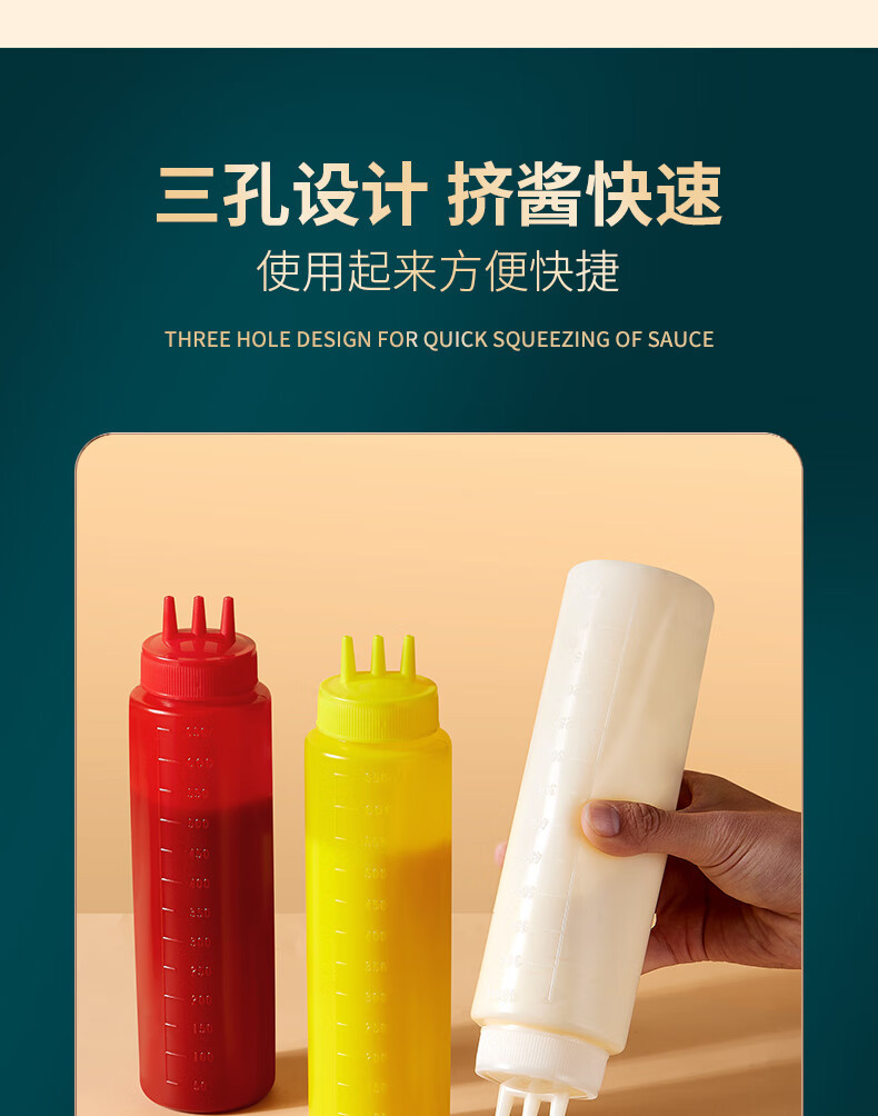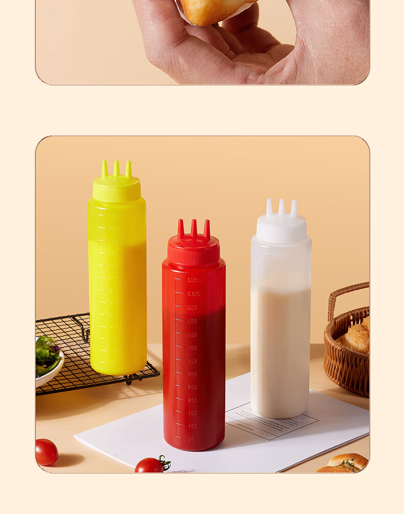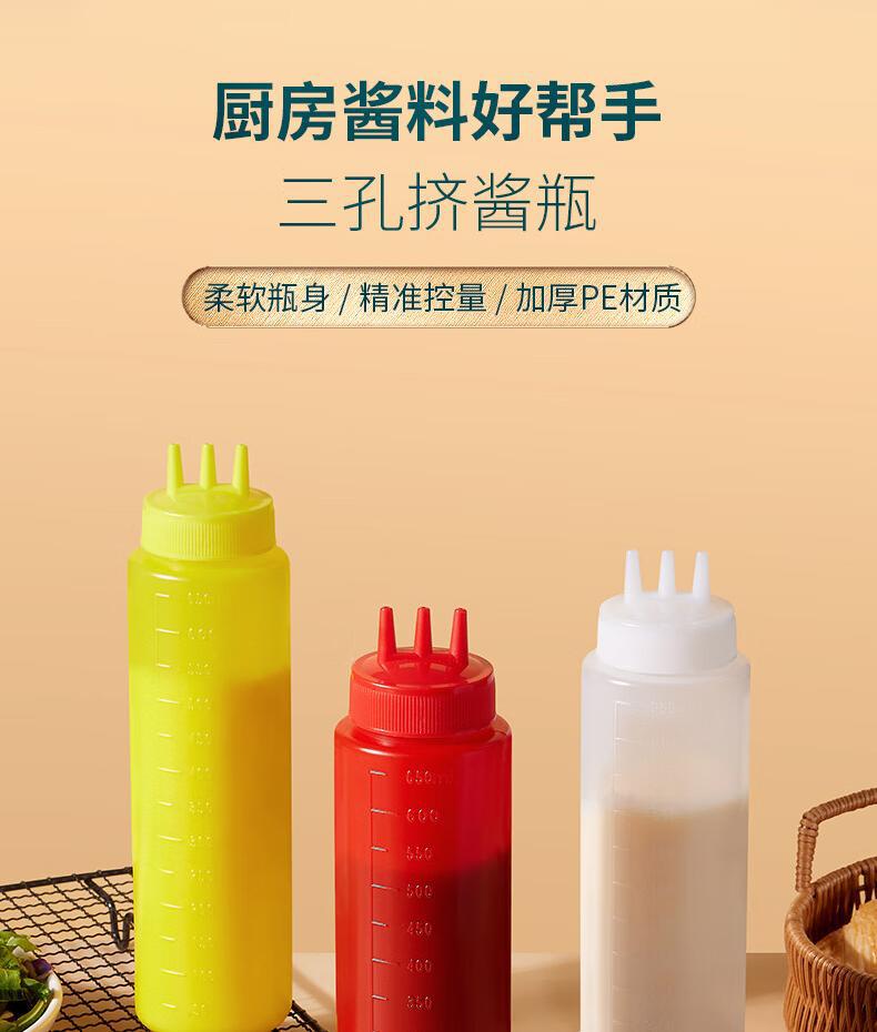 3 홀 스퀴즈 소스 병 케첩 샐러드 조미료 아티팩트 스퀴즈 포트 상업용 플라스틱 3 입 크림 스퀴즈 소스 병