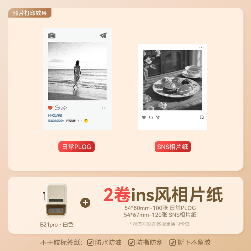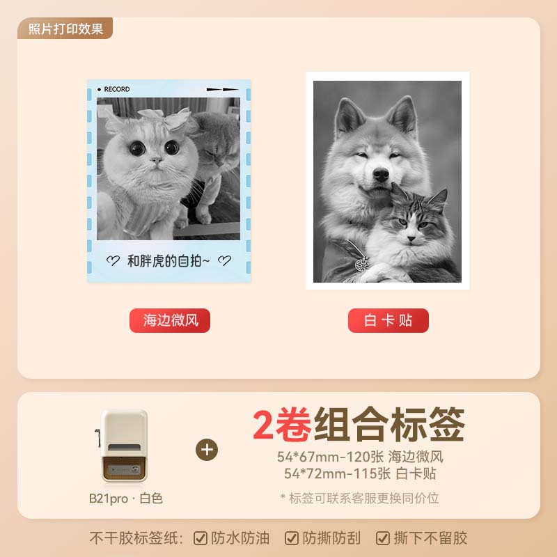 • b 사진 스티커⭐B21Pro 흰색 + 롤 라벨 2개
