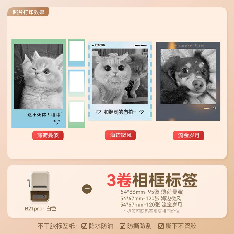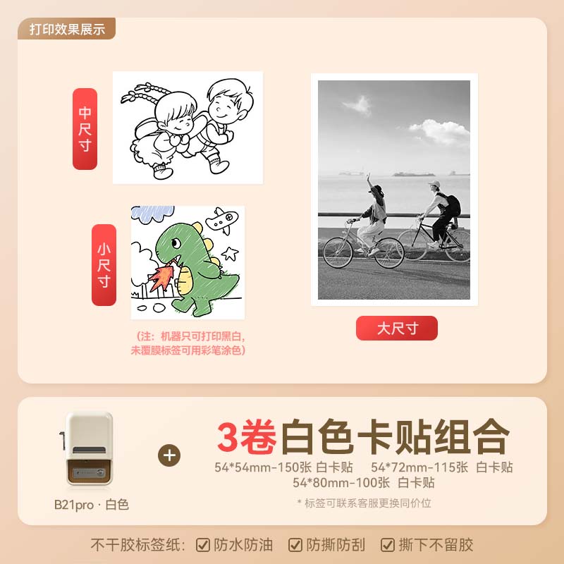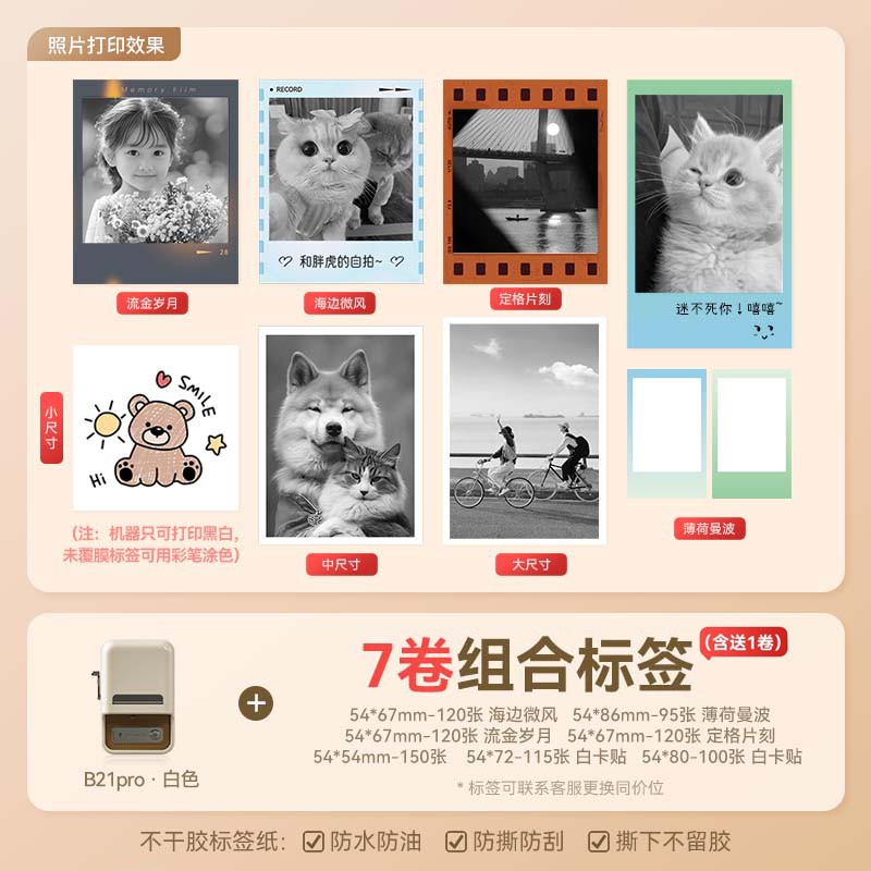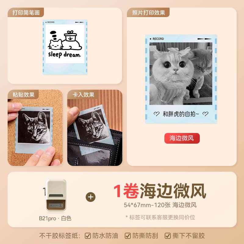 • b 사진 스티커⭐B21Pro 흰색 + 롤 라벨 3개