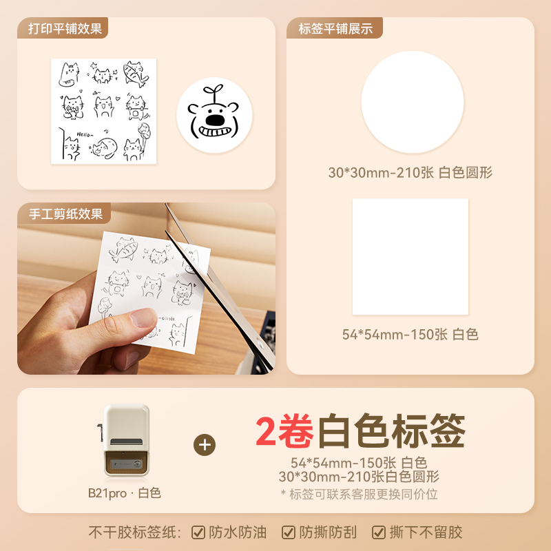 • b 핸드북❤B21Pro 흰색 + 원형 롤 1개 + 흰색 카드 스티커 롤 1개