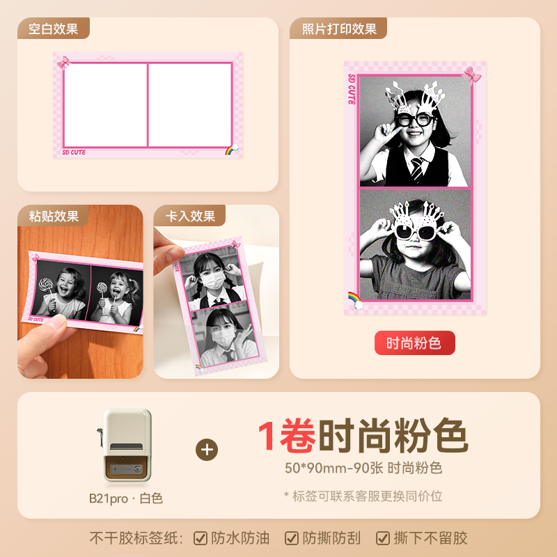 • b 사진 스티커⭐B21Pro 화이트 + 1롤 패션 핑크