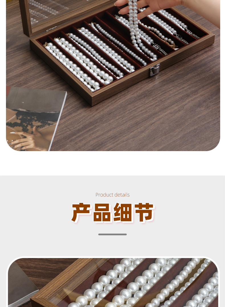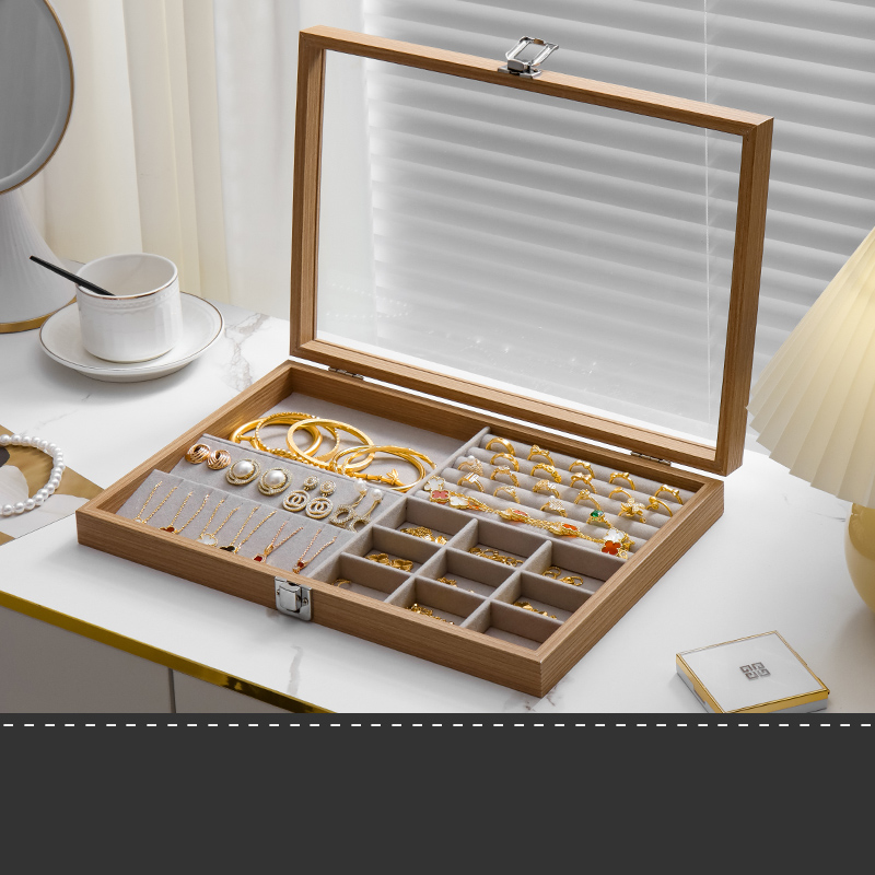 진주 목걸이 보관 상자 뚜껑 유리 방진 긴 팔찌 구슬 보석 두꺼운 목걸이 보석 상자 팔레트