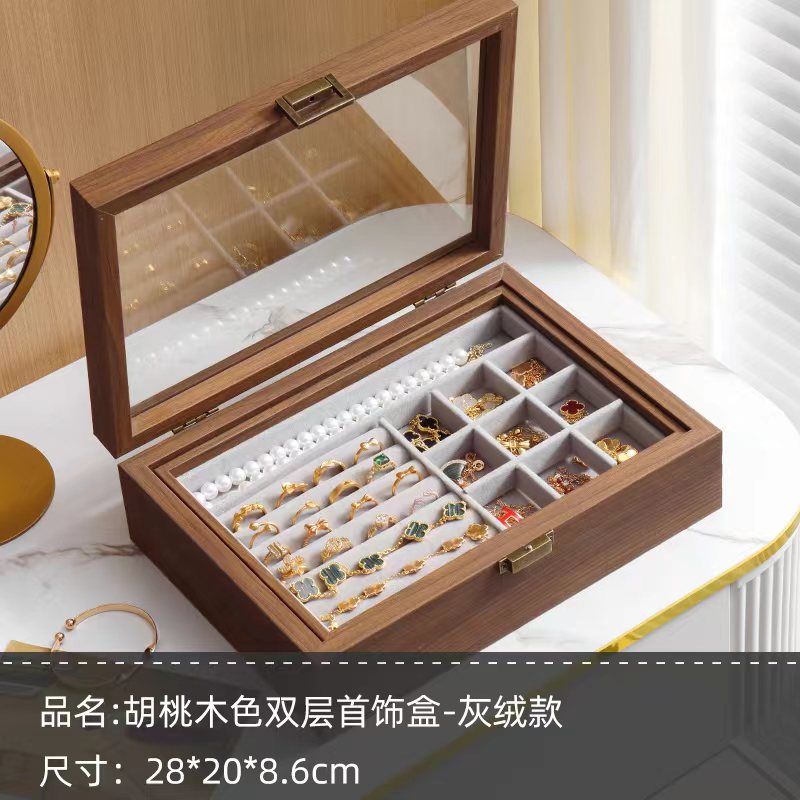 • 더블 레이어 호두 곡물 다기능 보석 상자, 내부 회색
