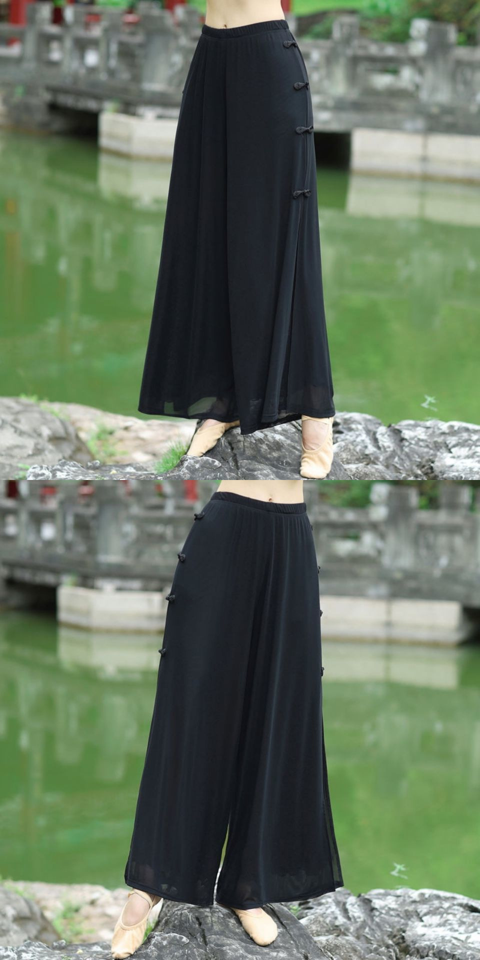 봄과 여름 더블 레이어 클래식 댄스 세트 여성 우아한 훈련 세트 라임 휴가 옷 현대 민속 댄스 메쉬 넓은 다리 바지스토어 가기