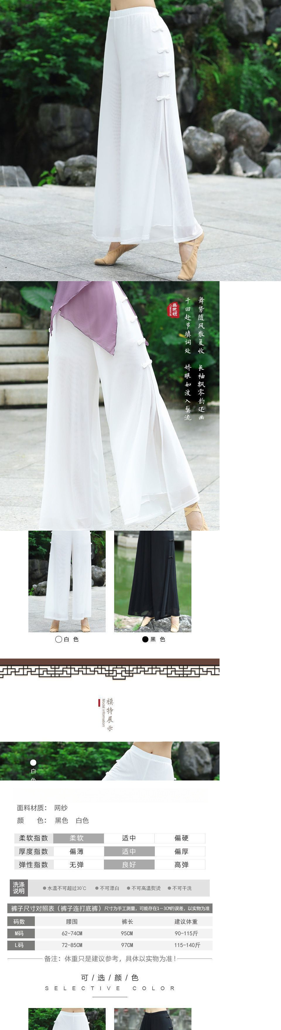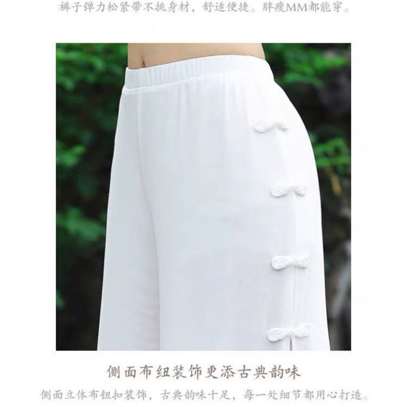 • 업그레이드된 시폰 화이트 팬츠, 단추 없음