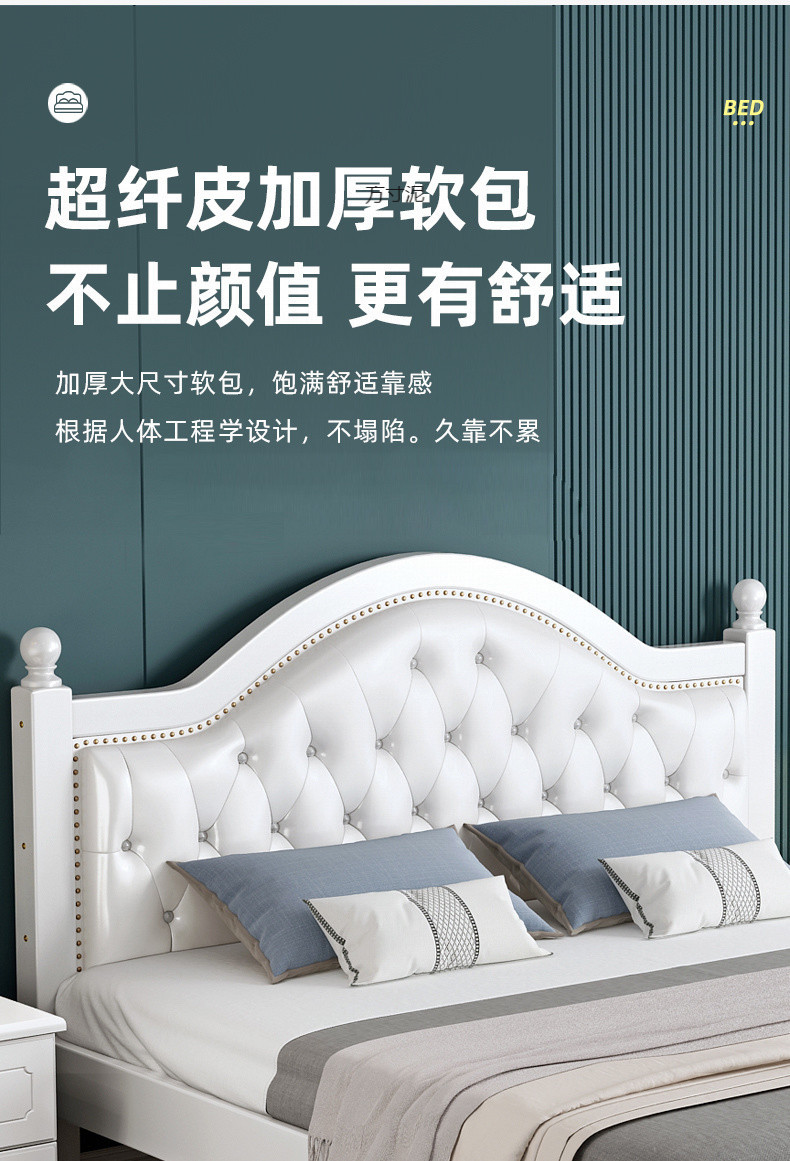 • 흰색 원목 소프트 패키지 침대 + 침대 옆 테이블 * 1 + 무료 매트리스