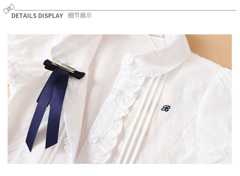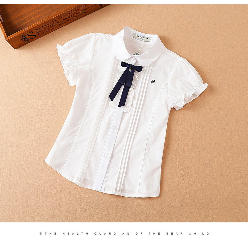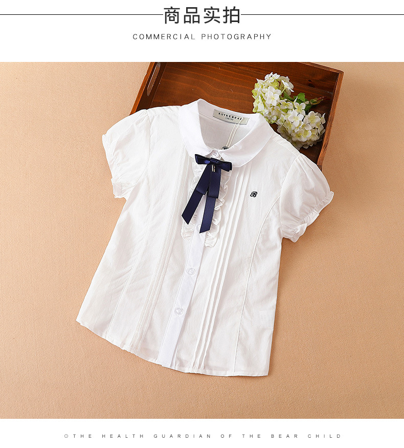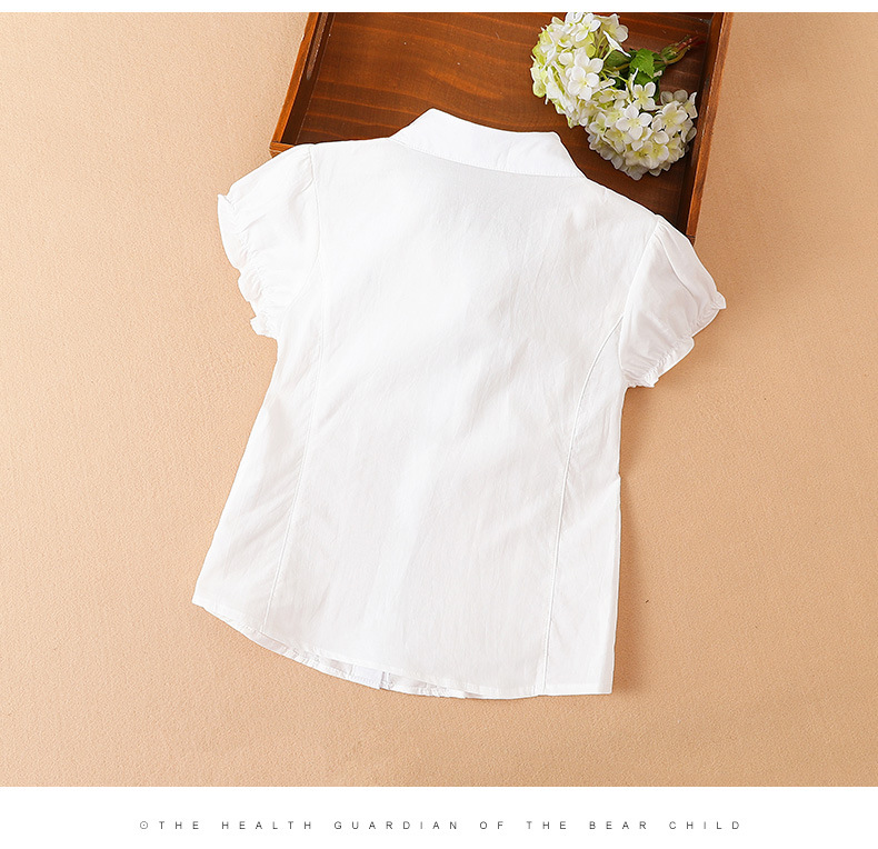 여자 반팔 셔츠 여름 의류 한국식 중 · 빅 키즈 소녀 화이트 활 어린이 반팔 옷깃 아동복스토어 가기