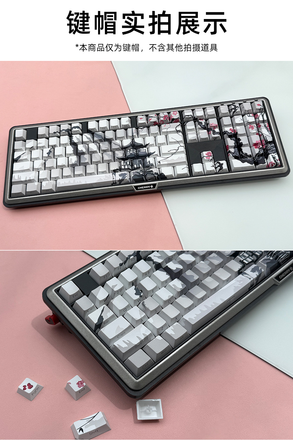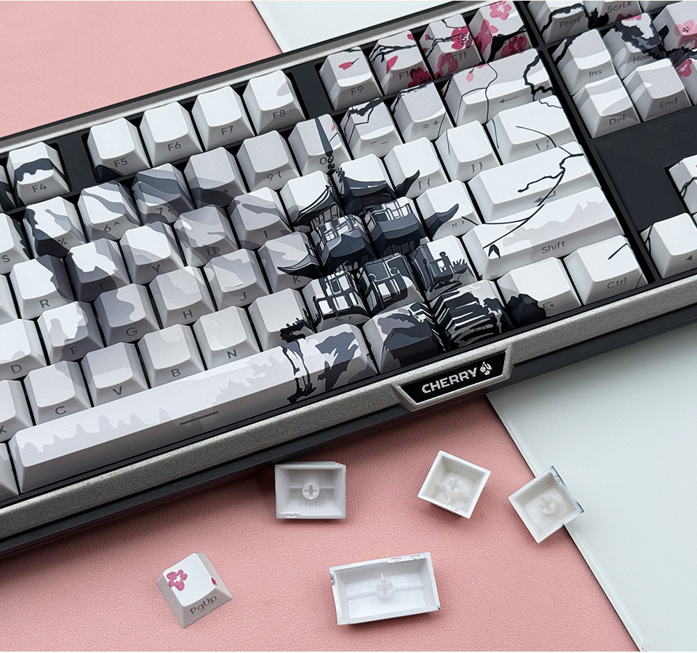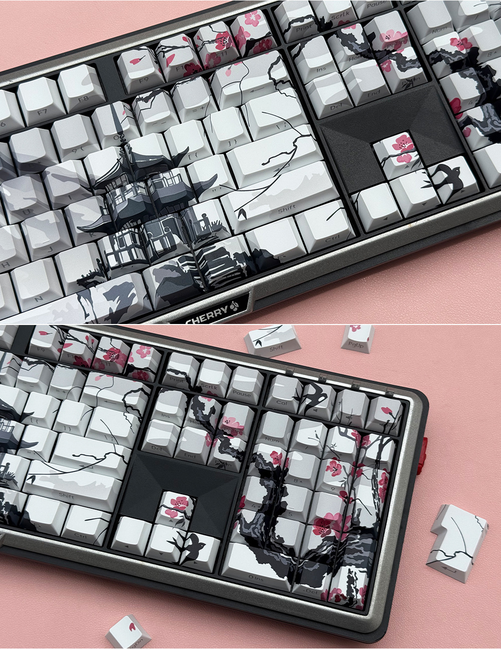 Wooting60he 기계식 키보드에 적합한 열승화 인쇄 오리지널 128키 일본식 벚꽃 투명 키캡