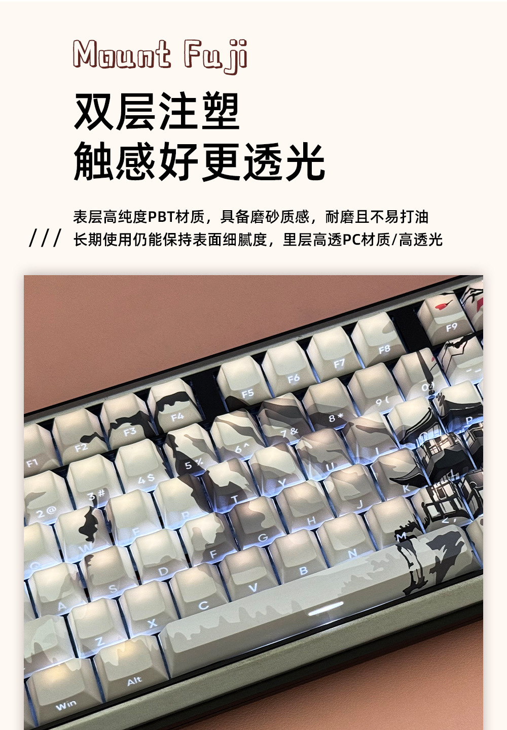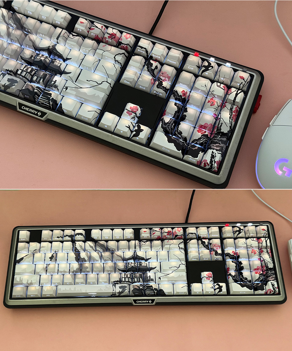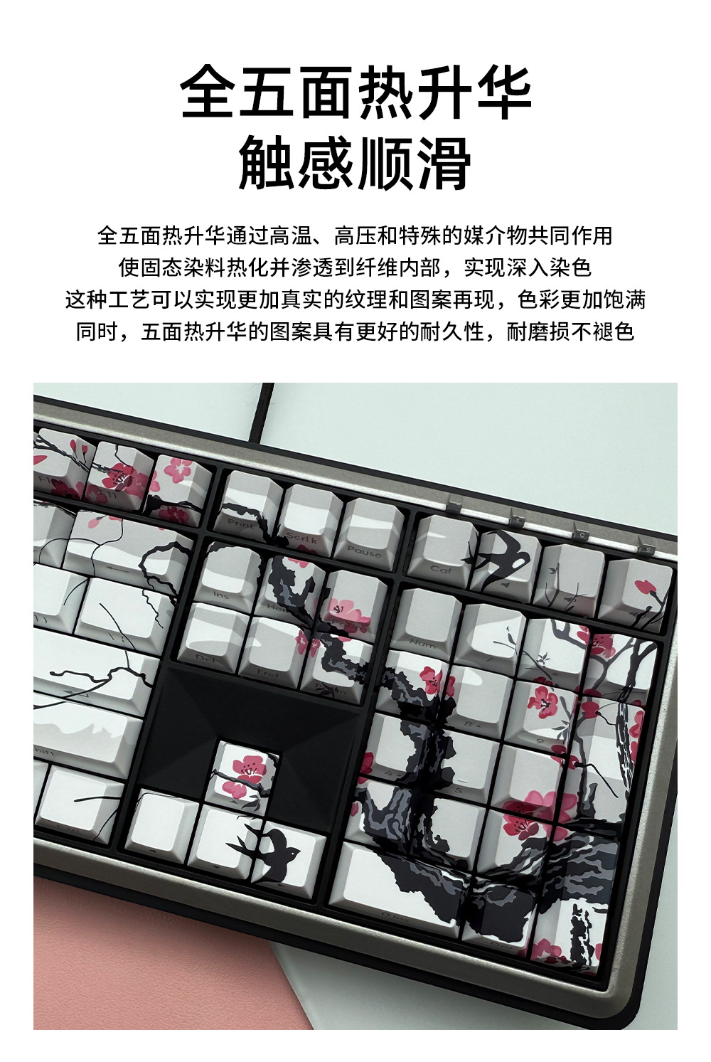 Wooting60he 기계식 키보드에 적합한 열승화 인쇄 오리지널 128키 일본식 벚꽃 투명 키캡
