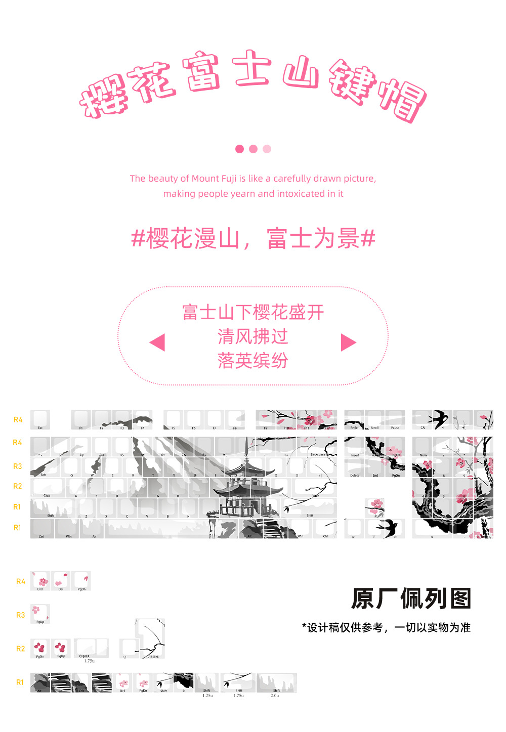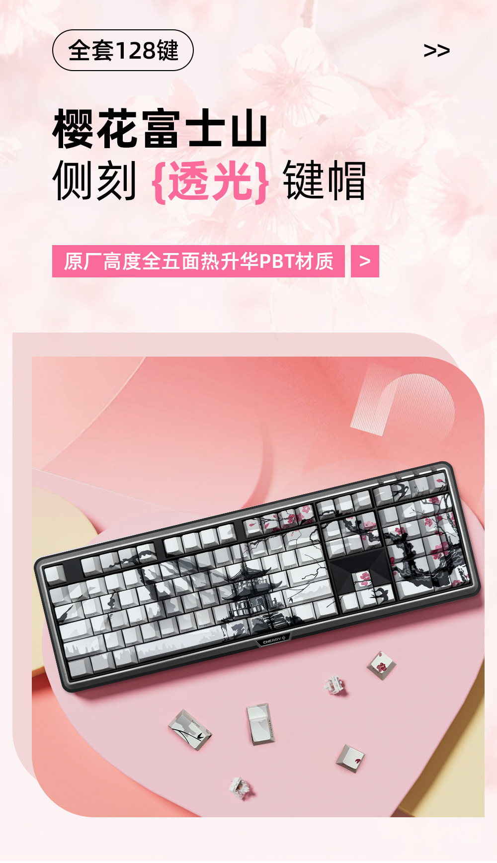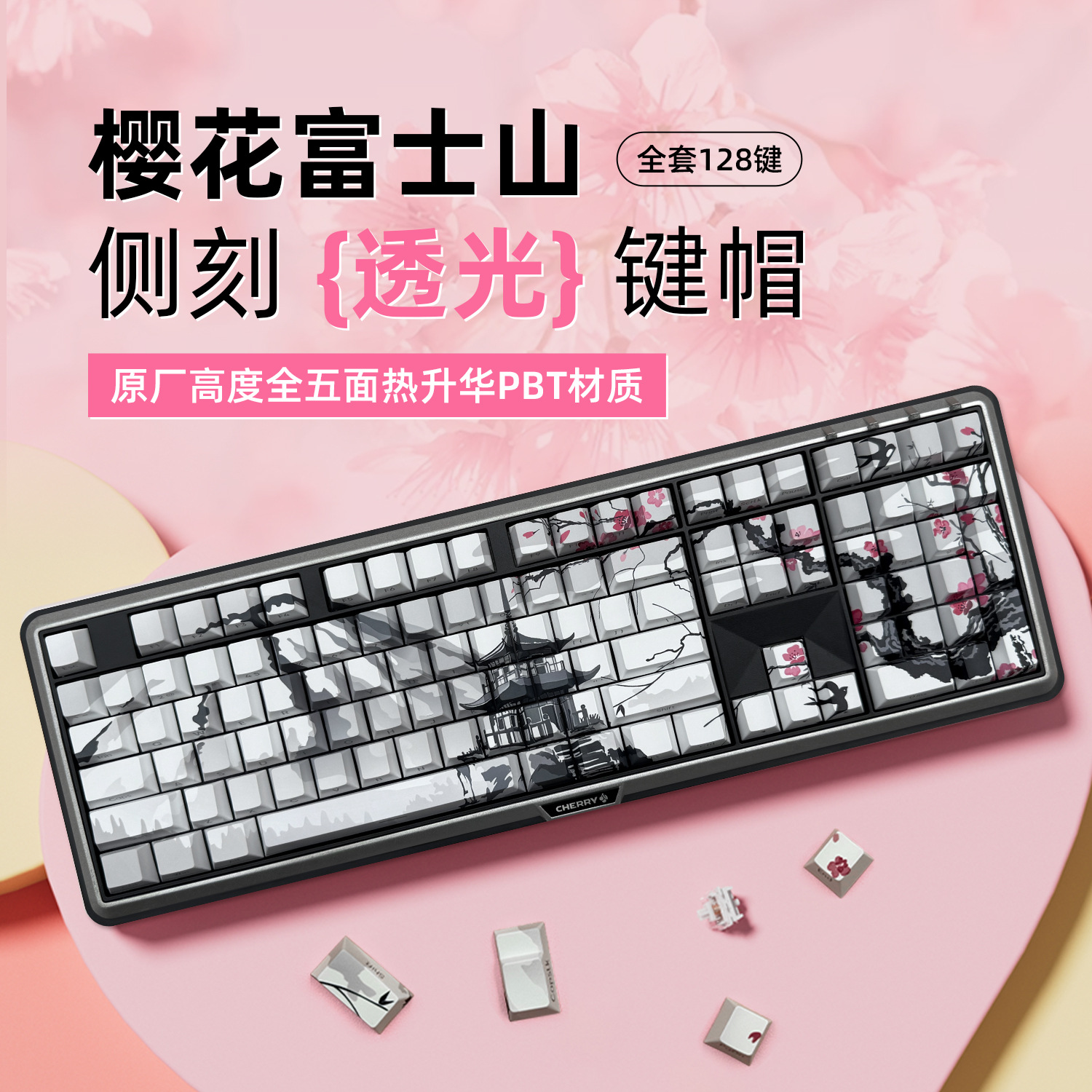 Wooting60he 기계식 키보드에 적합한 열승화 인쇄 오리지널 128키 일본식 벚꽃 투명 키캡스토어 가기