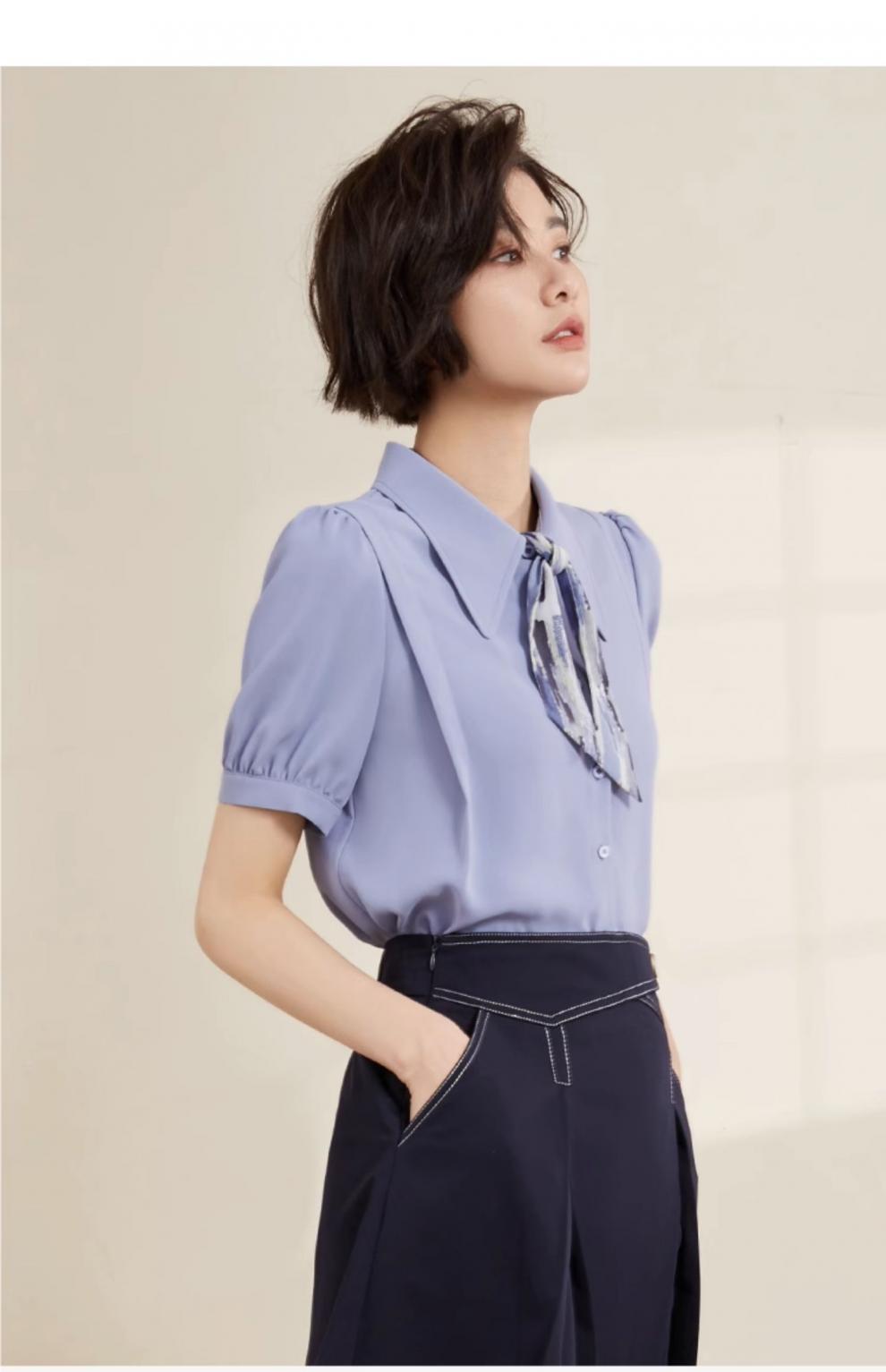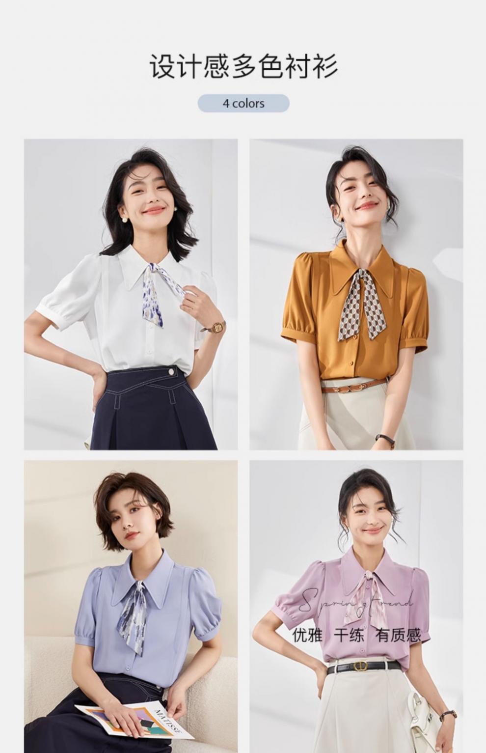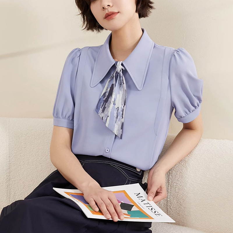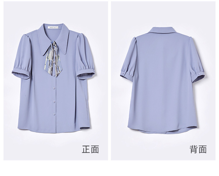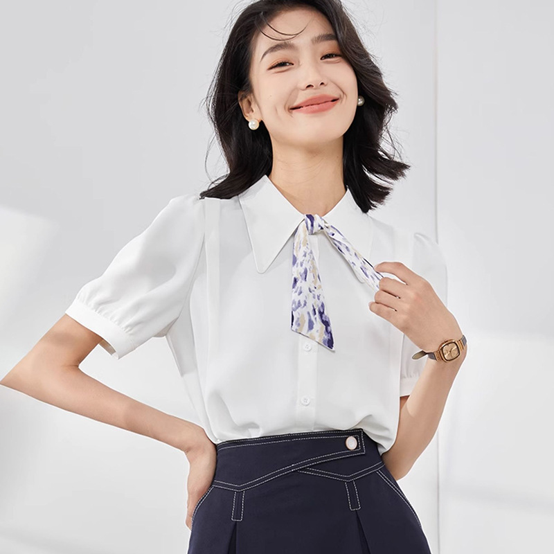온라인 셔츠 여성 반팔 디자인 센스 틈새 2024 여름 새로운 스타일 서양식 전문 셔츠 쉬폰 작은 셔츠 탑스토어 가기