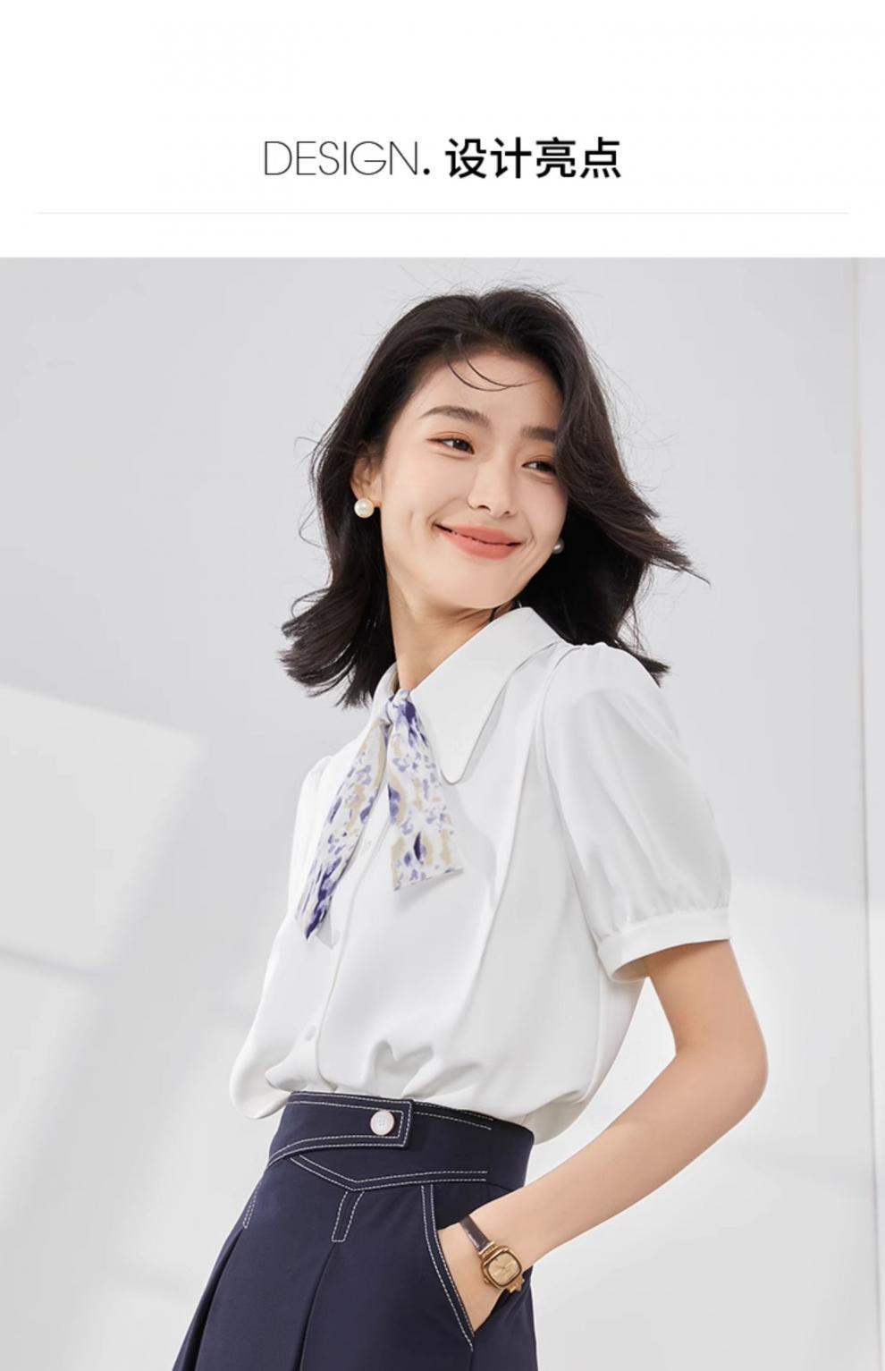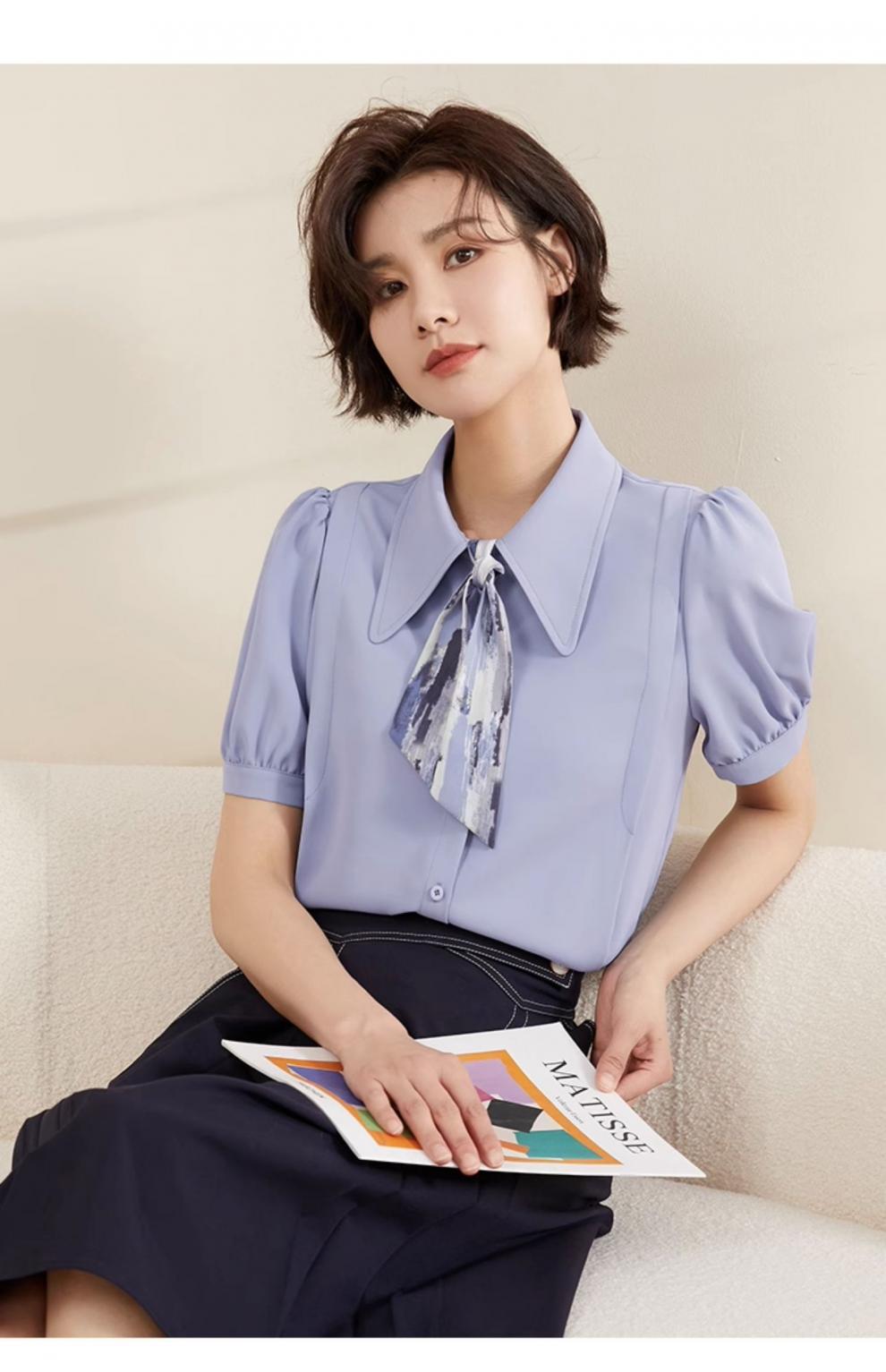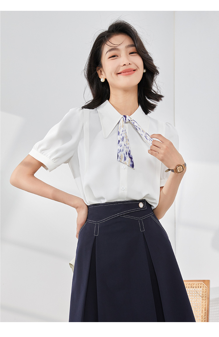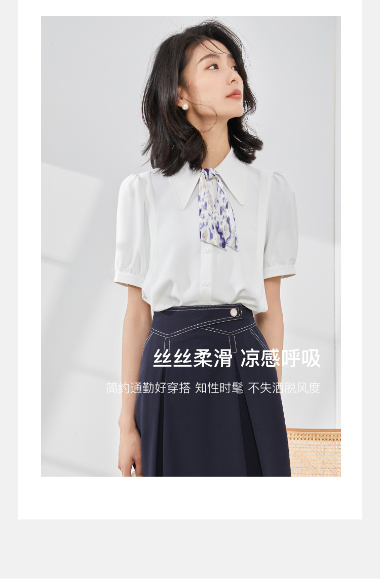온라인 셔츠 여성 반팔 디자인 센스 틈새 2024 여름 새로운 스타일 서양식 전문 셔츠 쉬폰 작은 셔츠 탑스토어 가기