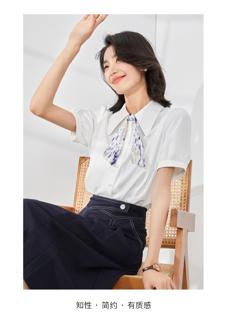 온라인 셔츠 여성 반팔 디자인 센스 틈새 2024 여름 새로운 스타일 서양식 전문 셔츠 쉬폰 작은 셔츠 탑