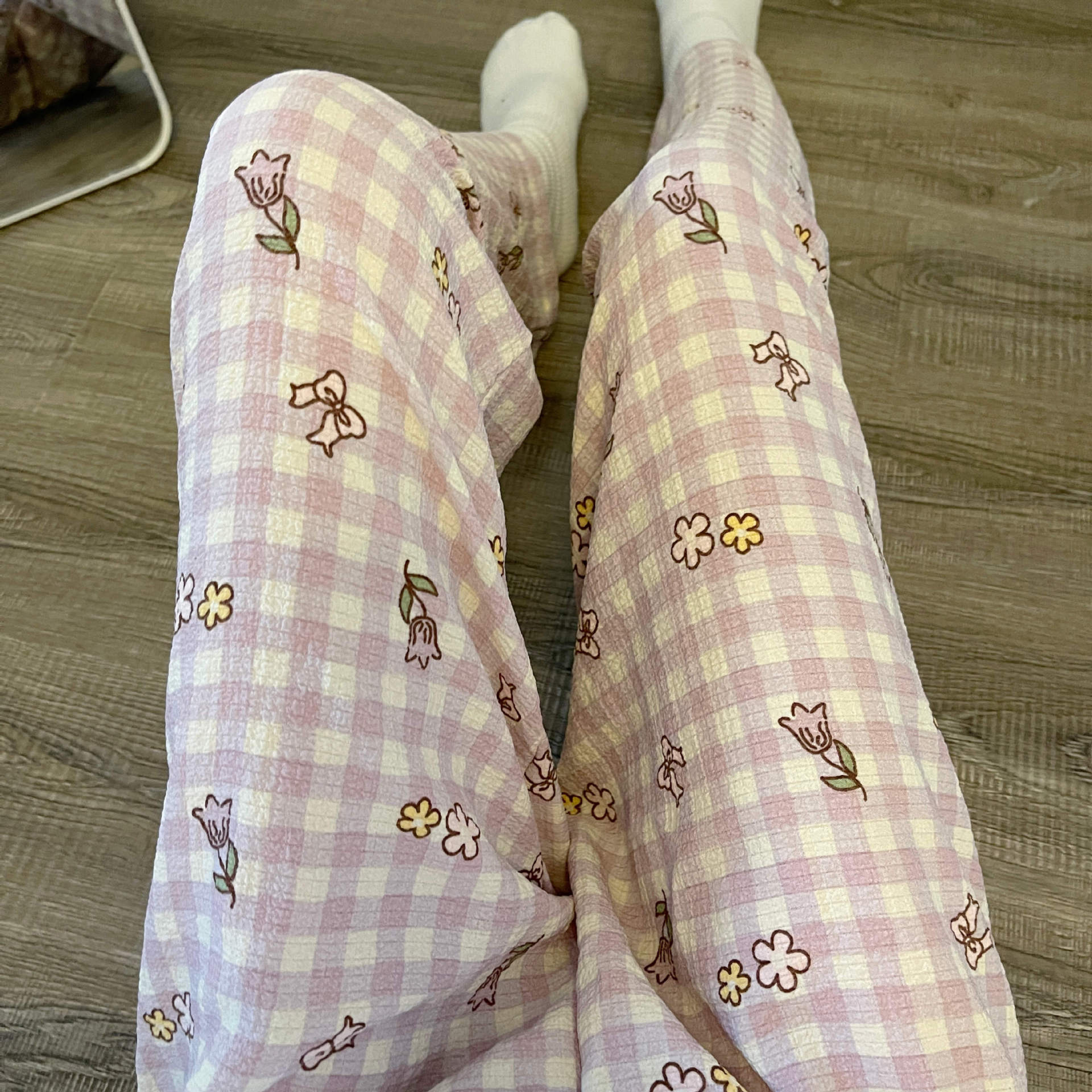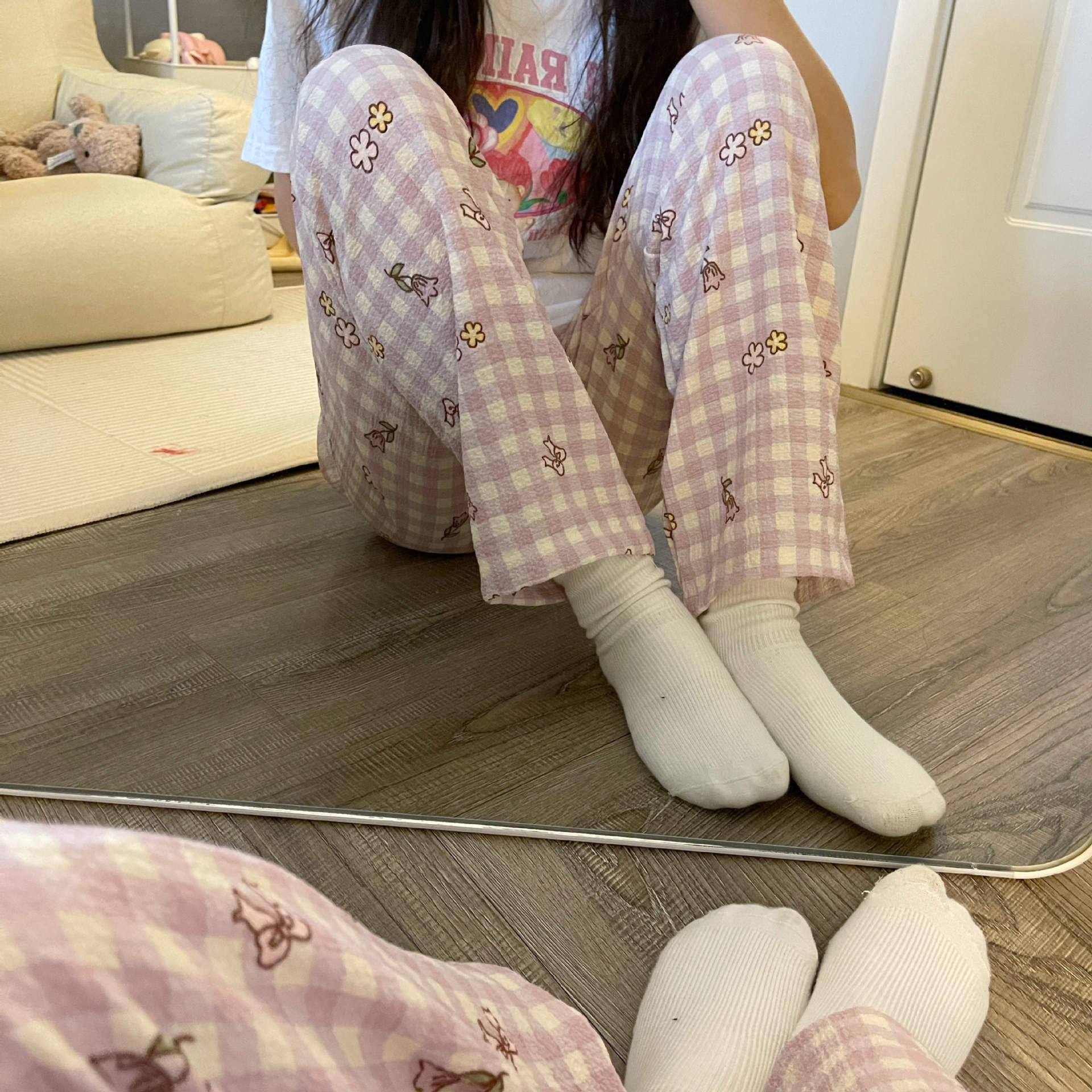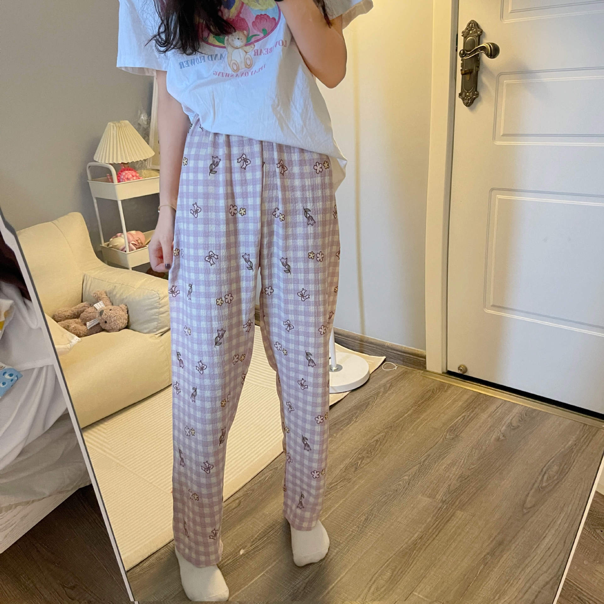 격자 무늬 파자마 바지 여성의 여름 새로운 도착 바지 느슨한 걷기 바지 봄과 가을 외부 착용 얇은 캐주얼 홈 바지스토어 가기