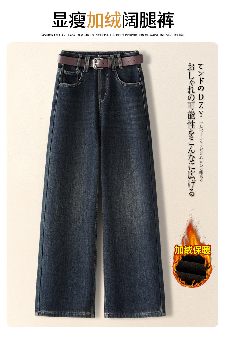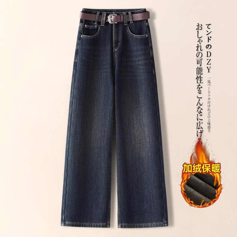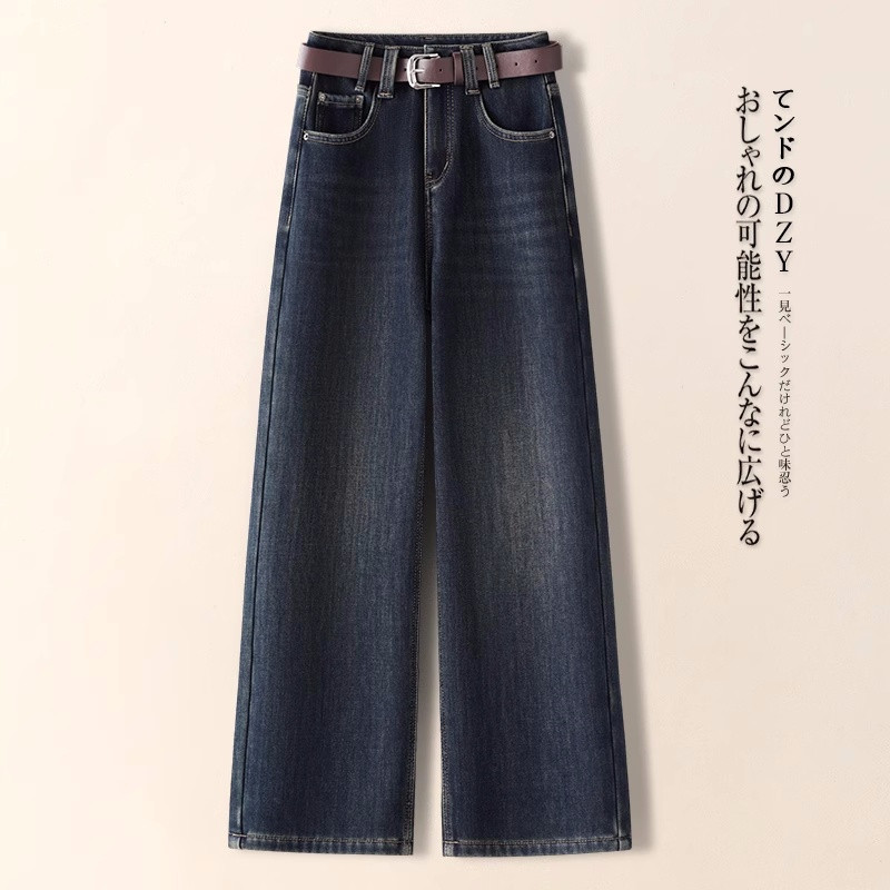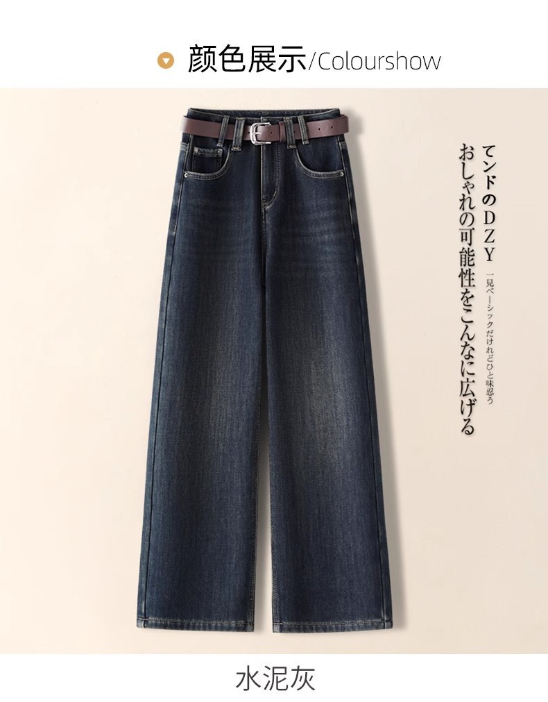 A6C 시멘트 회색 넓은 다리 청바지 여성의 봄과 가을 2025 새로운 느슨한 딥 긴 바지 좁은 기모 똑바로스토어 가기