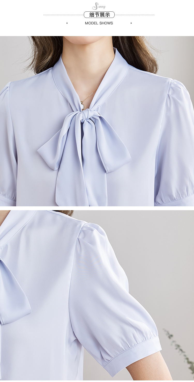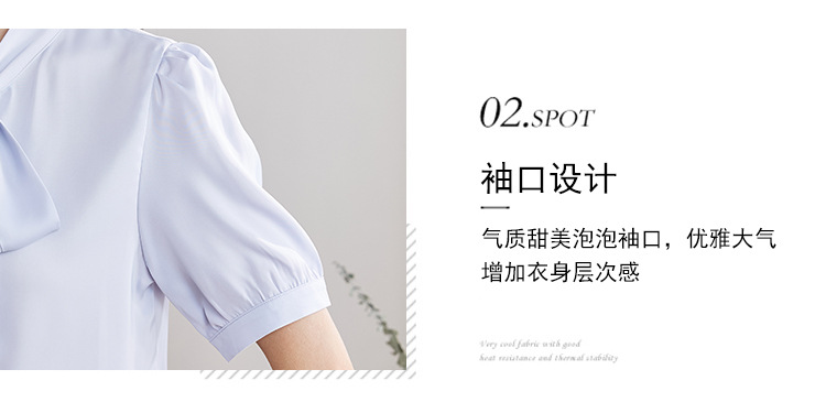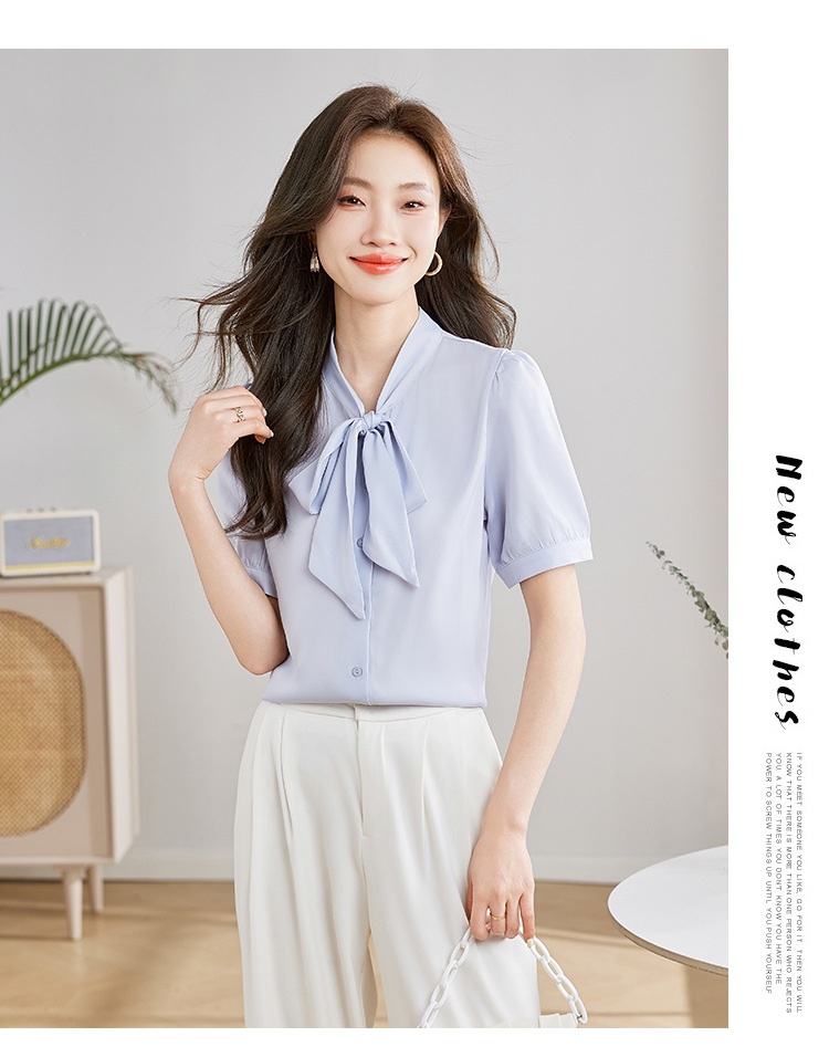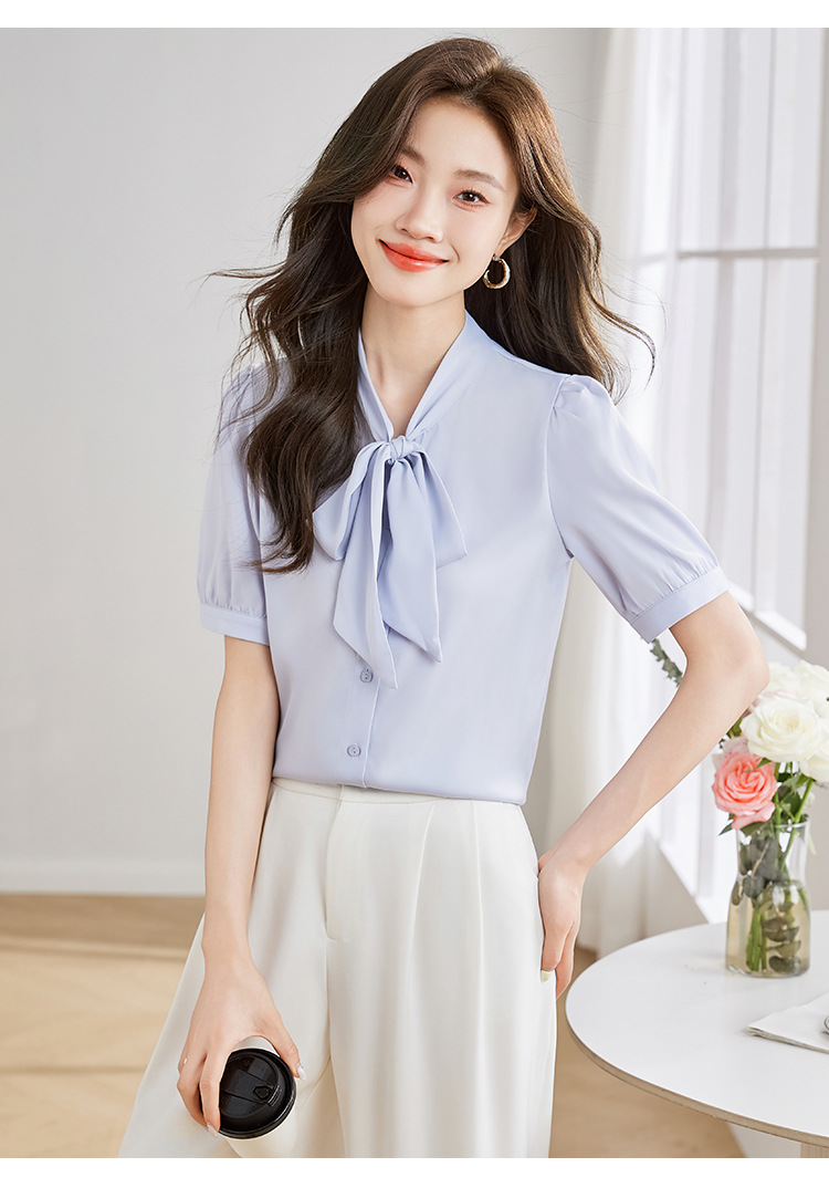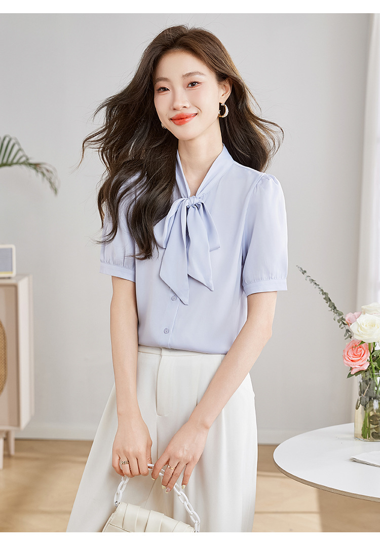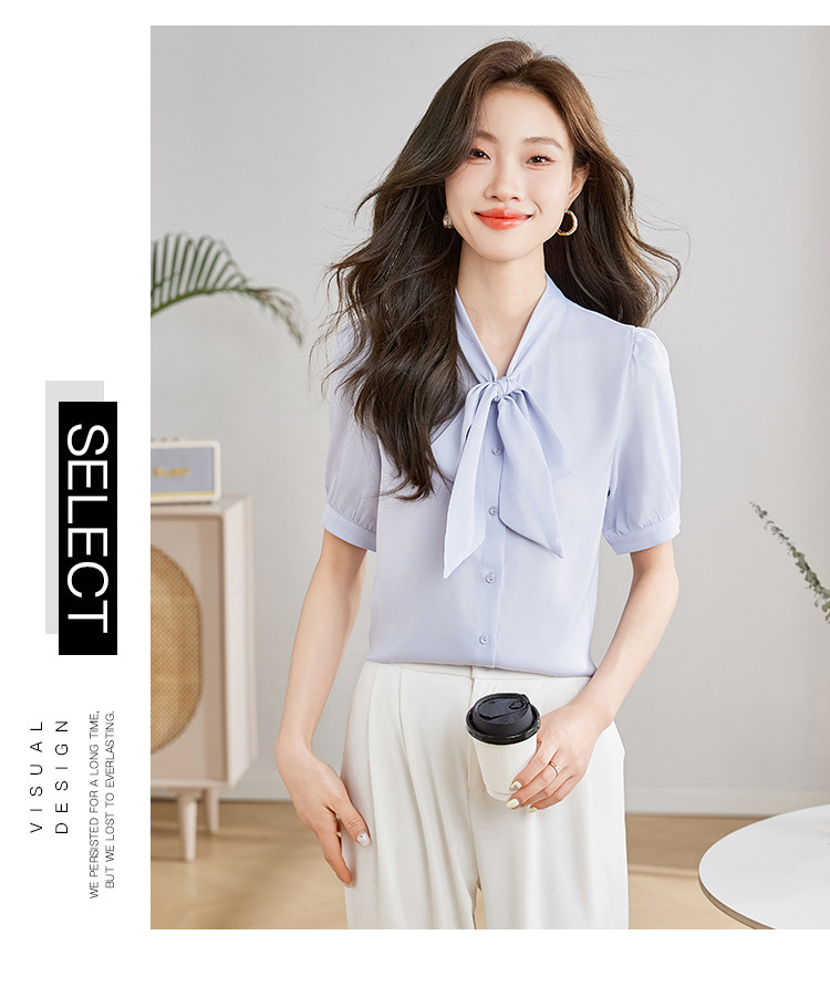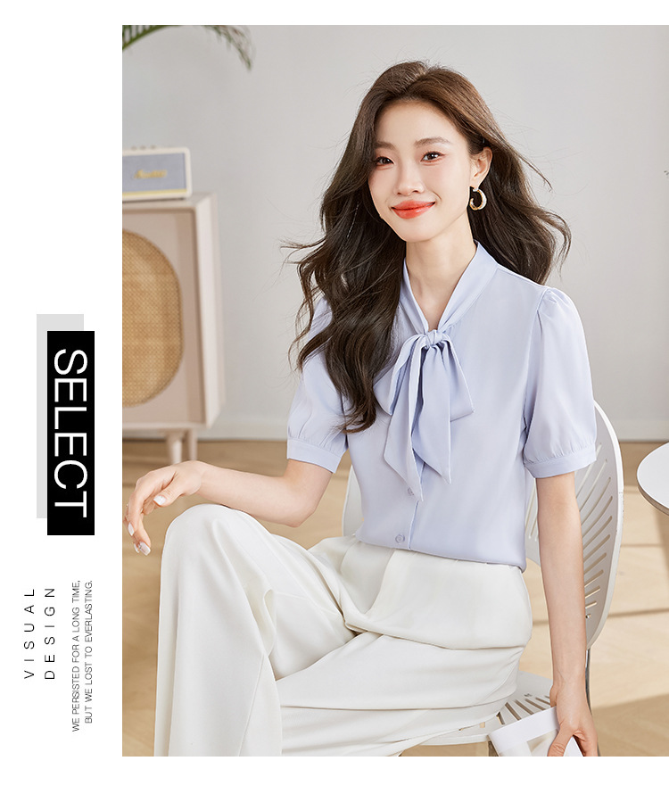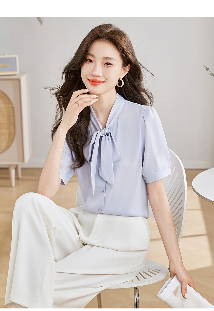 화이트 새틴 리본 셔츠 여성 반팔 여름 디자인 센스 니쉬 홍콩 스타일 통근 프로 탑 올 매치 레이스 업스토어 가기