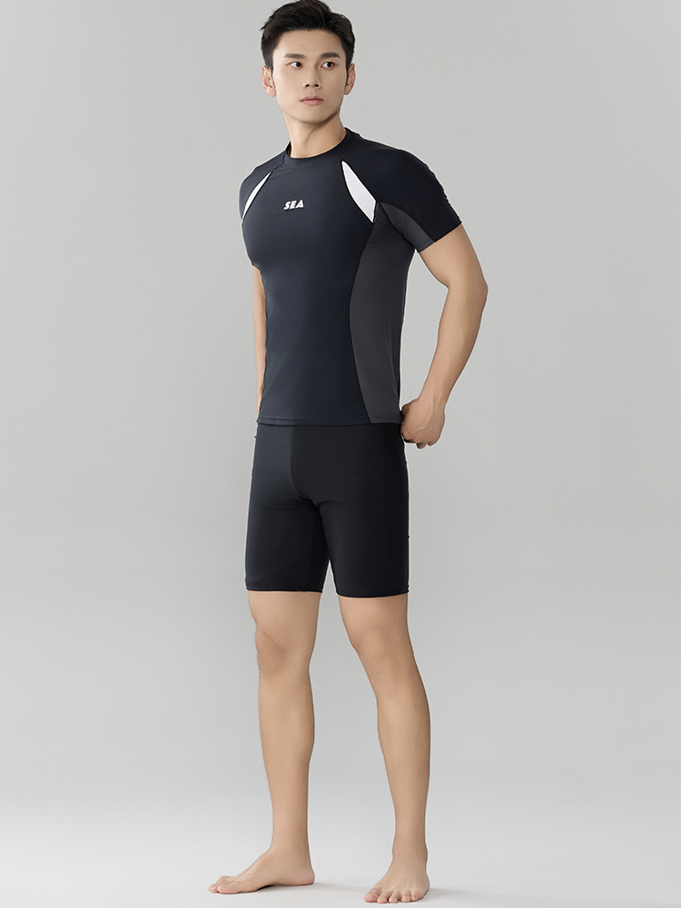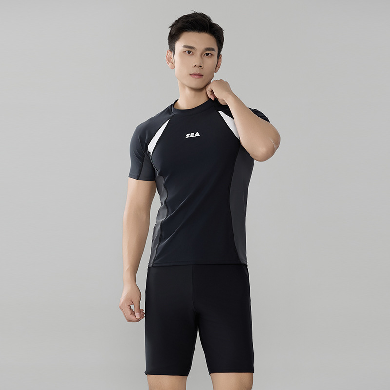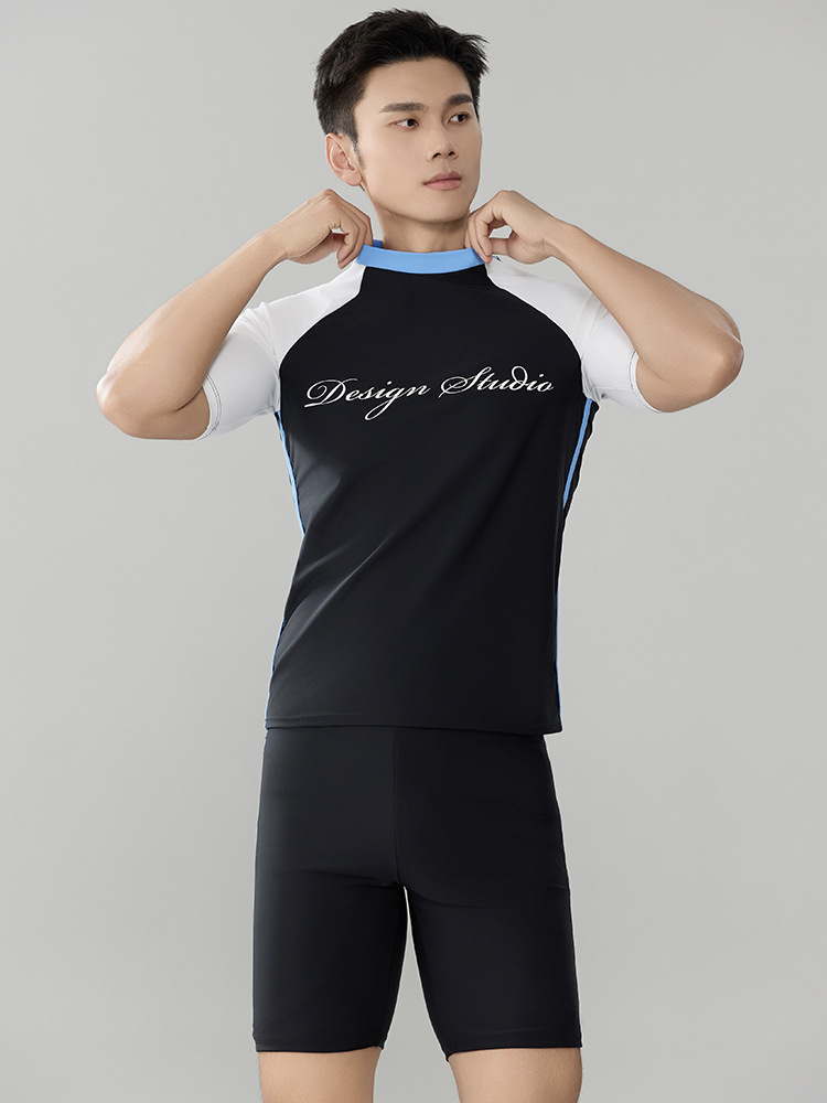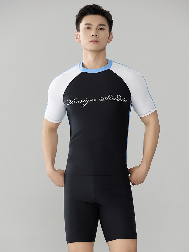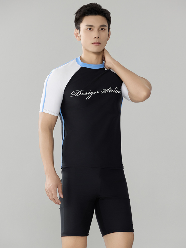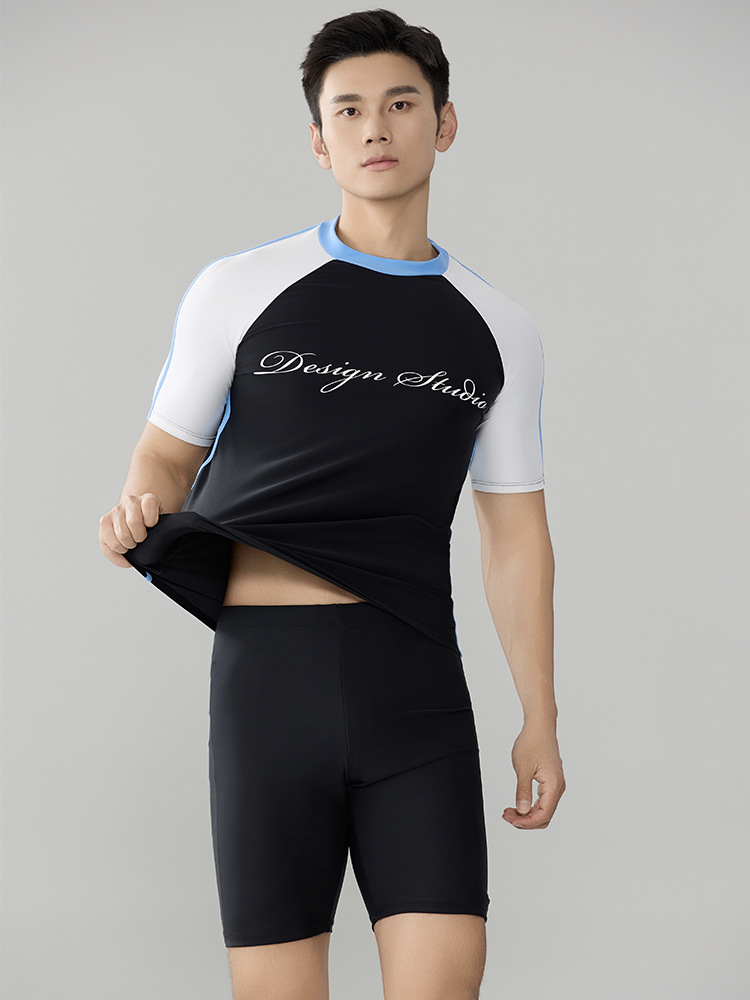 남자 수영복 투피스 세트 2025 신형 웨트수트 트렌디 알파벳 컬러블록 남자 서핑 플러스 사이즈 수영복 바지스토어 가기
