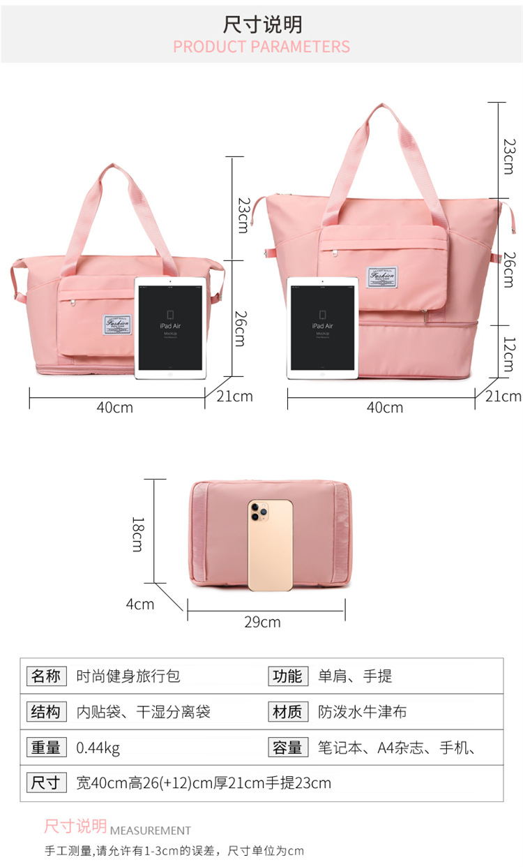 접이식 여행 가방 소매 트롤리 케이스 대용량 여행 체육관 가방 짧은 여행을위한 경량 보관 수하물 가방
