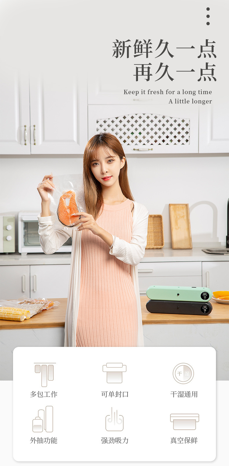 진공 휴대용 밀봉 기계 습식 및 건식 식품 보존 기계 완전 자동 소형 가정용 진공 플라스틱 밀봉 기계스토어 가기