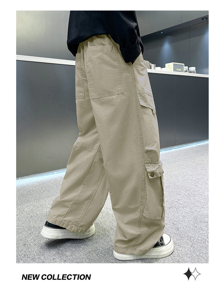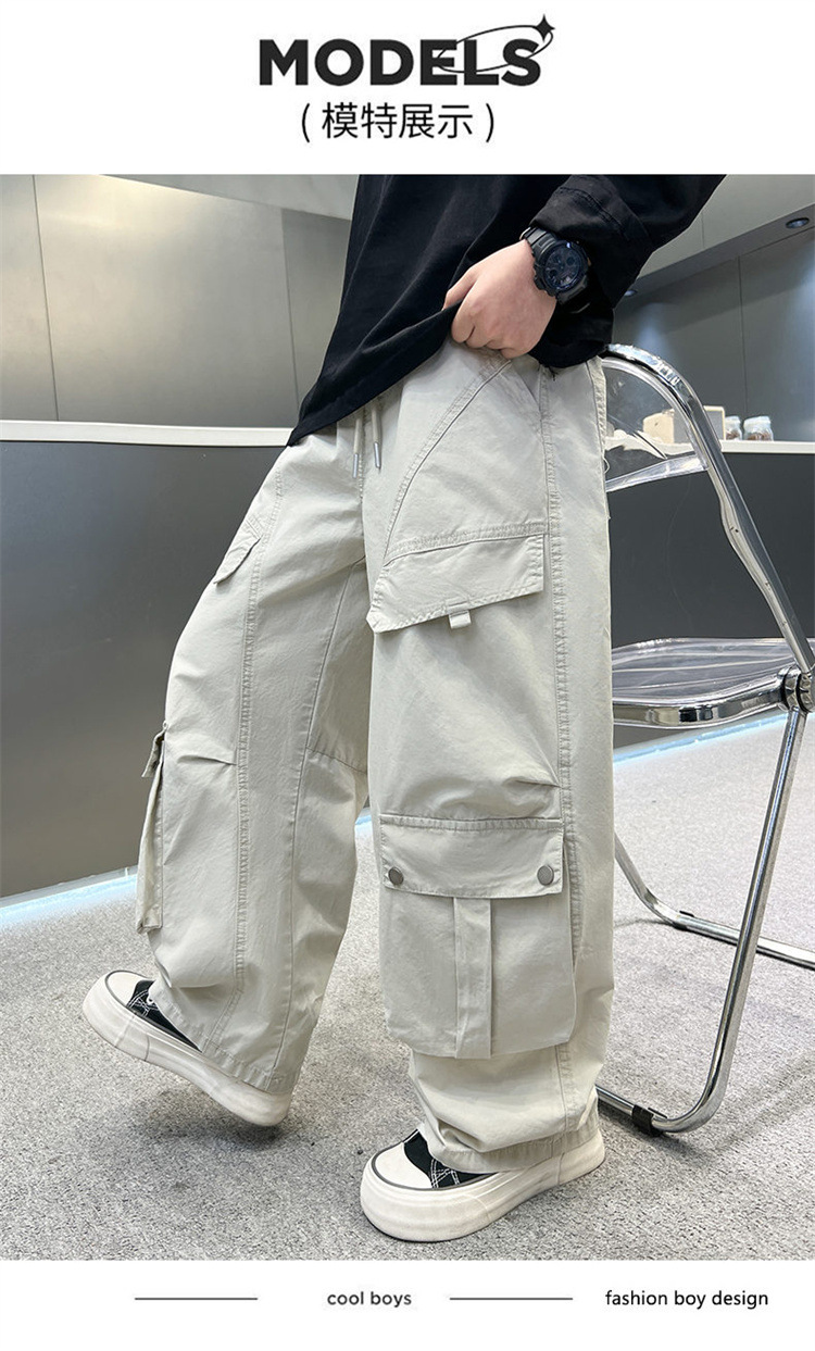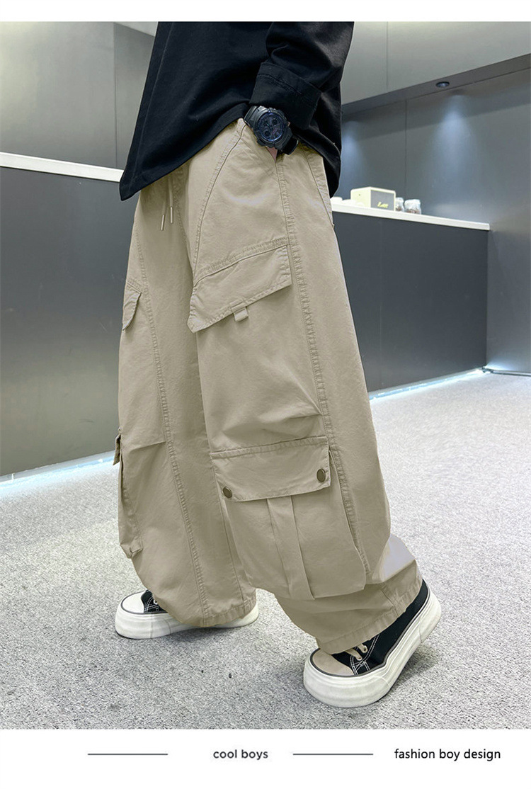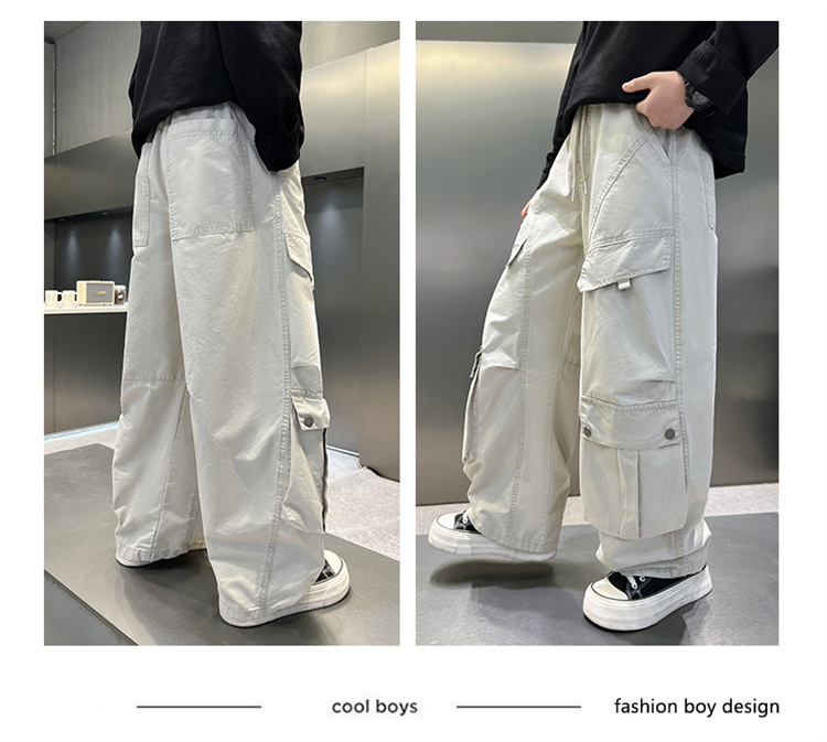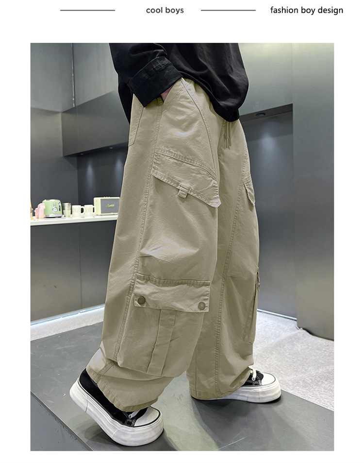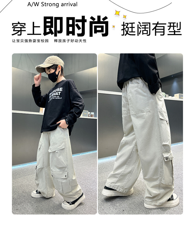 소년 봄 바지 2025 새로운 어린이 봄과 가을 큰 어린이 느슨한 작업복 남성 바지 캐주얼 바지 유행