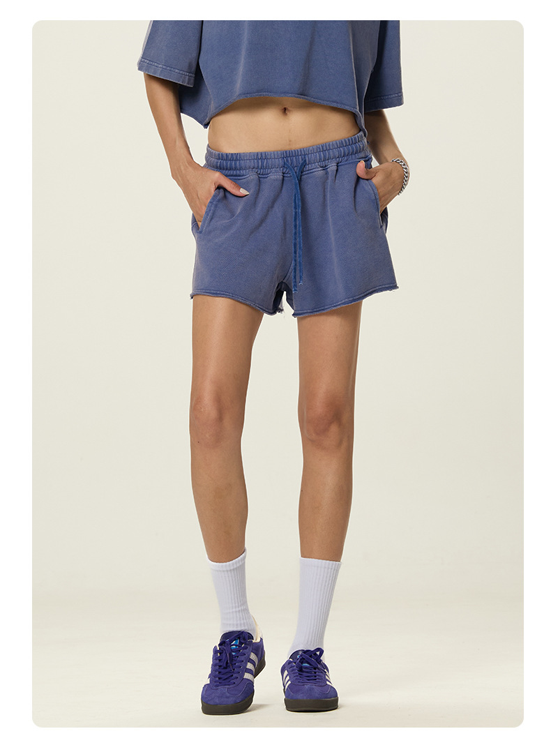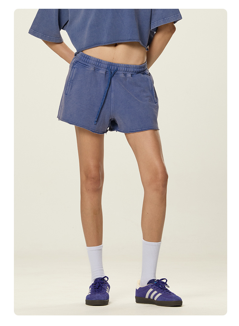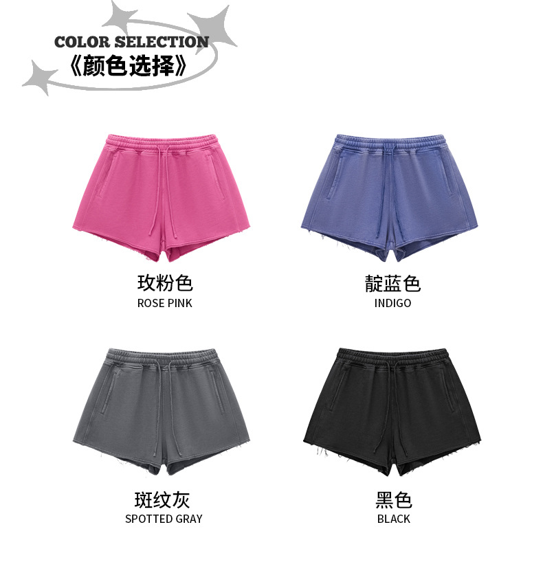 RS 여성복 | 국경을 넘는 유럽과 미국의 씻은 스파이스 걸스 반바지 여성 여름 300G 퓨어 코튼 유럽과 미국의 드로우 스트링 반바지 여성