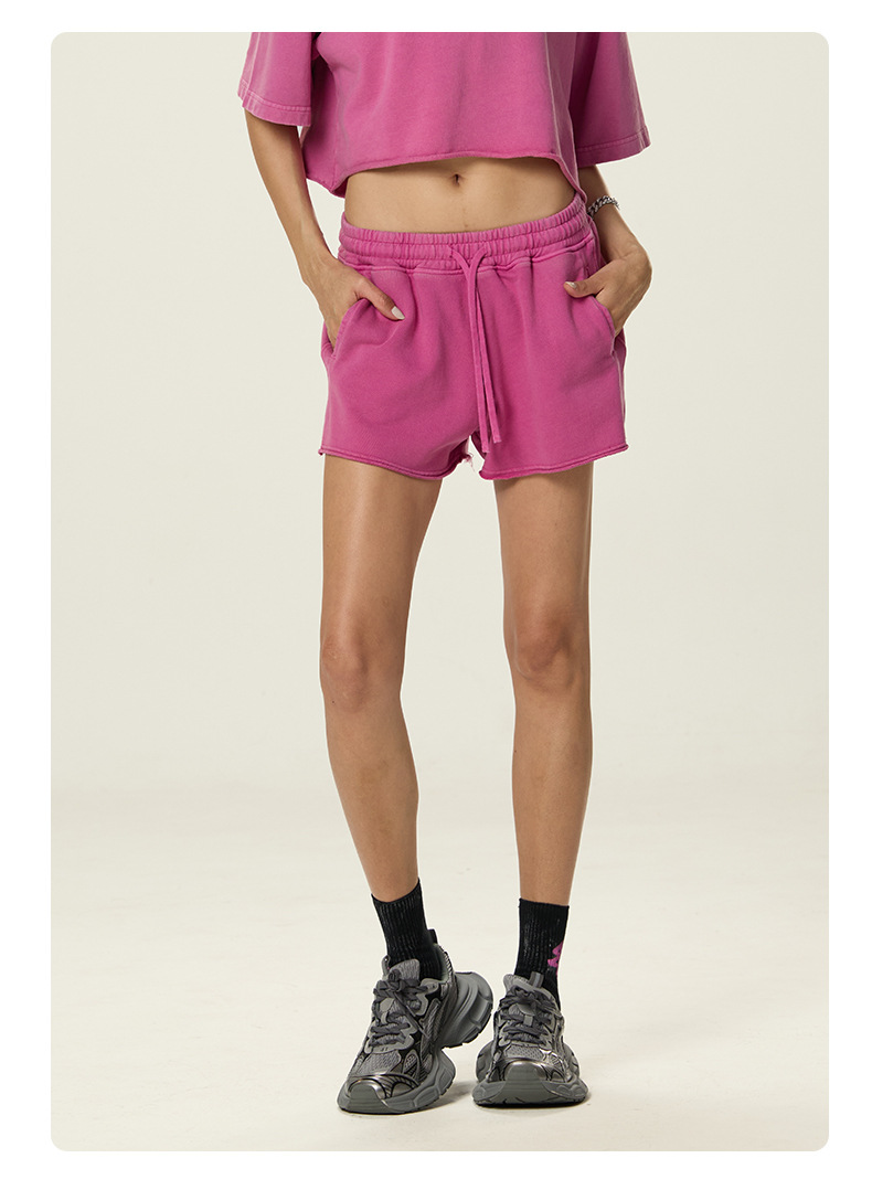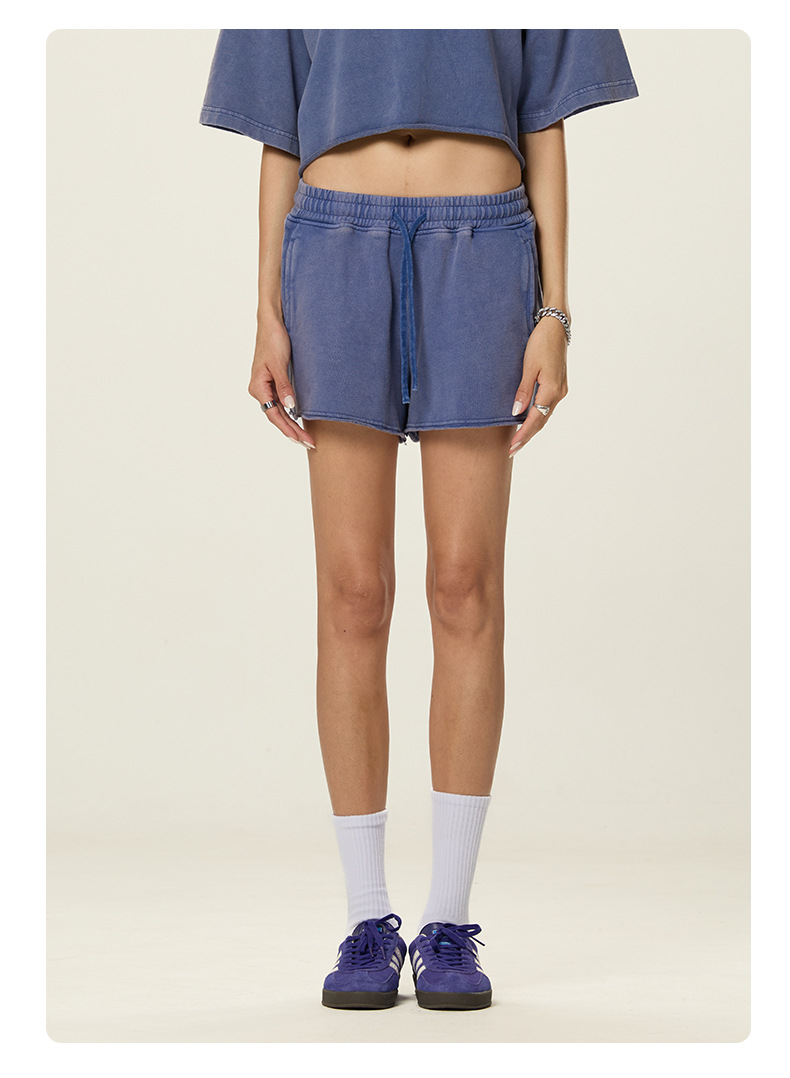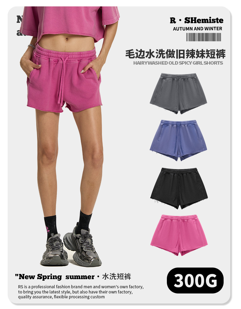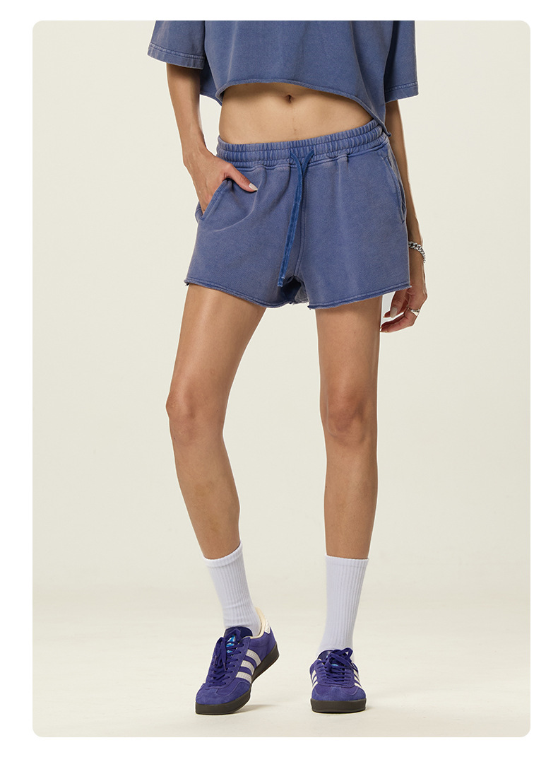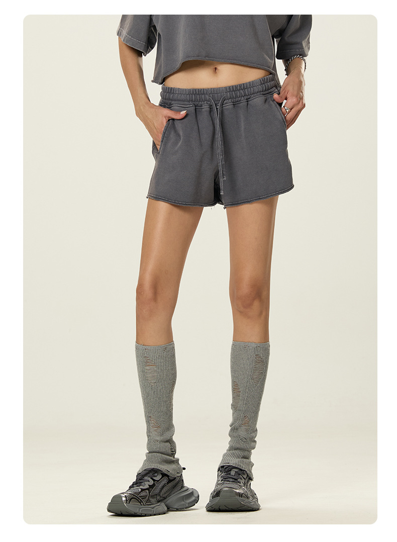 RS 여성복 | 국경을 넘는 유럽과 미국의 씻은 스파이스 걸스 반바지 여성 여름 300G 퓨어 코튼 유럽과 미국의 드로우 스트링 반바지 여성스토어 가기