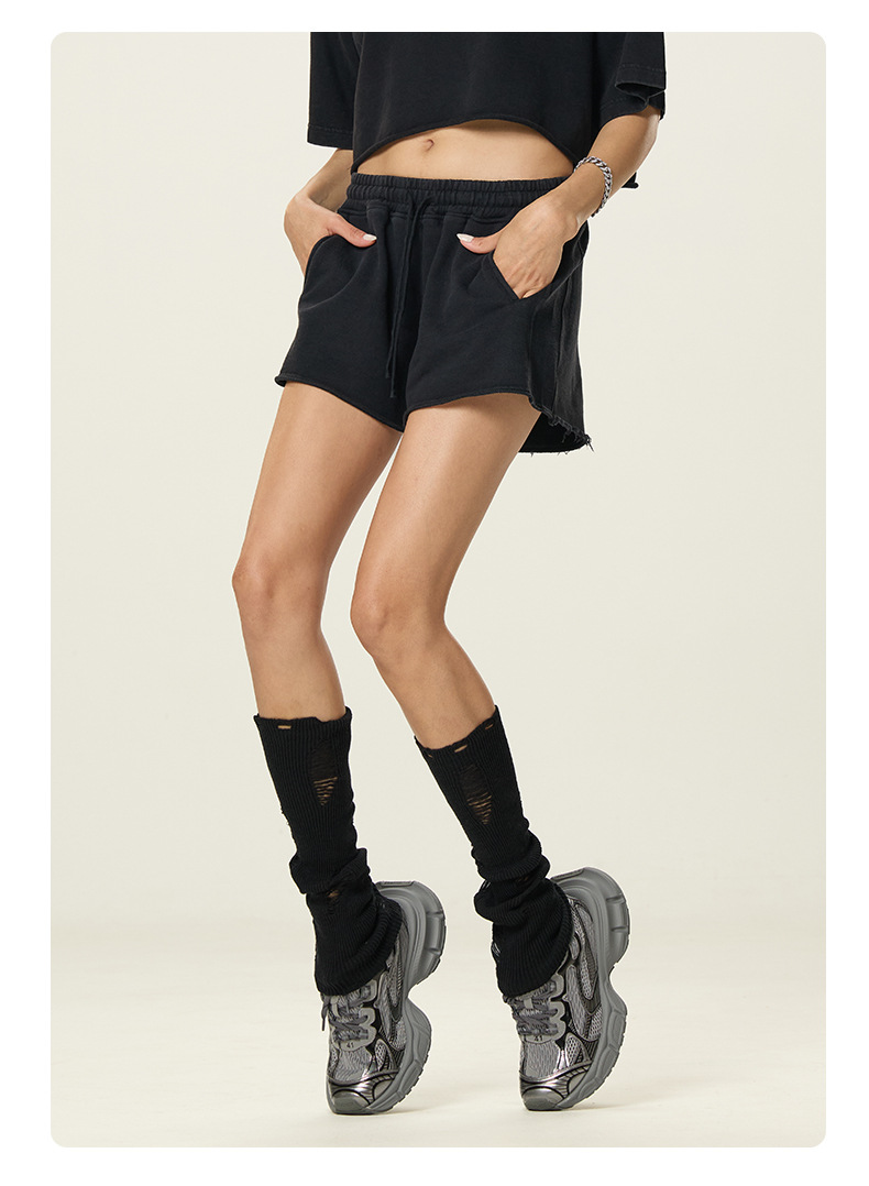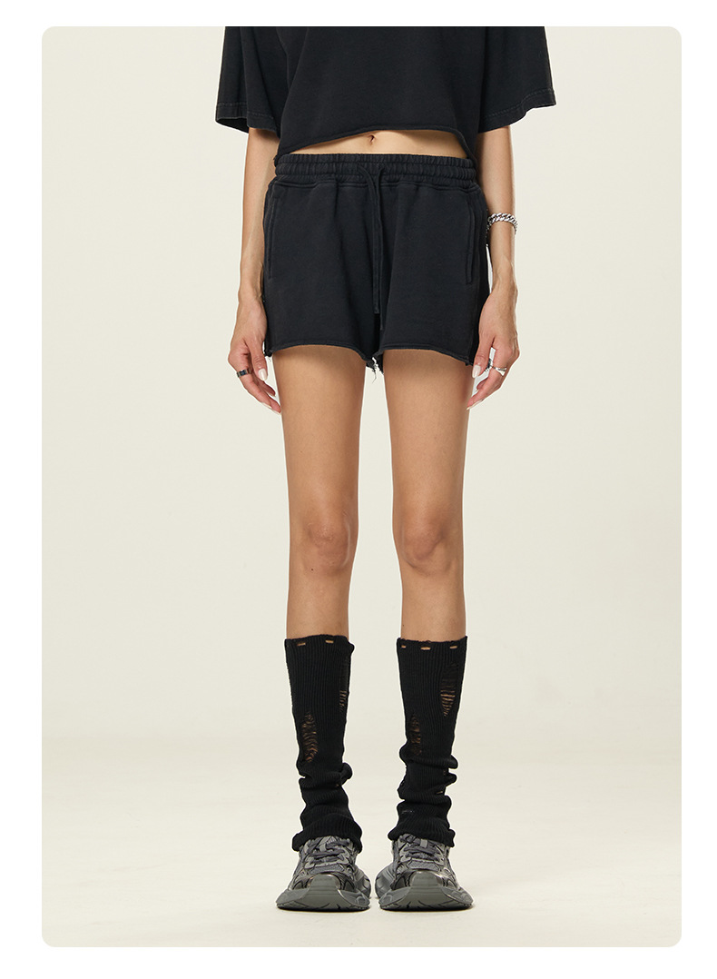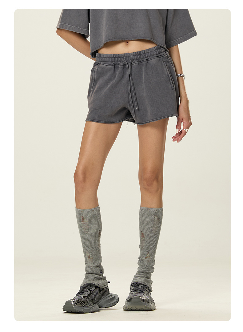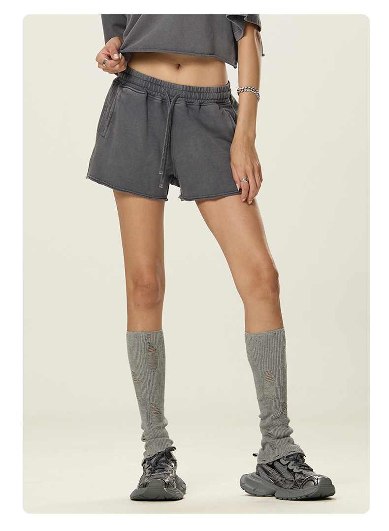 RS 여성복 | 국경을 넘는 유럽과 미국의 씻은 스파이스 걸스 반바지 여성 여름 300G 퓨어 코튼 유럽과 미국의 드로우 스트링 반바지 여성스토어 가기