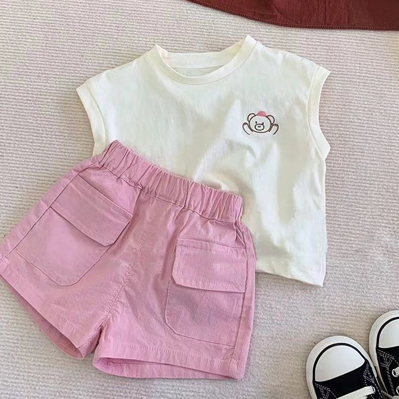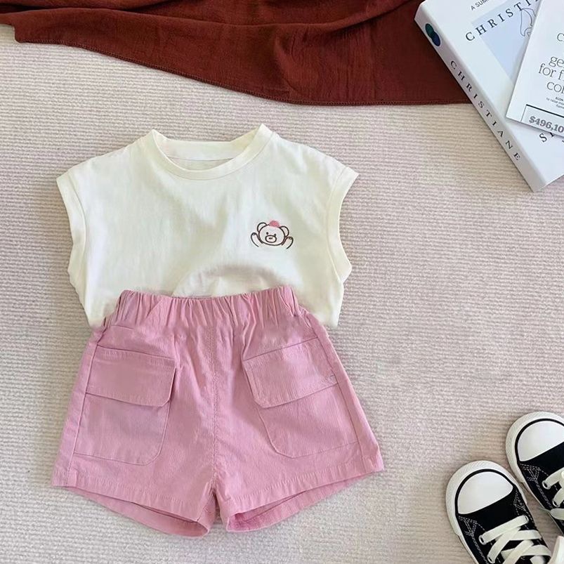 여름 소녀 투피스 세트 아기 세련된 어린이 성격 유행 브랜드 만화 한국 스타일 신선한 베스 티셔츠 반바지스토어 가기