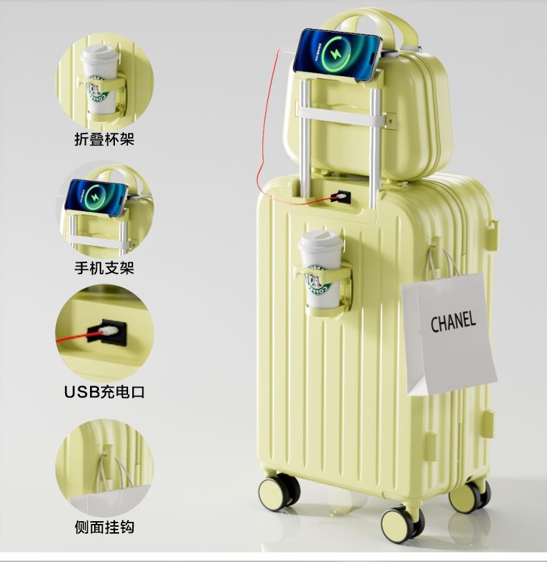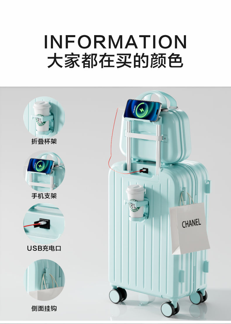 남성과 여성을 위한 맞춤형 2025 새로운 스타일의 작은 신선한 트롤리 케이스, 비밀번호 상자, 범용 무음 휠, 내구성 및 탑승 가능