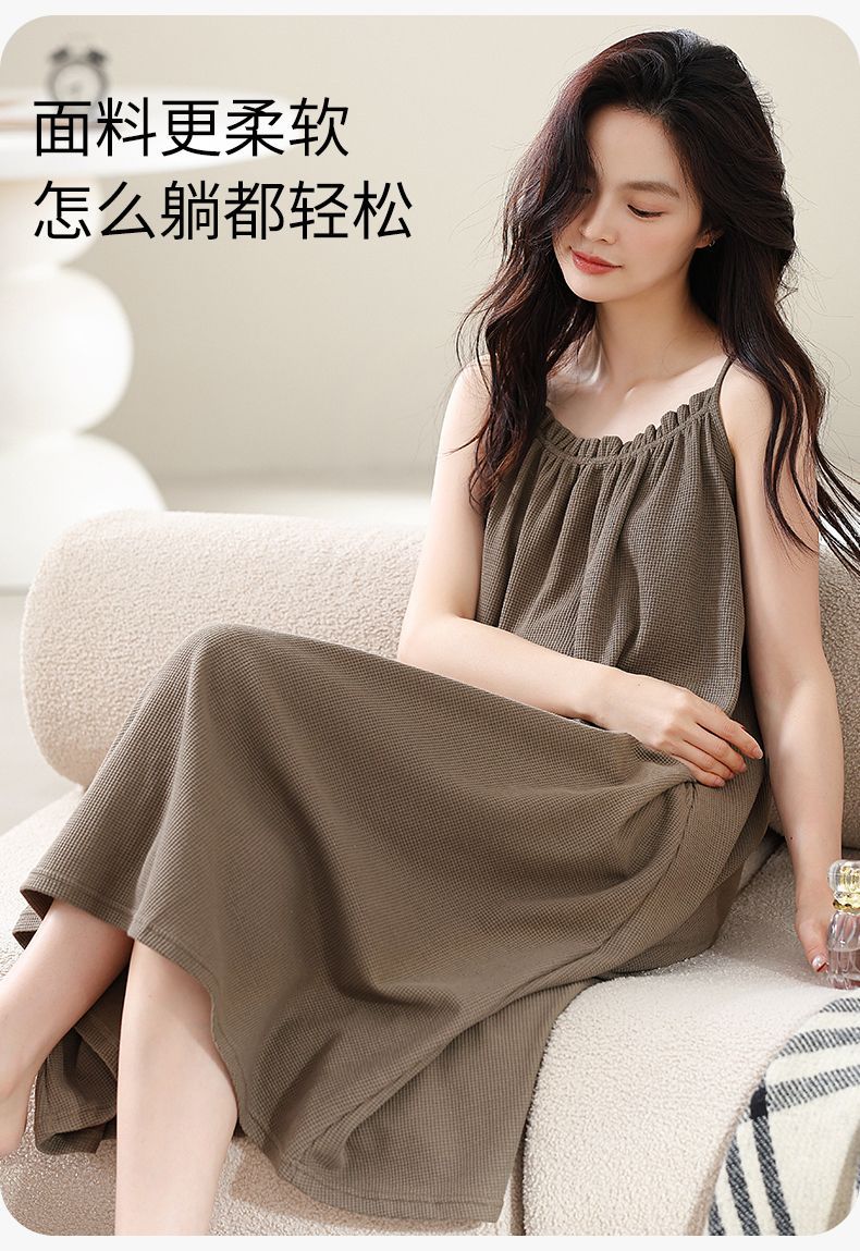 슬링 퓨어 코튼 나이트 가운 긴 원피스 여성 여름 새로운 와플 고급 겉옷 느슨한 집 옷