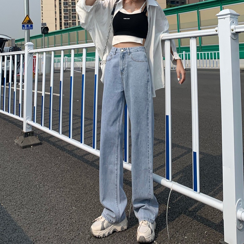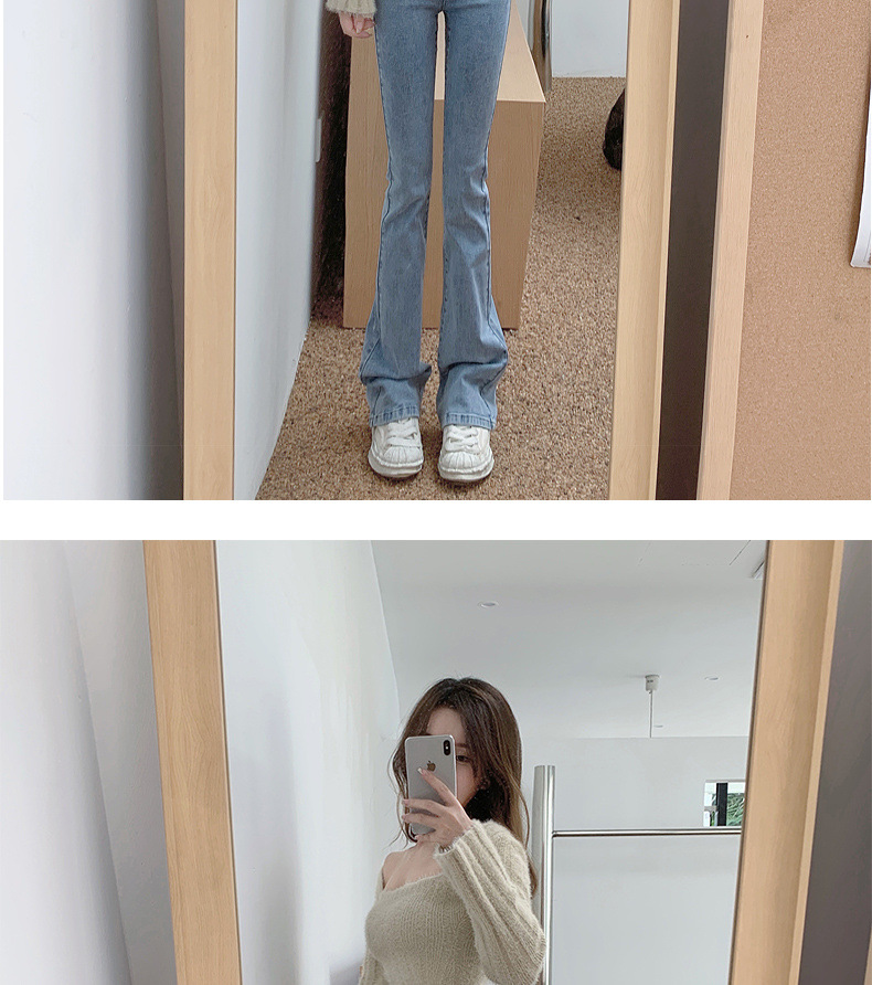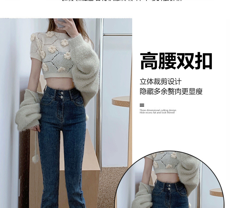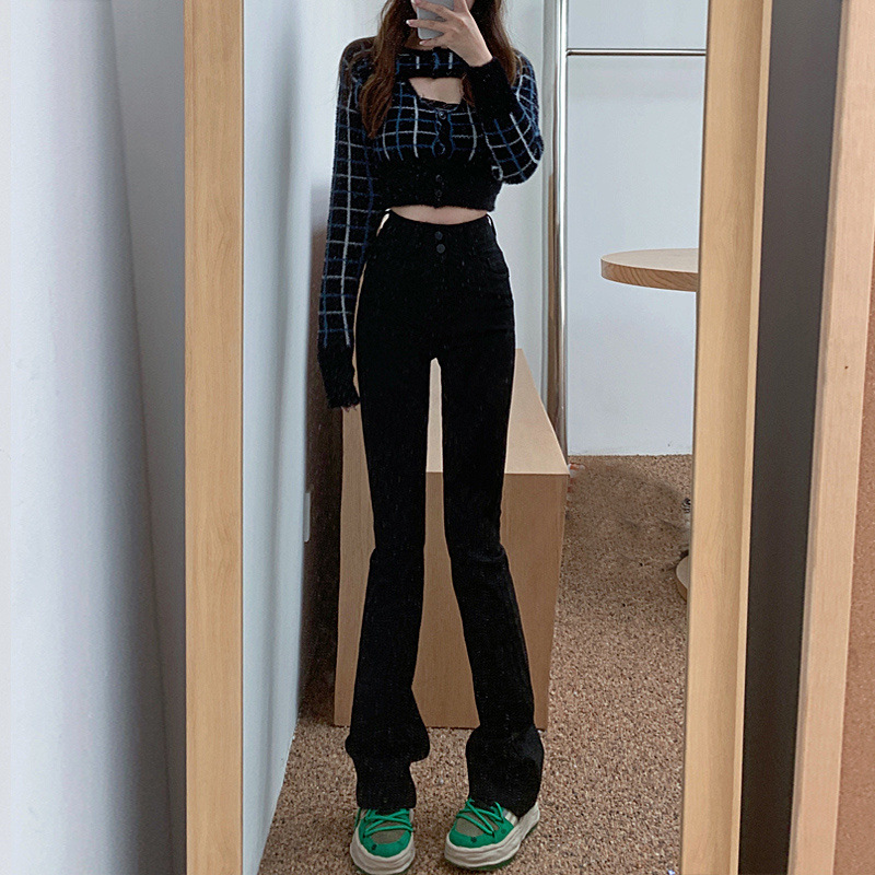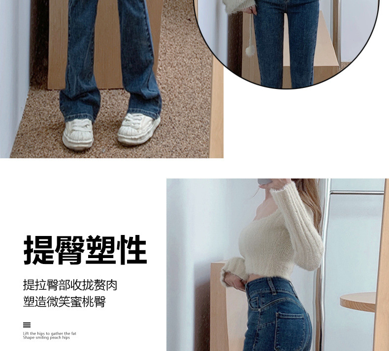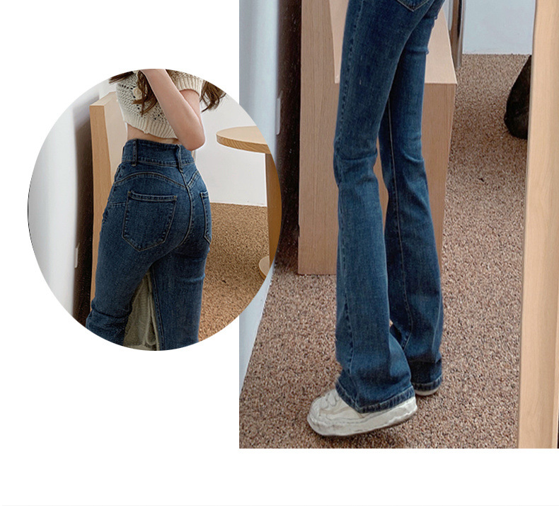 라이트 블루 마이크로 플레어 진 여성용 봄 2024 새로운 하이 허리 복숭아 엉덩이 슬림 말굽 넓은 다리 바지스토어 가기