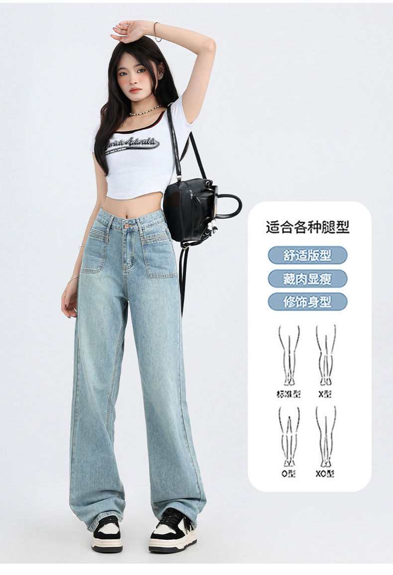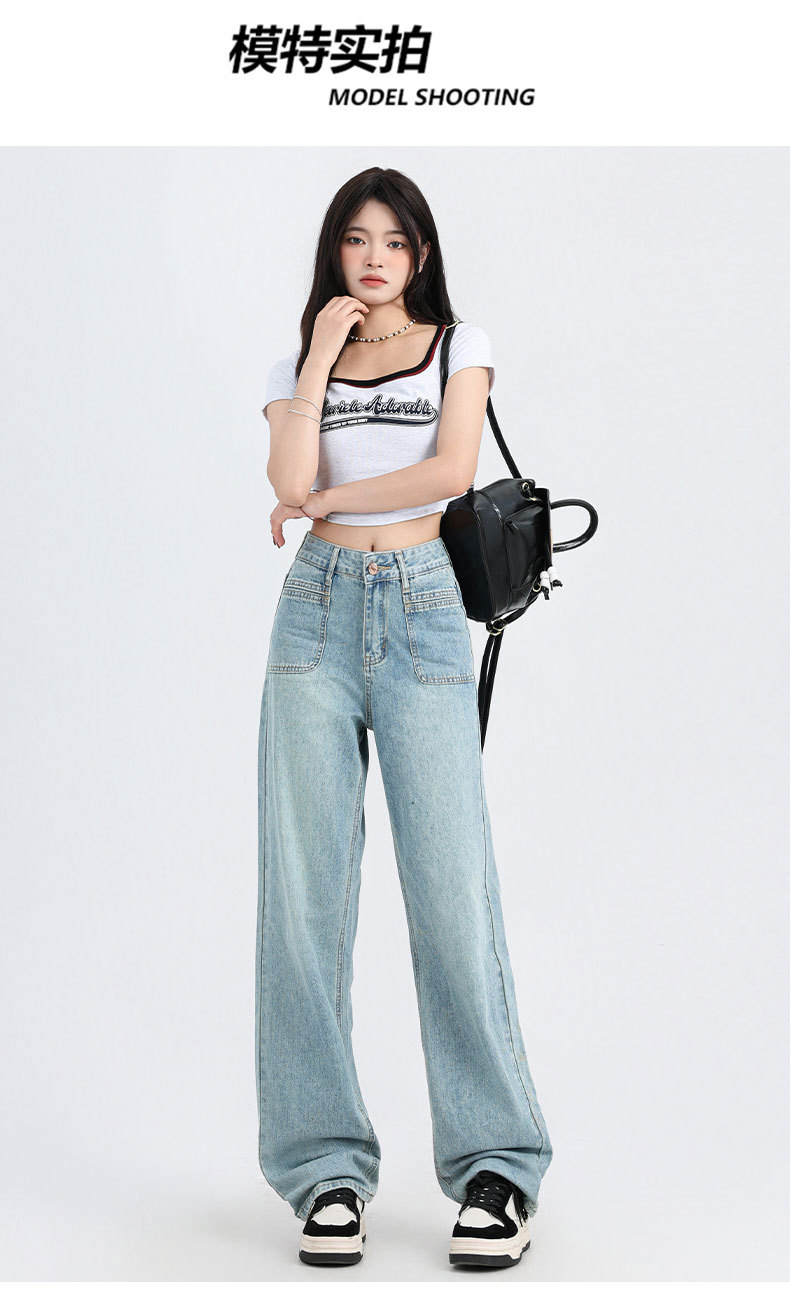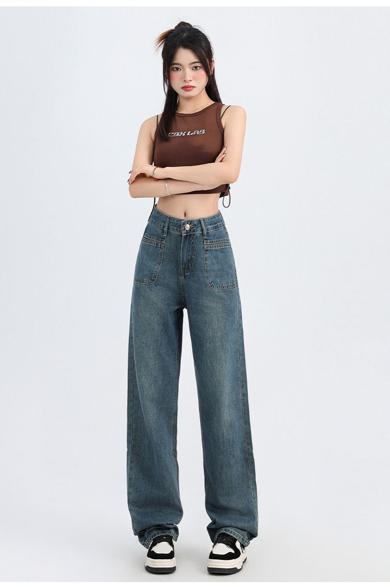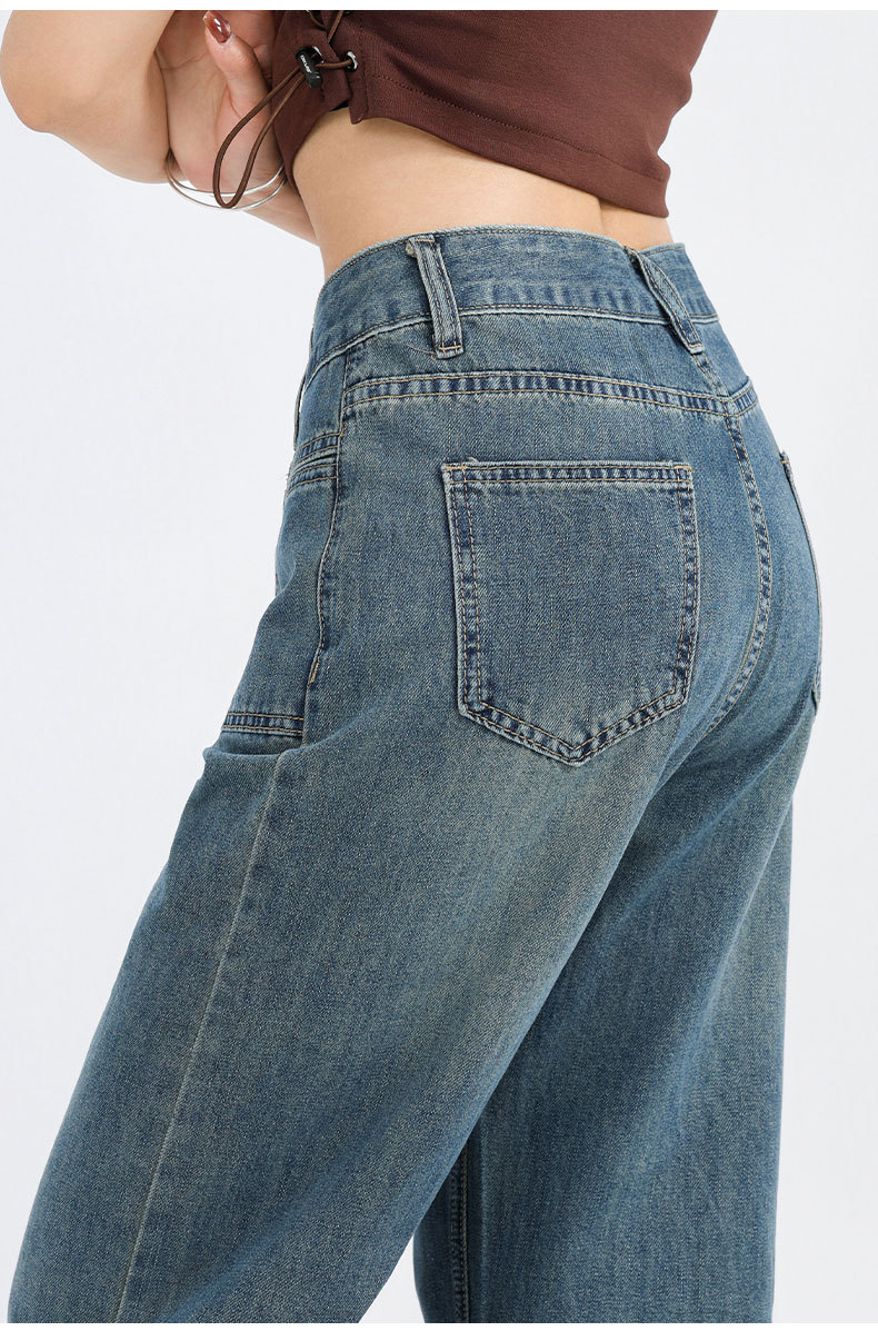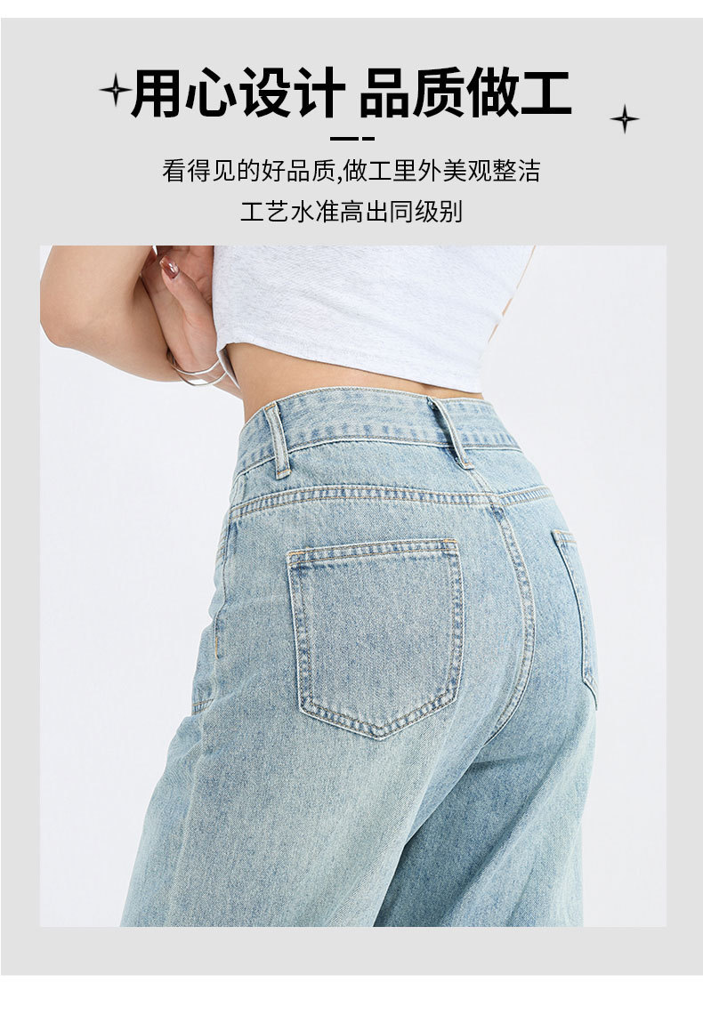 하이 퀄리티 빈티지 와이드 레그 청바지 여성의 봄과 여름 2025 새로운 느슨한 슬리밍 걸레 스트레이트 팬츠스토어 가기