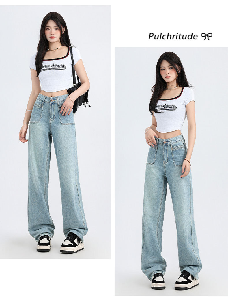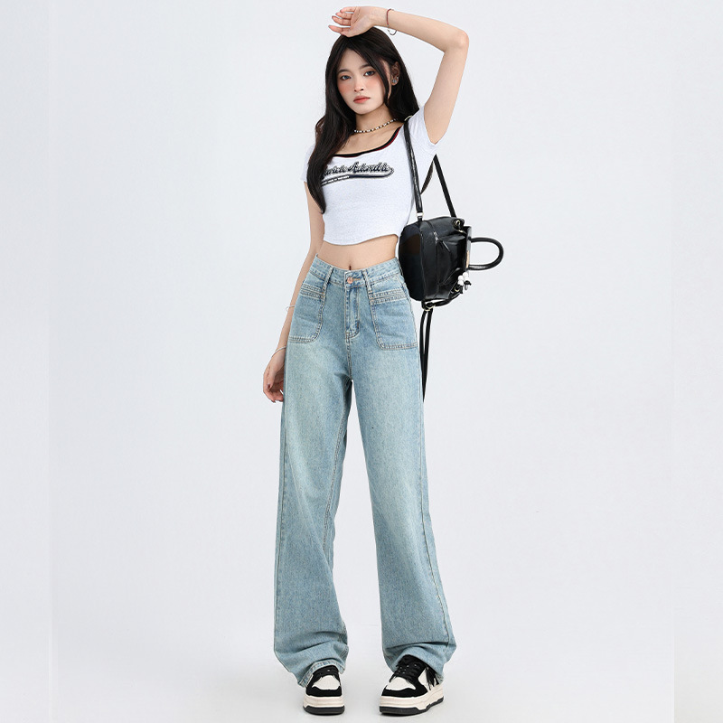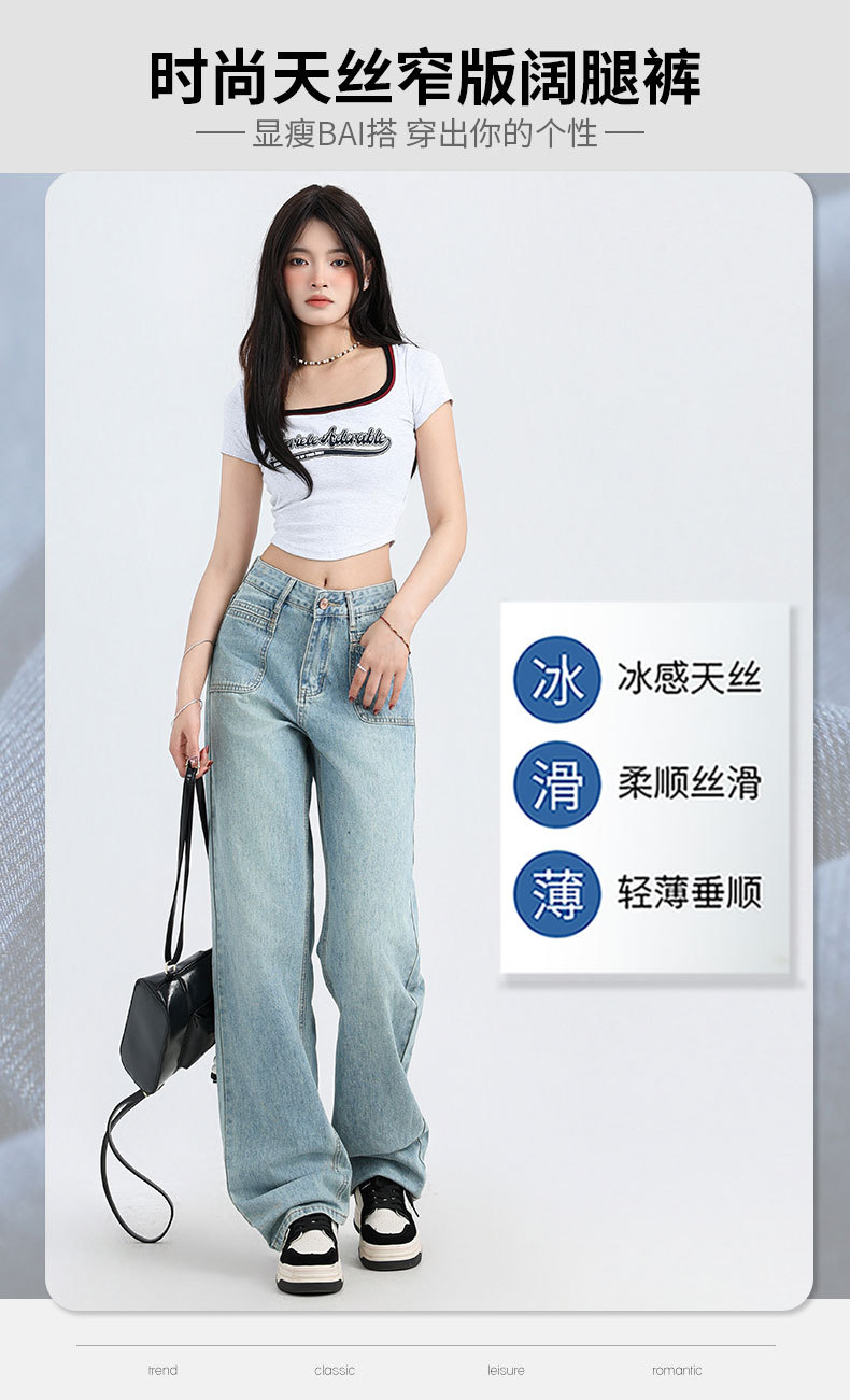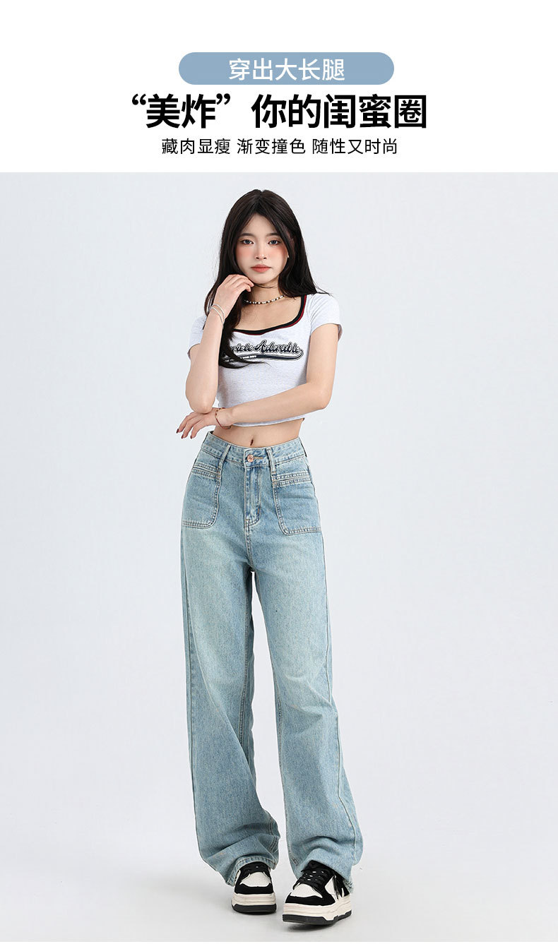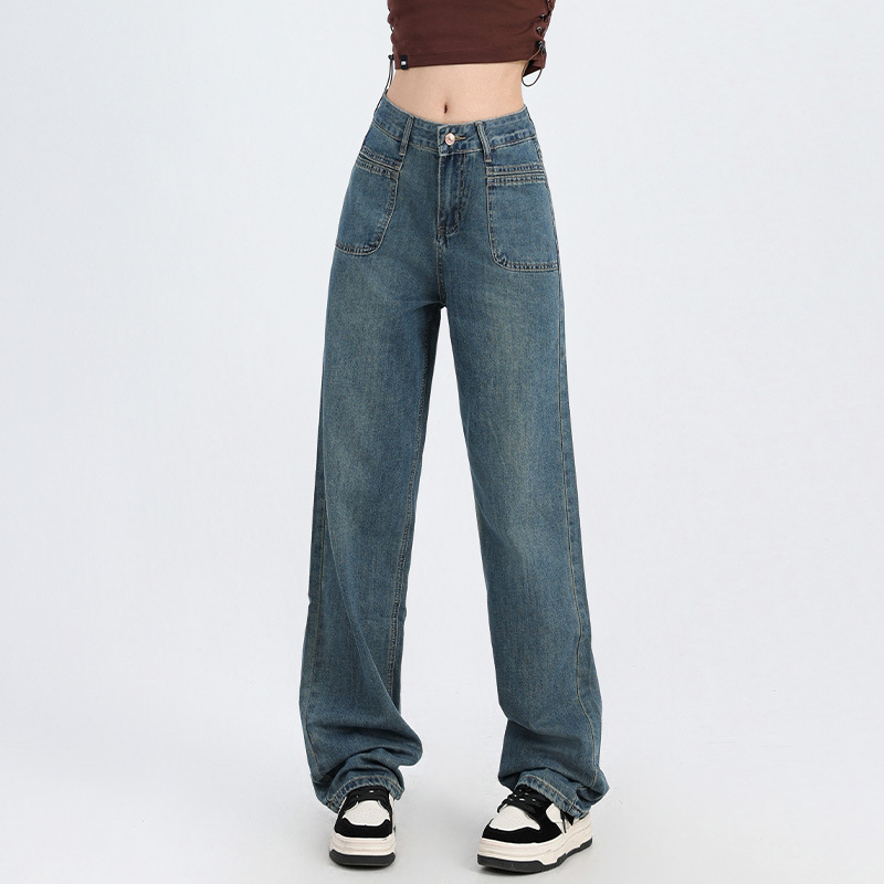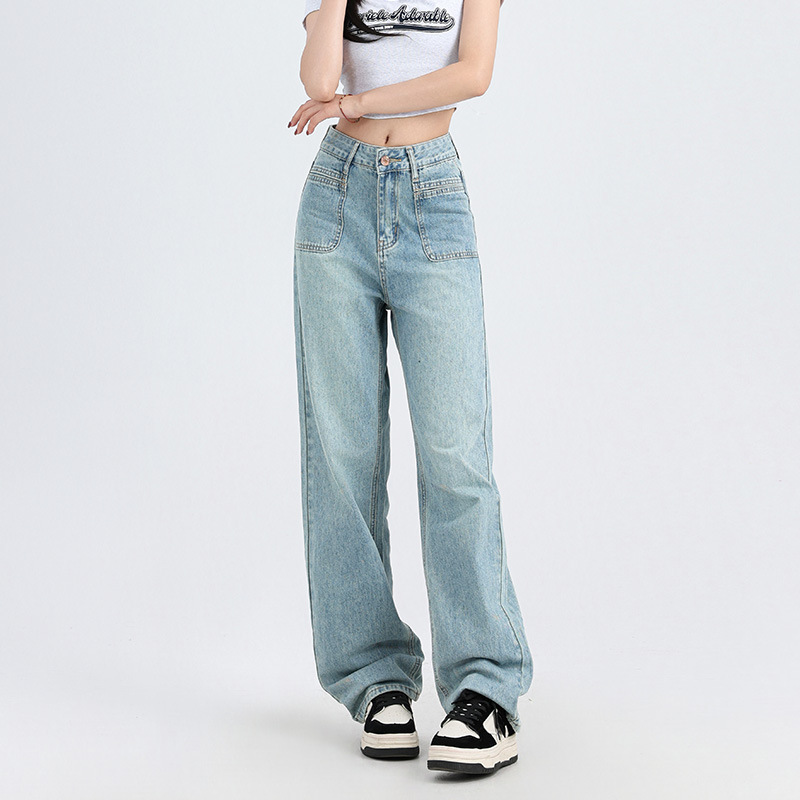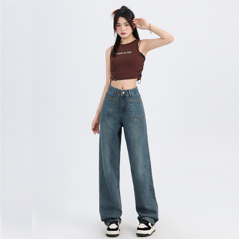 하이 퀄리티 빈티지 와이드 레그 청바지 여성의 봄과 여름 2025 새로운 느슨한 슬리밍 걸레 스트레이트 팬츠스토어 가기