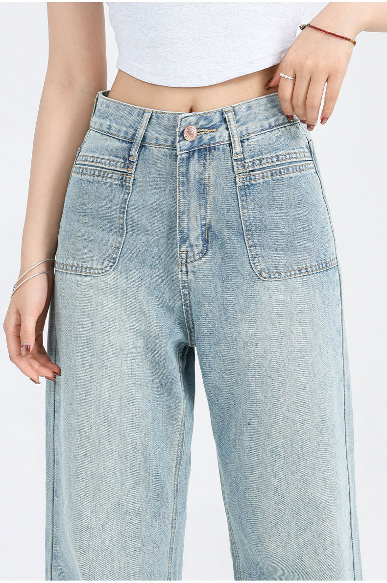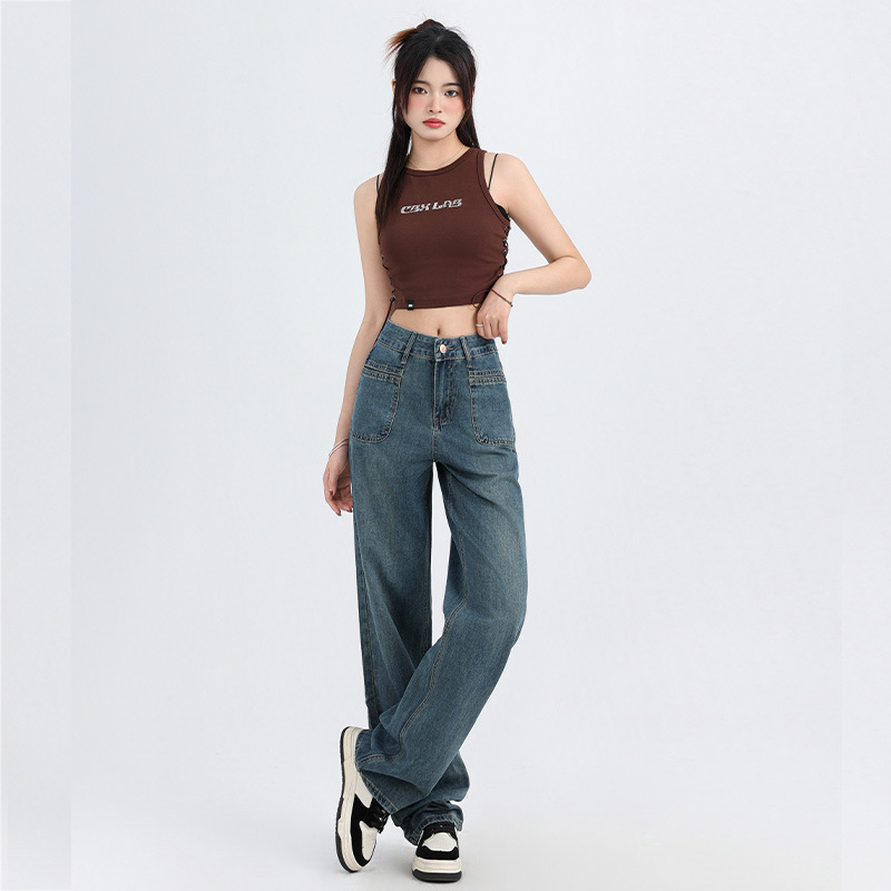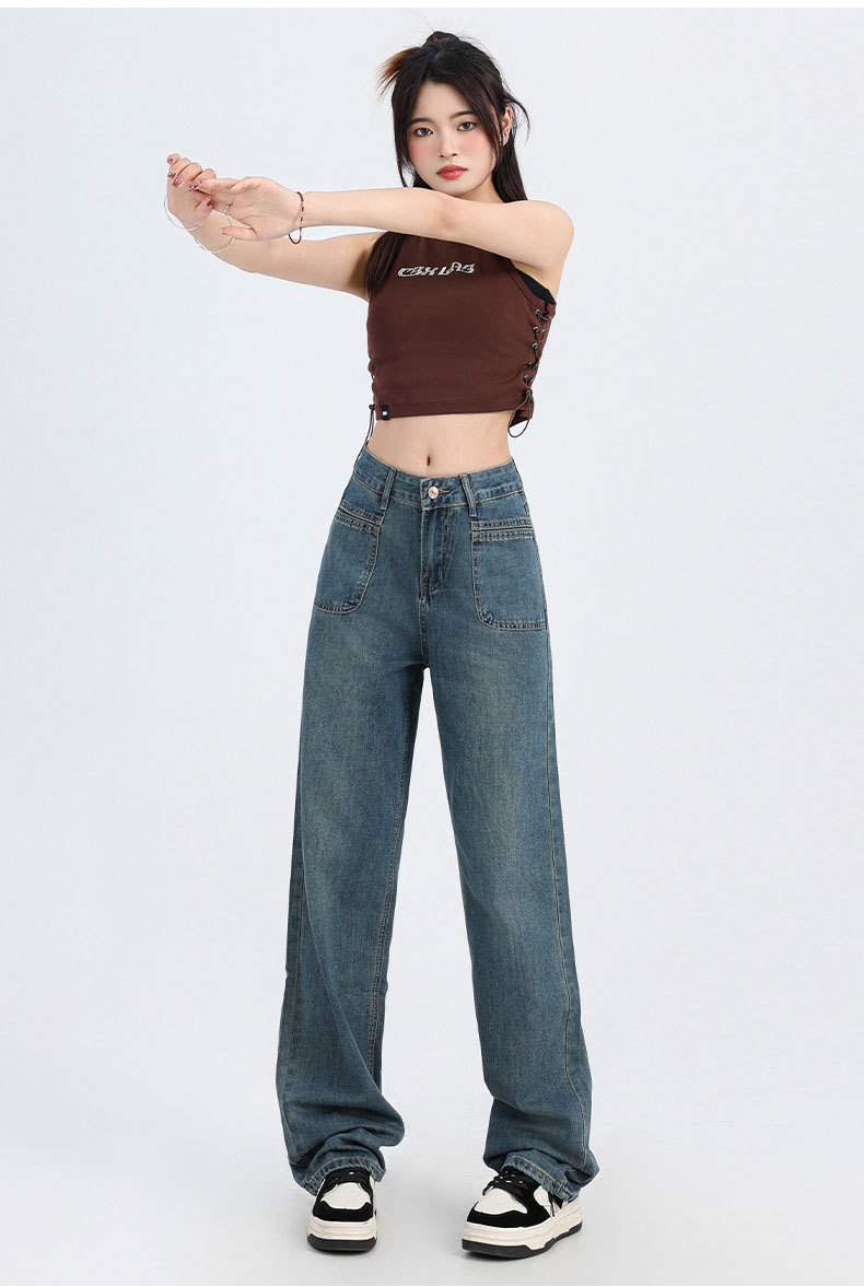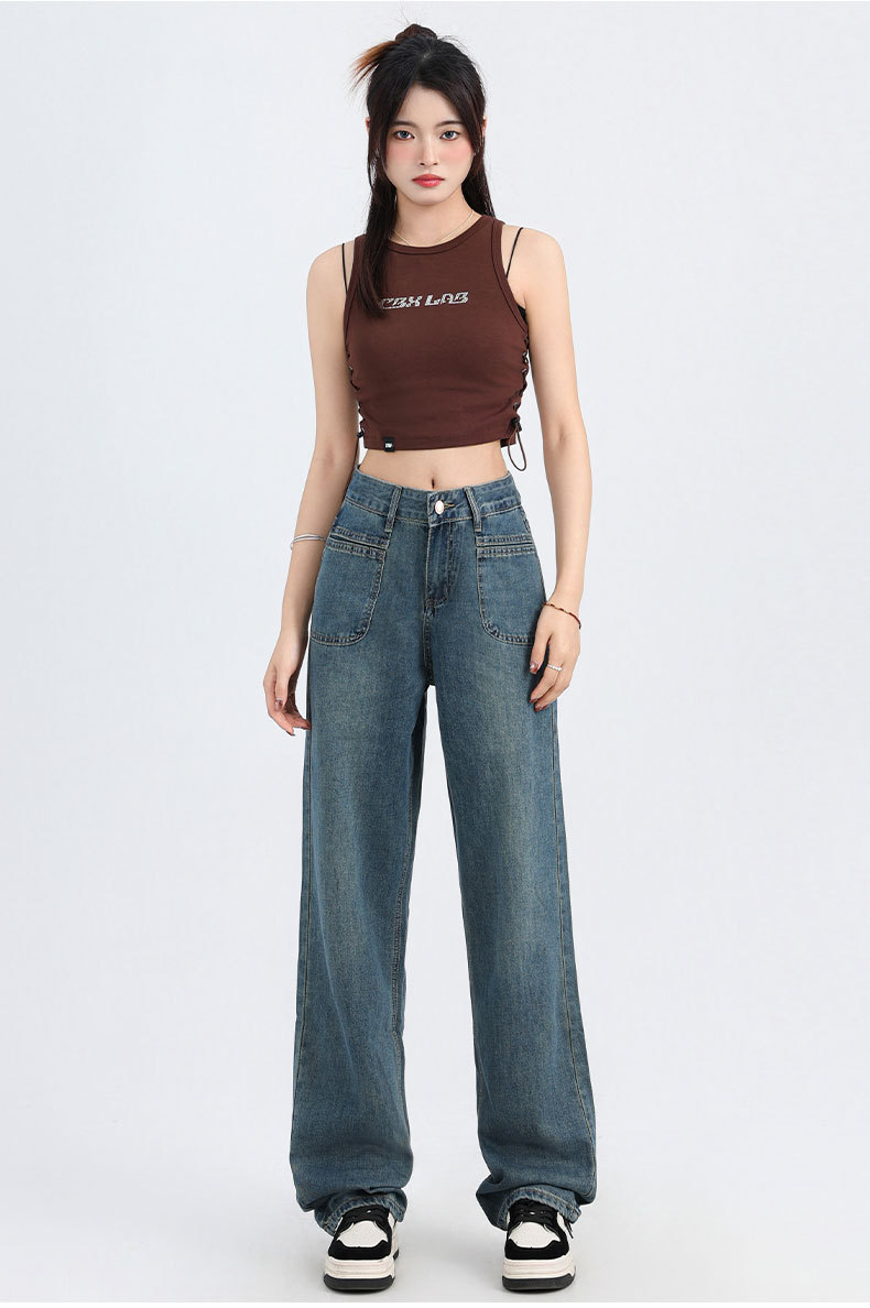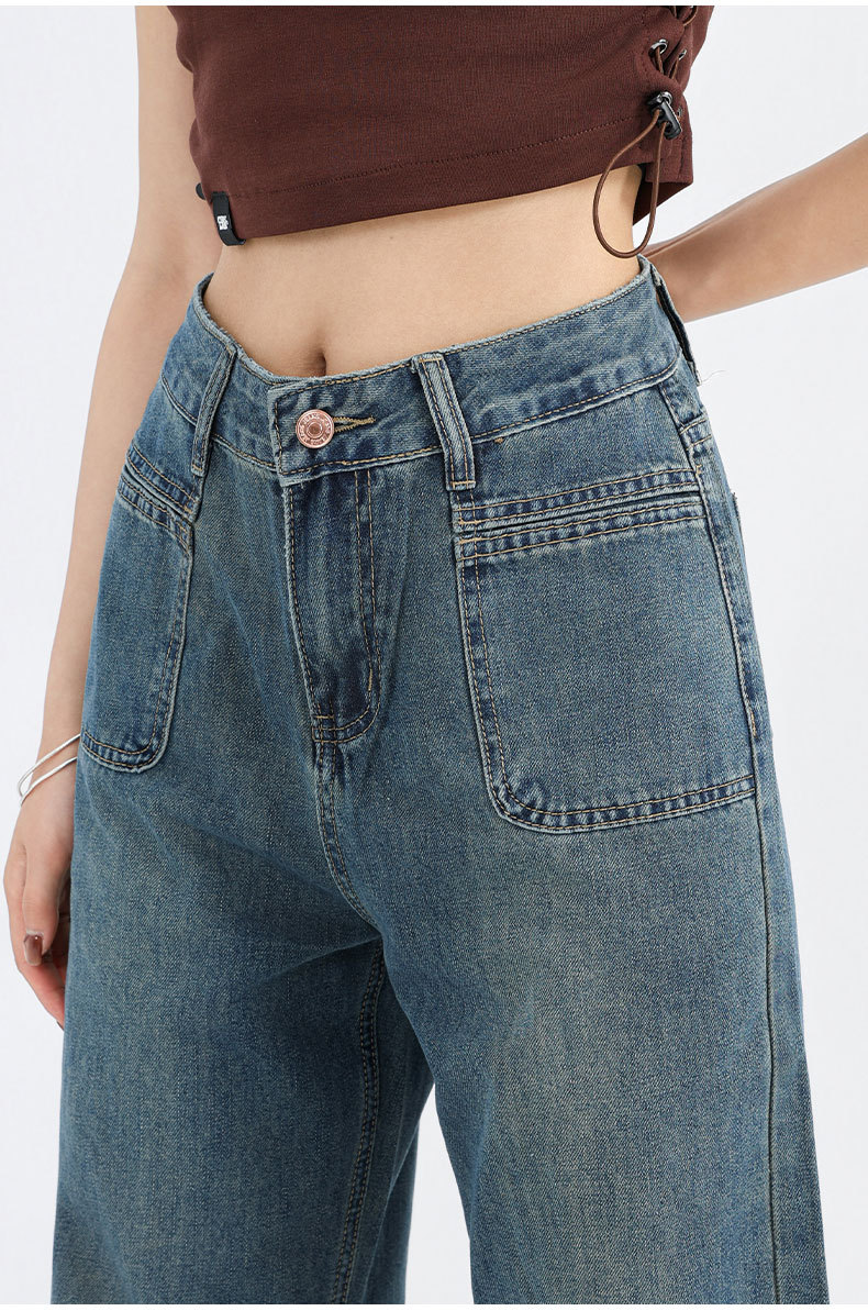 하이 퀄리티 빈티지 와이드 레그 청바지 여성의 봄과 여름 2025 새로운 느슨한 슬리밍 걸레 스트레이트 팬츠스토어 가기