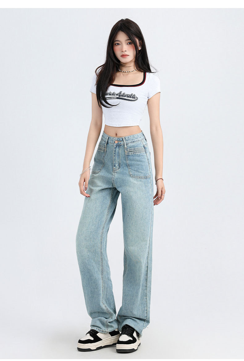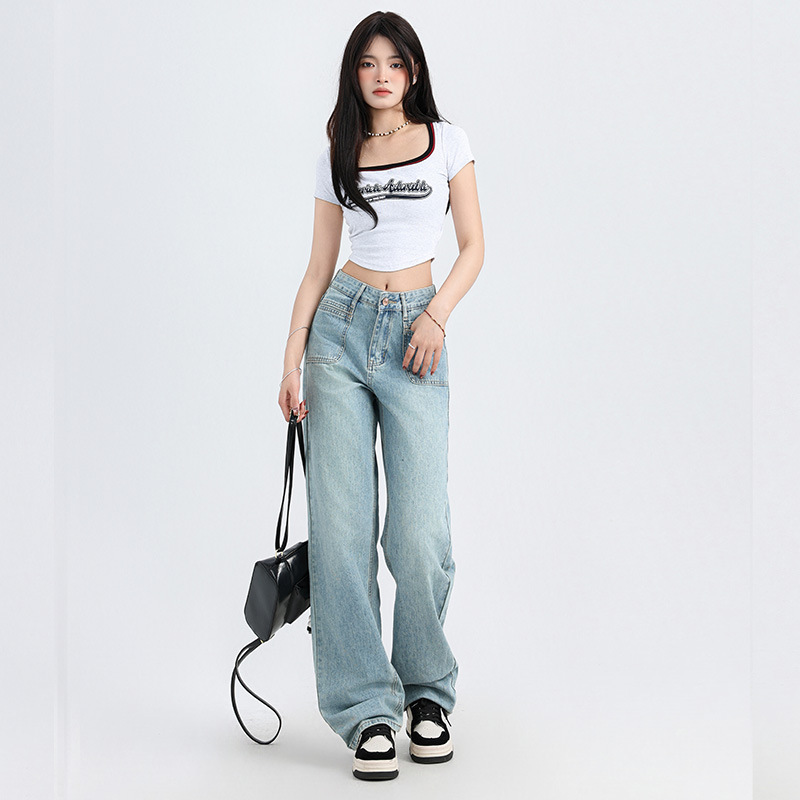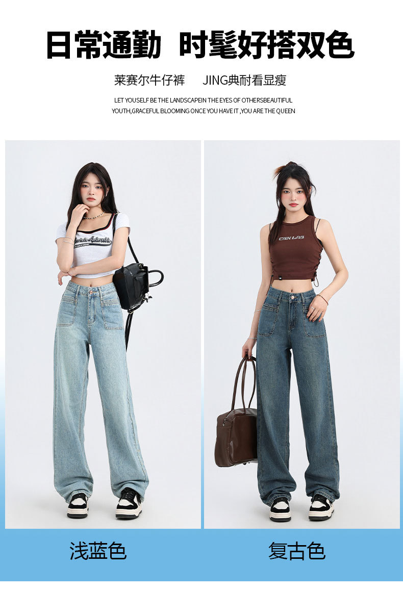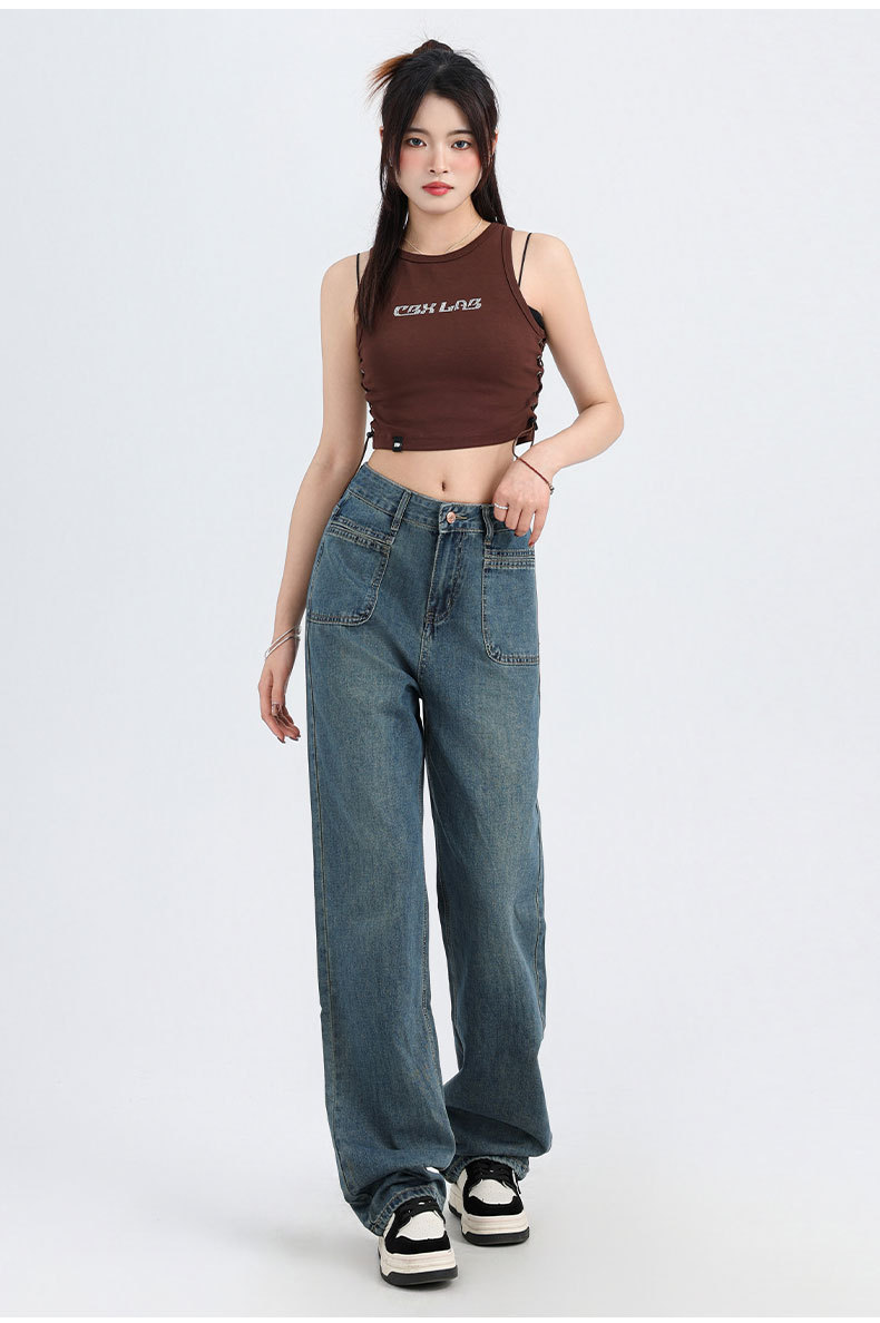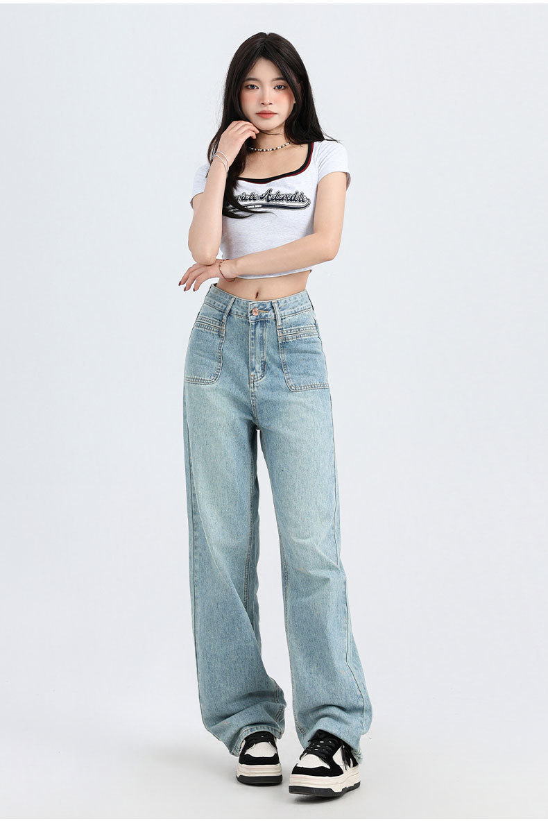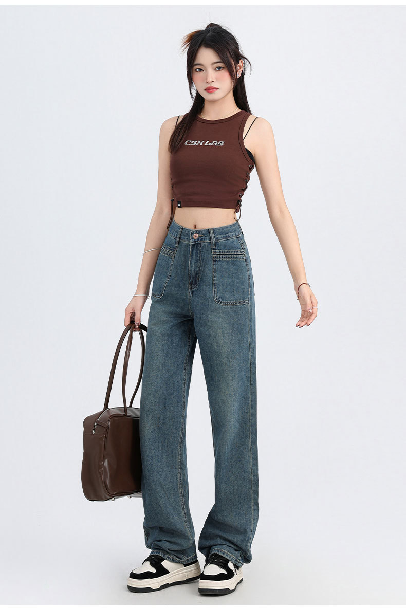 하이 퀄리티 빈티지 와이드 레그 청바지 여성의 봄과 여름 2025 새로운 느슨한 슬리밍 걸레 스트레이트 팬츠스토어 가기