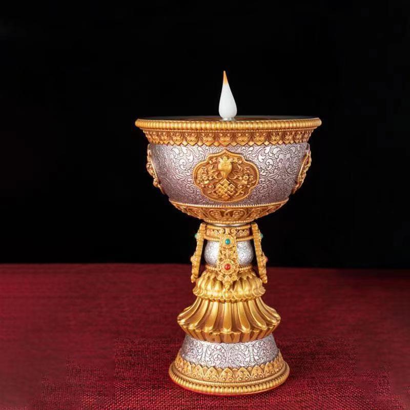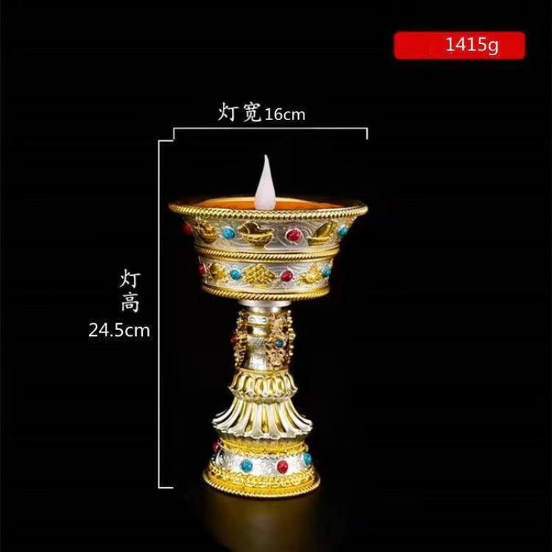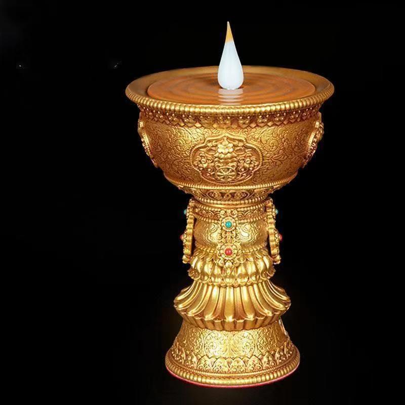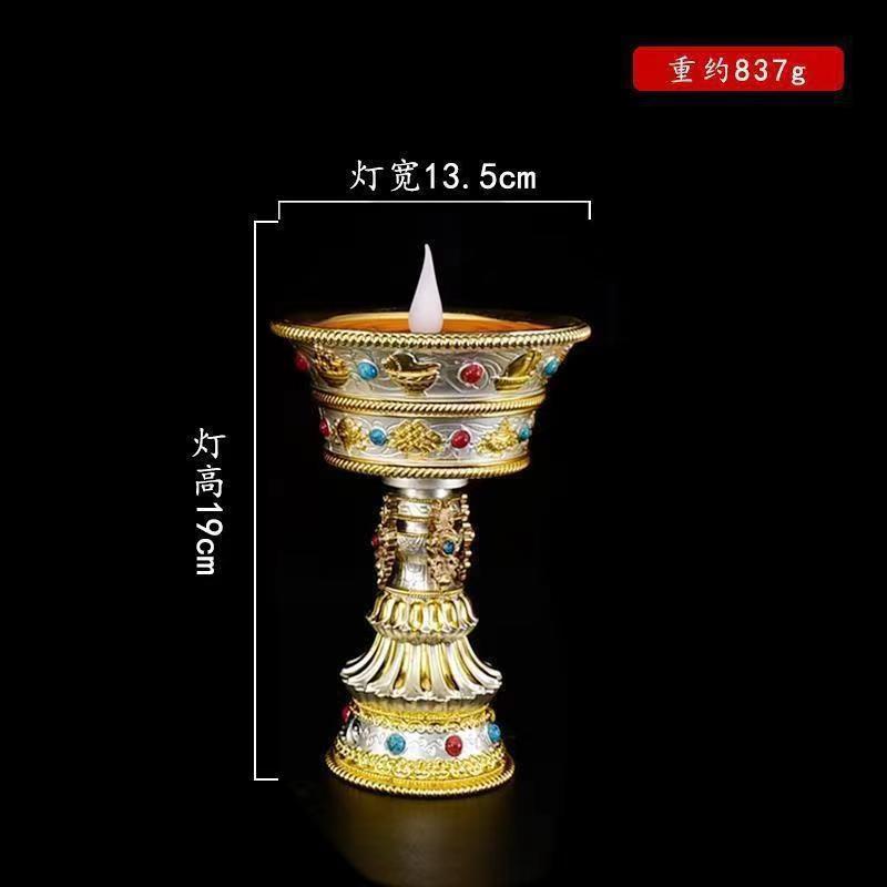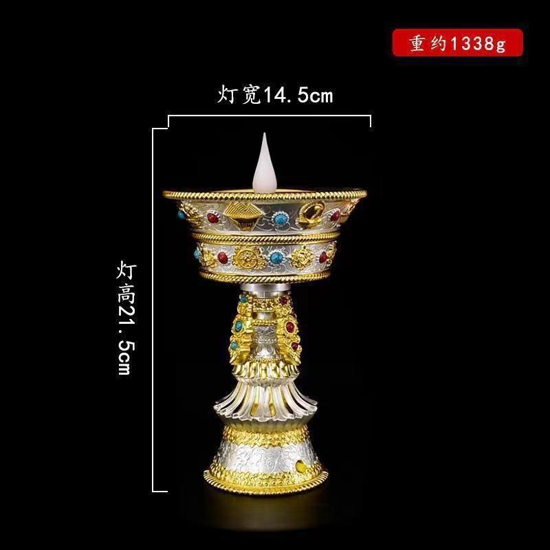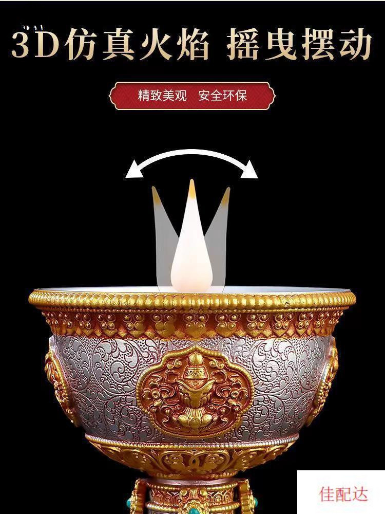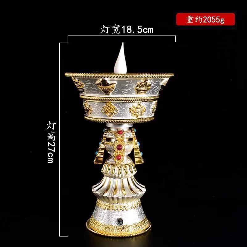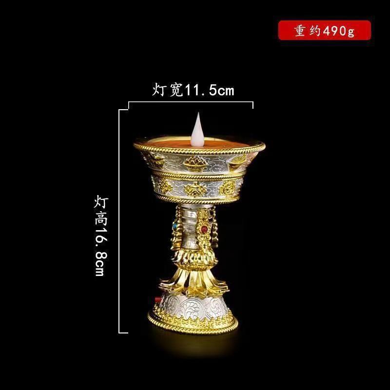 전자 버터 램프 충전 부처님 조명 티베트어 8 가지 길조 부처님 전면 조명 화염 연장 램프 촛대