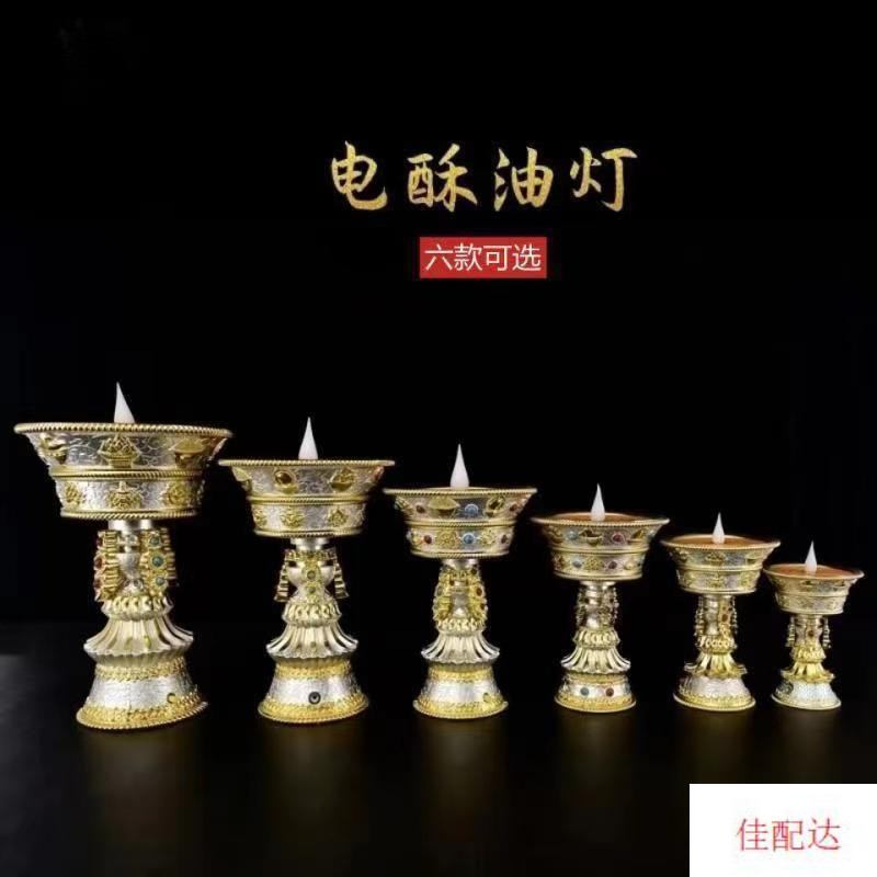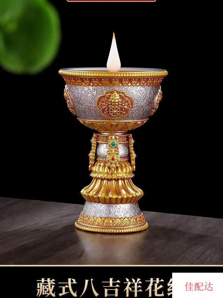 전자 버터 램프 충전 부처님 조명 티베트어 8 가지 길조 부처님 전면 조명 화염 연장 램프 촛대스토어 가기