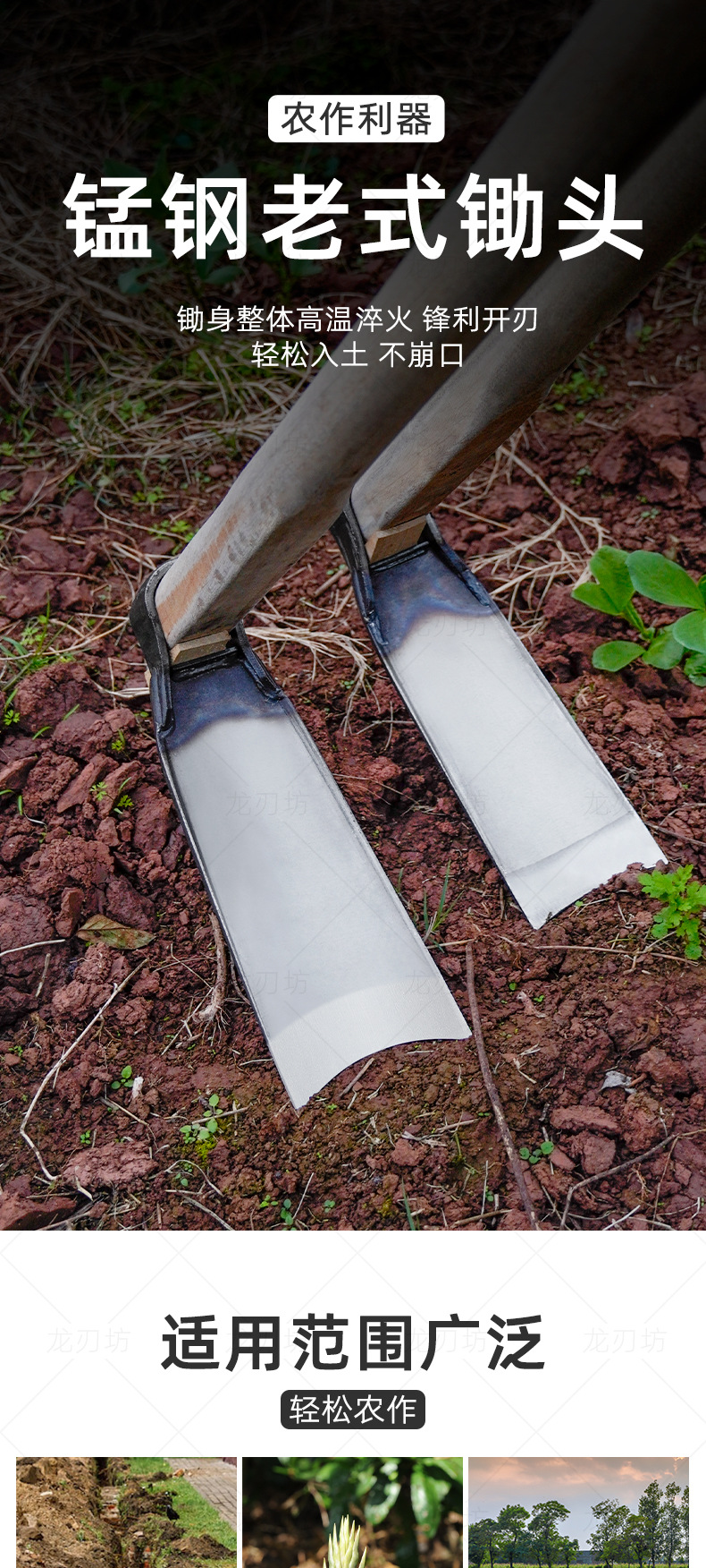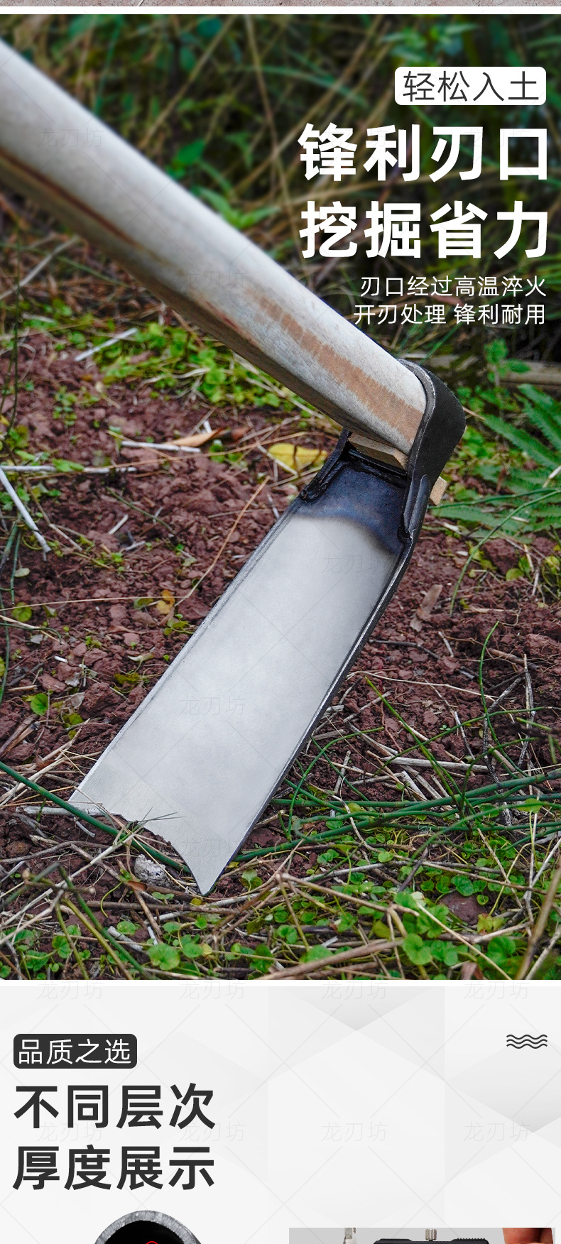 M & M & Manganese Steel Strip Hoe 구식 농업 도구 Dig Bamboot Farm Tools 다중 사용 Hoe는 황무지를 열고 가정용 야채를 위해 땅을 파다스토어 가기