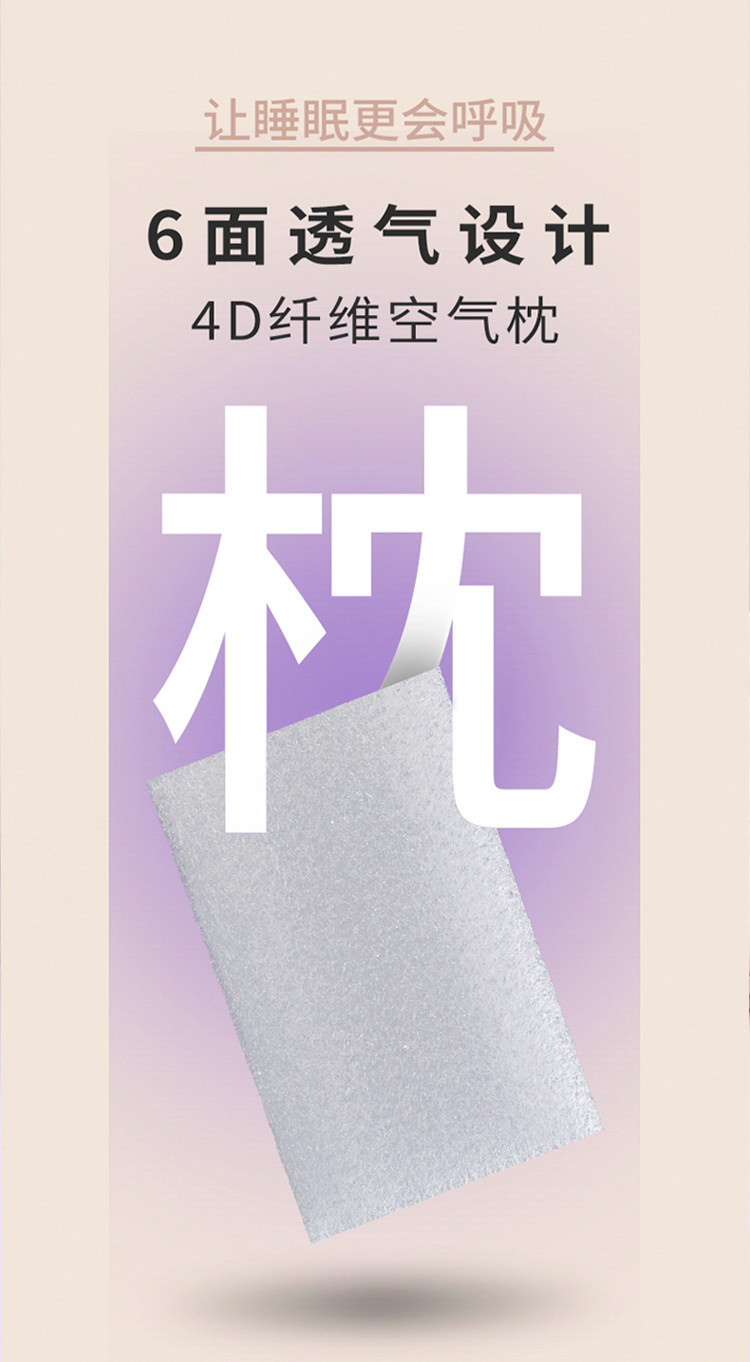새로운 검은 기술 공기 베개 4D 섬유 6 면 통기성 공기 베개 통기성 세척 가능한 공기 베개 섬유 베개