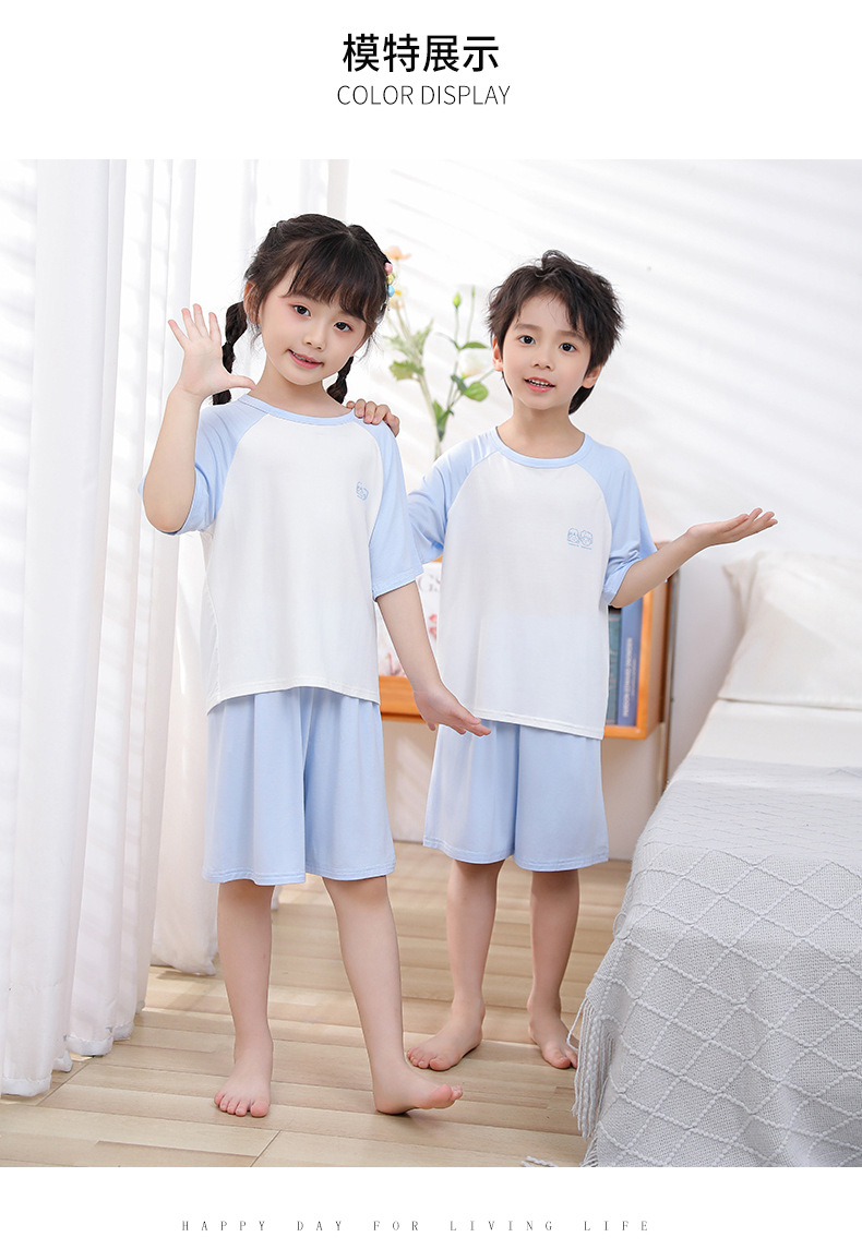 소년 봄 가을 얇은 어린이 모달 잠옷 소년 소녀 홈 옷 아기 아이스 실크 여름 에어컨 세트스토어 가기